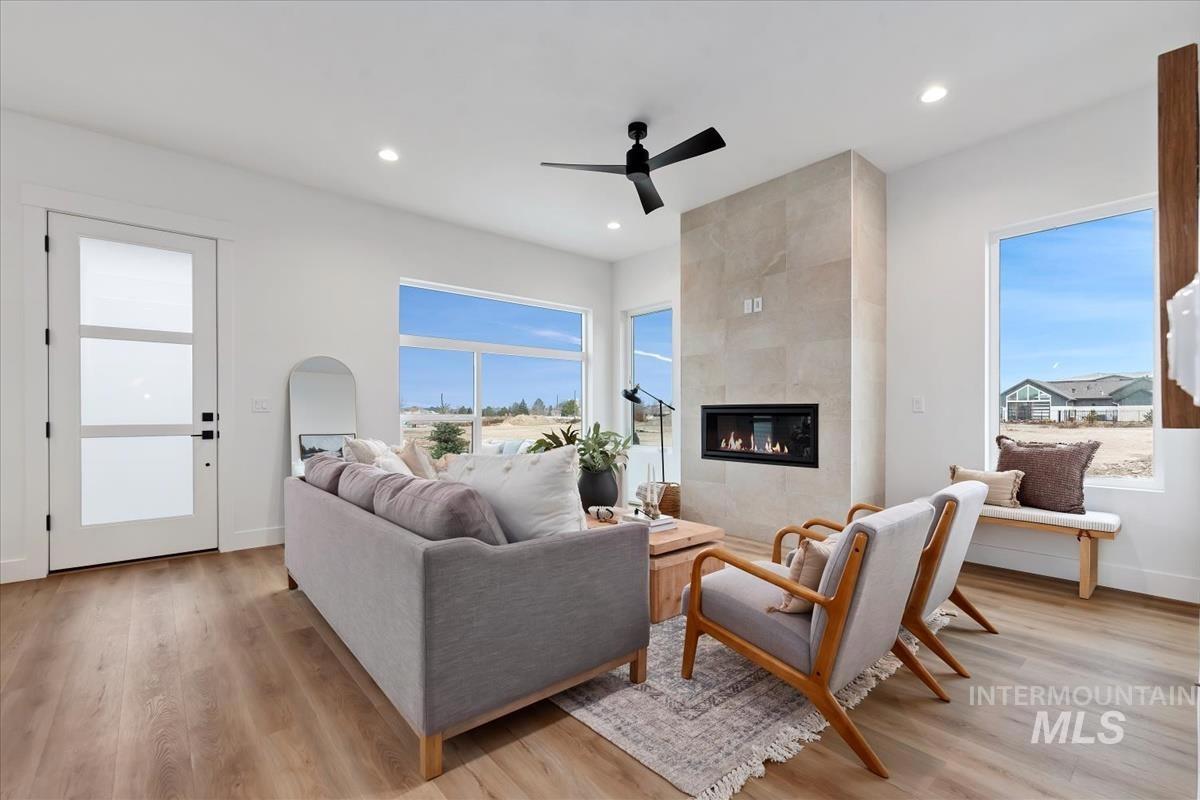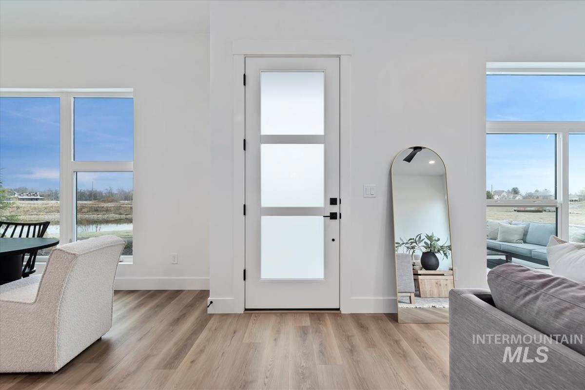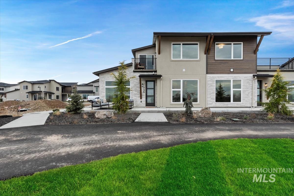 Experience waterfront living in this stunning luxury townhome by Tresidio Homes, located in the sought-after Villas at Crystal Springs. Perfectly positioned along the Boise River in Star, this new community offers exceptional convenience with quick access to the HWY 16 connector, making commuting and recreation effortless. Enjoy a true resort-style lifestyle with top-tier amenities, including a beautifully appointed clubhouse, state-of-the-art fitness center, indoor pool and hot tub, six pickleball courts, and a community park—designed for both relaxation and connection. This low-maintenance, high-style townhome is ideally situated on a tranquil community pond, complete with a balcony overlooking the water. Inside, the thoughtfully designed floorplan blends comfort and sophistication, featuring a main-level primary suite, two upper-level bedrooms, a flexible bonus space, and an additional loft-style bonus room—perfect for entertaining, working from home, or hosting guests. Premium designer finishes shine throughout, including quartz countertops, durable LVP flooring, Thermador appliances, soft-close cabinetry, and EV charger in the garage. With 10’ ceilings on the main level, the home feels open, airy, and truly elevated. End unit provides tons of natural light with views of the pond from all your favorite spots in the home. Don`t miss this chance to love where you live!
