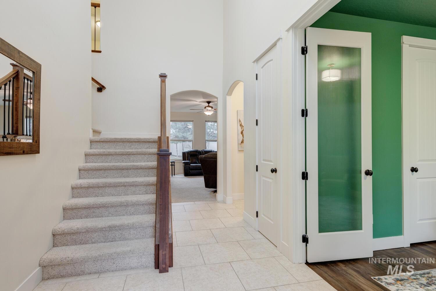 Welcome to this well maintained two story home in the desirable Tuscany Messina Meadows community of Meridian. Featuring 4 bedrooms, 2.5 bathrooms, and 2,540 sqft of functional living space. This home offers room to grow and gather. The main level includes a spacious great room with a cozy gas fireplace, an open kitchen and dining area with ample cabinetry and counter space, and a flexible main level bedroom ideal for guests or a home office. Upstairs you`ll find 3 bedrooms, including a generous primary suite with an ensuite bath and walk in clost. Enjoy the fully fenced backyard with a covered patio, mature landscaping and privacy - perfect for relaxing or entertaining. Community amenities include walking paths, parks, and swimming pools, all conveniently located near schools, shopping and dining.