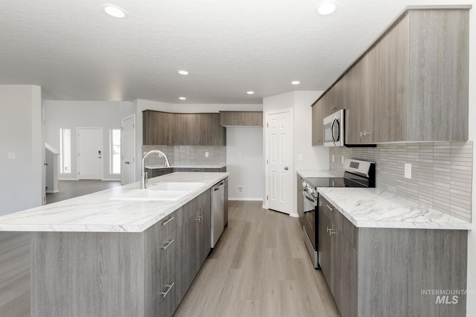 Enter into a brand new home in Kuna, Idaho and enjoy its benefits and stress free living! The Milano 3250 delivers modern splendor from the moment you enter through its soaring two-story entry, revealing a main level that flows effortlessly past the formal dining room into a spacious kitchen, living room, and an additional gathering area designed for both ease and elegance. A main level bedroom paired with a nearby full bath offers flexibility for hosting or creating a private workspace. Upstairs, a bright central loft anchors three additional bedrooms and leads to the impressive primary suite, where double doors open into a truly expansive retreat enhanced by an oversized en suite bath featuring a generous shower and a separate soaker tub for a spa-like experience. Thoughtfully designed and rich in space, the Milano 3250 blends luxury and functionality in every corner. Potential RV parking available. **PHOTOS ARE SIMILAR**. All selections are subject to change without notice, please call to verify.