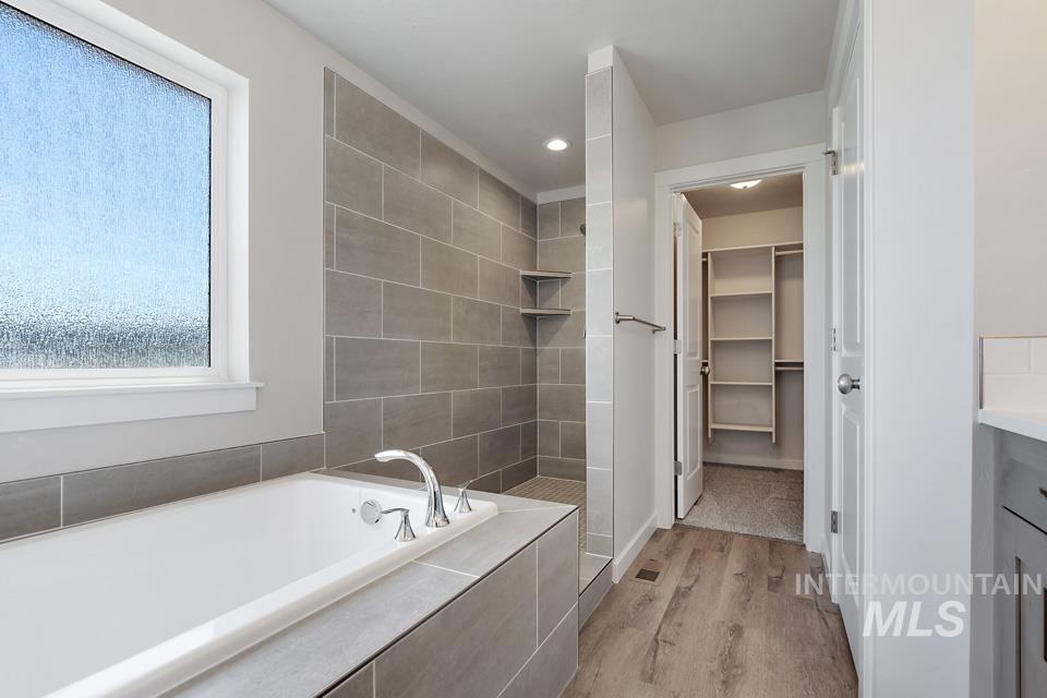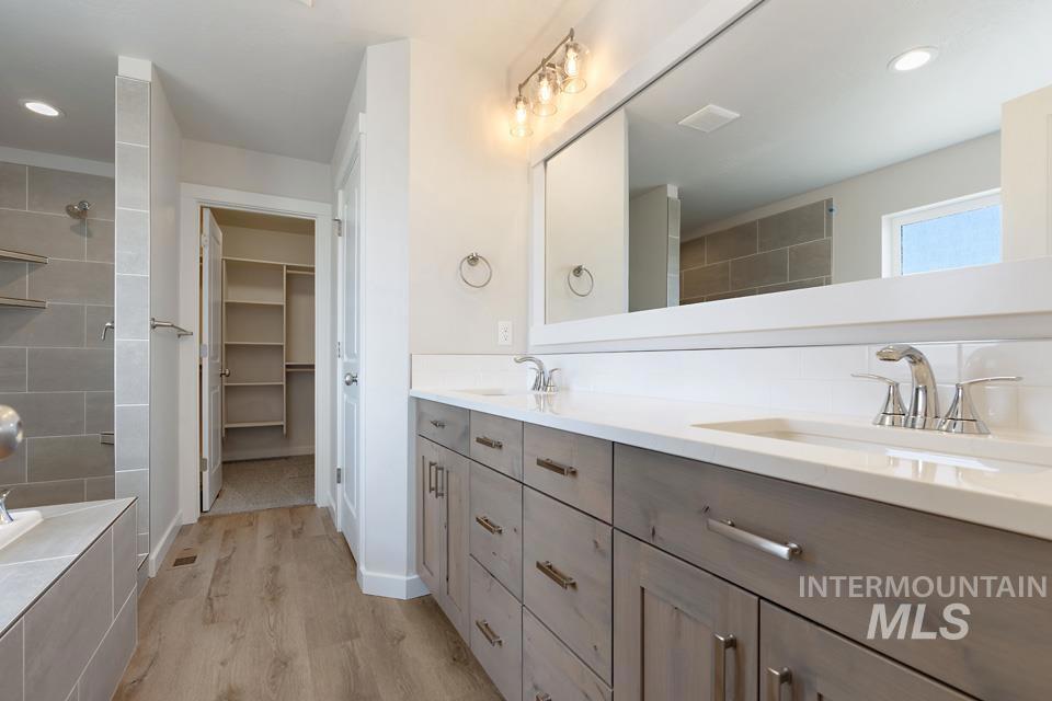 The Lewiston w/ bonus, 4th bedroom, & 3 car garage is the perfect layout for your new home. The formal entryway, split bedroom design, private master area, bonus room w/ 4th bedroom & 3rd full bathroom upstairs make for an amazing floor plan. Plus you`ll find extra storage closets throughout the home. The vaulted ceilings that span the great room, kitchen, & dining area provide an enjoyable large open space full of light. The kitchen boasts a 7` island w/ bar over hang for additional seating, quartz countertops, stainless steel appliances, gas cook top, full-tiled backsplash, beautiful stainless steel farmhouse sink, & a large walk-in butlers pantry . The private primary suite has an amazing soaker tub w/ tile surround & a 6` tile walk-in shower, dual vanity. Upstairs you`ll enjoy a bonus room complimented by a jack & jill full bathroom w/ access to the additional bedroom. Outside features full gutters, covered back patio, yard with front sod & rear seed, & full auto sprinklers w/ pressurized irrigation, north facing back yard, and partial fencing.