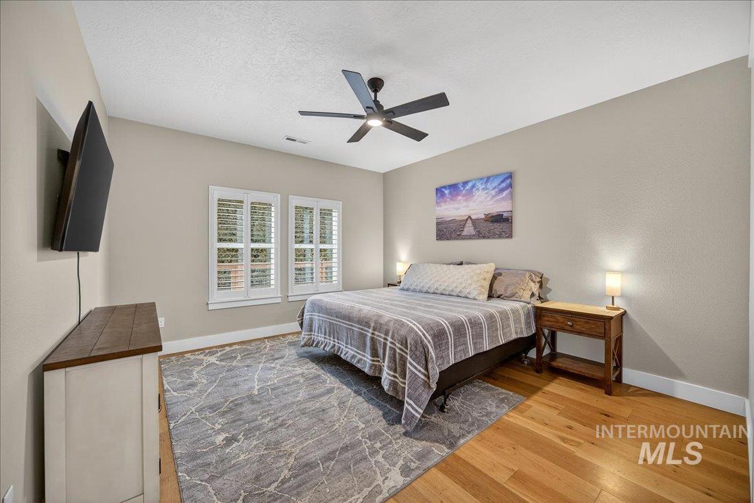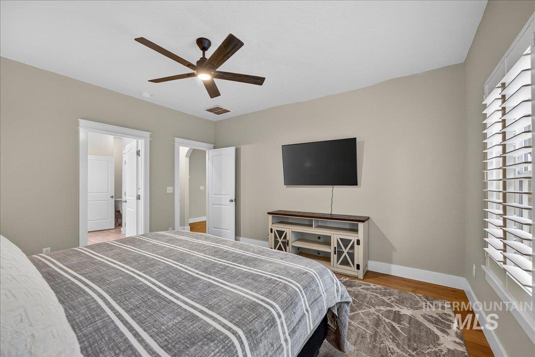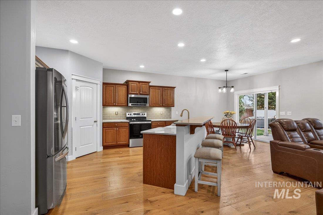 GORGEOUS SINGLE LEVEL HOME WITH A PRIVATE BACKYARD ON CUL-DE-SAC WITH COVERED PORCH. The tranquil custom waterfall turns the backyard into private oasis! RV PARKING (40 ft.). PERFECTLY SITUATED ON NEARLY 1/3rd ACRE! Custom updates throughout! When you step inside you will be greeted with tall ceilings & hardwood floors throughout leading you to the spacious great room with a cozy fireplace & peaceful views of the private, lush backyard, covered patio, & spa ready for your enjoyment all year long! Kitchen has beautifully upgraded cabinetry, pantry, stainless appliances (including refrigerator), farm sink, granite countertops. Convenience of having a guest powder bathroom is a bonus! Bathrooms updated + so much more! VA assumable loan option available for veterans!