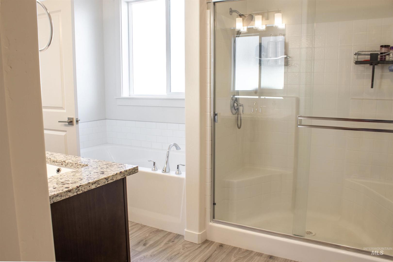 Immaculate 2023 two-story in desirable NE Twin Falls! This 4-bed, 2.5-bath, 2,770 sq ft home blends style and function with soaring ceilings, abundant natural light and a bright open layout designed for entertaining. Enjoy two spacious living areas and a cozy fireplace ready for an 85" TV. The main-level primary suite is a private retreat with dual vanities, soaking tub, walk-in shower and generous closet. A chef’s kitchen, specialty water-filtration system, full landscaping with sprinklers and low-maintenance vinyl fencing add comfort and value. Fresh, modern and move-in ready—come experience this like-new home and all the beauty Twin Falls has to offer!