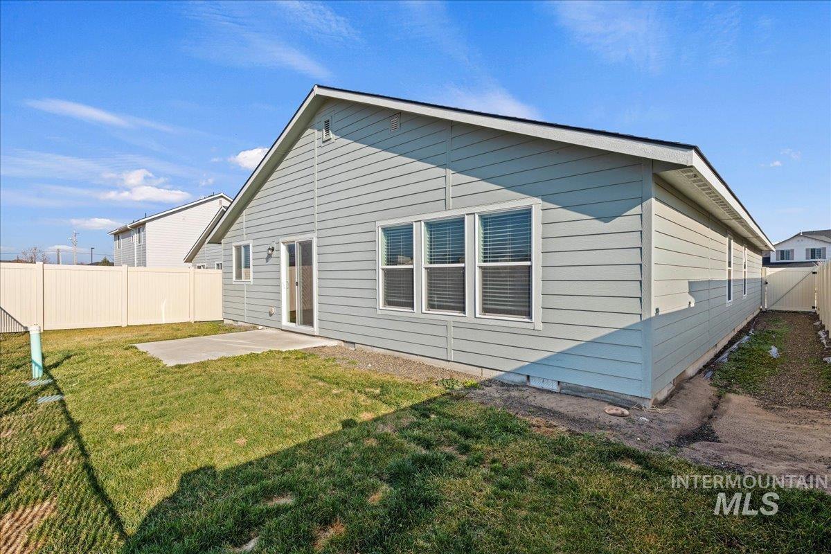 Bright, move-in ready single-level home in Kuna featuring 4 bedrooms and 2 bathrooms. The open and inviting layout includes a spacious primary suite with a walk-in closet and double vanity. Enjoy the fenced backyard backing to a trail perfect for privacy and outdoor enjoyment. This home comes complete with washer, dryer, refrigerator, and blinds, making it truly turnkey. A wonderful opportunity to own a light-filled home ready for its next owner to make it their own.