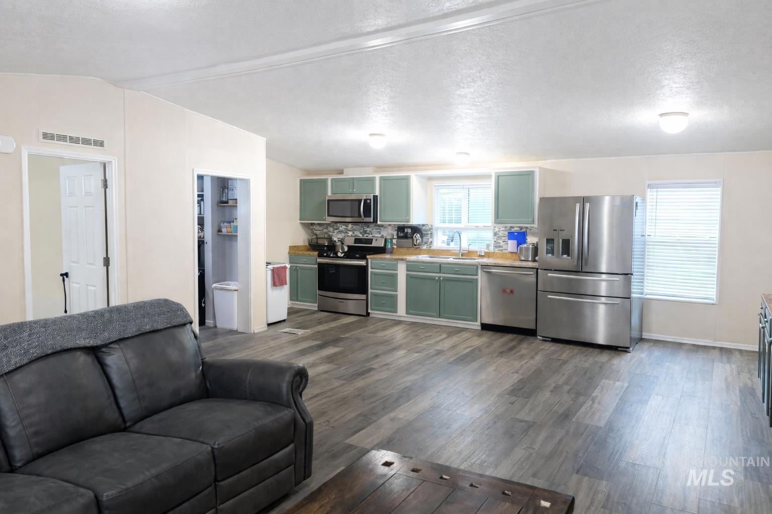 Located in the peaceful and well-maintained Fairview Terrace Estates, this inviting home features an open-concept layout with seamless flow between the living room and kitchen, ideal for everyday living and entertaining. A covered 125 sq ft entry patio offers a great space to relax or enjoy meals outdoors. Recent updates include new luxury vinyl plank flooring, Felt smart lighting, a remodeled pantry, an updated primary closet, and a brand-new 40-gallon water heater. Conveniently located near shopping, dining, medical facilities. The Village at Meridian, Roaring Springs, Hwy 84 and nearby parks including Tully, Storey, and Settlers. Perfect for a low-maintenance lifestyle, first-time buyers or investors. Homesite land lease $726/mo