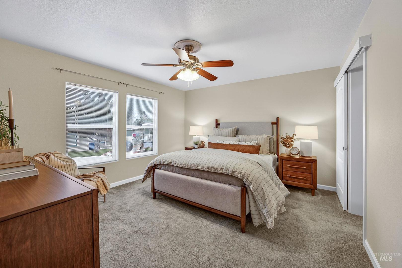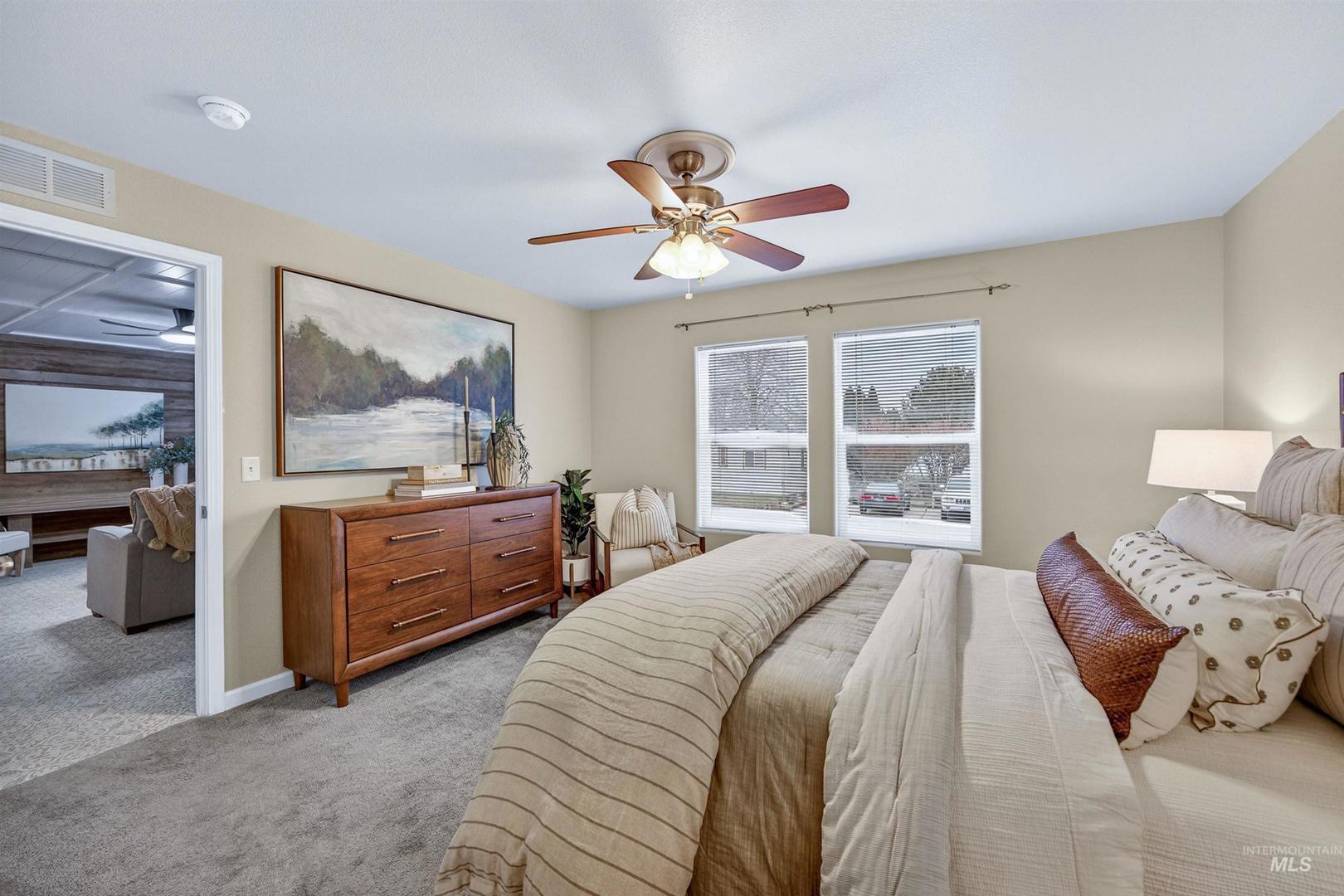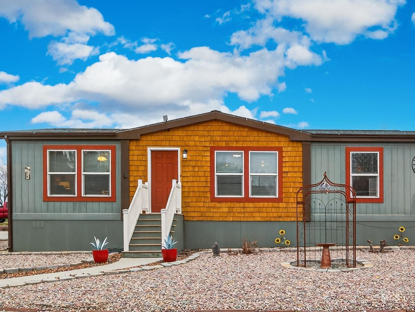 Beautiful single-level home in Blue Valley Lakeside community! Move-in ready and meticulously maintained, this bright manufactured home offers a spacious open floor plan filled with natural light. The kitchen features generous cabinetry, ample counter space, a large breakfast bar, and is perfect for everyday living and entertaining. The comfortable Primary Bedroom includes a private en suite with dual vanities, oversized shower, and walk-in closet. Outdoor living shines with a fully fenced backyard and east-facing patio that is ideal for enjoying summer evenings. The low-maintenance xeriscaped yard and large storage shed add both convenience and functionality. Ideally located in Southeast Boise with quick access to shopping, I-84, the airport, downtown Boise, and Lucky Peak Reservoir. Come tour this fabulous home!