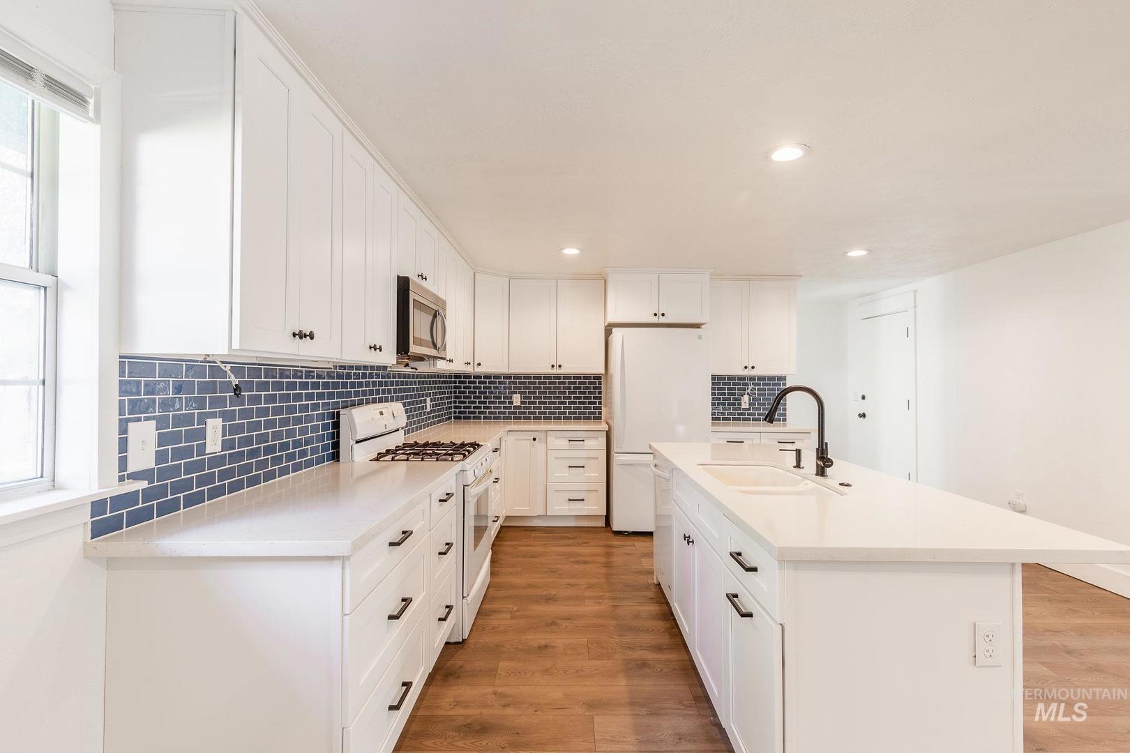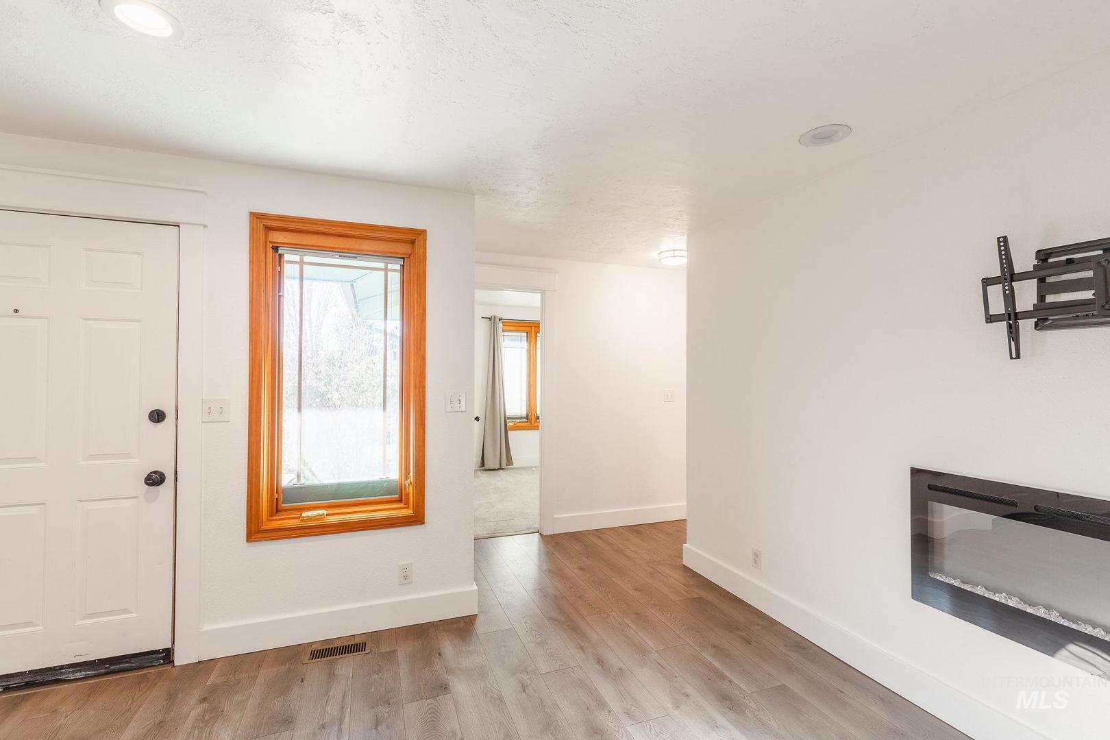 This 4-bedroom, 2-bath home is perfectly located in Eagle, just a short walk from downtown and all of Eagle’s favorite shops, restaurants, and coffee spots. Situated in a quaint neighborhood ideal for walking and bike rides, this home blends convenience with small-town charm. The fully remodeled kitchen (2021) pairs beautifully with new flooring throughout, giving the home a fresh, modern feel. The bathroom has been partially remodeled, adding updated touches while maintaining character. An electric built-in fireplace creates a cozy focal point in the main living space. Outside, the north-facing backyard features raised garden beds, a shed, and a covered patio; perfect for relaxing or entertaining. The garage includes durable epoxy flooring for a clean, finished look. If you`re looking for a great investment, this home has been a successful rental for many years.