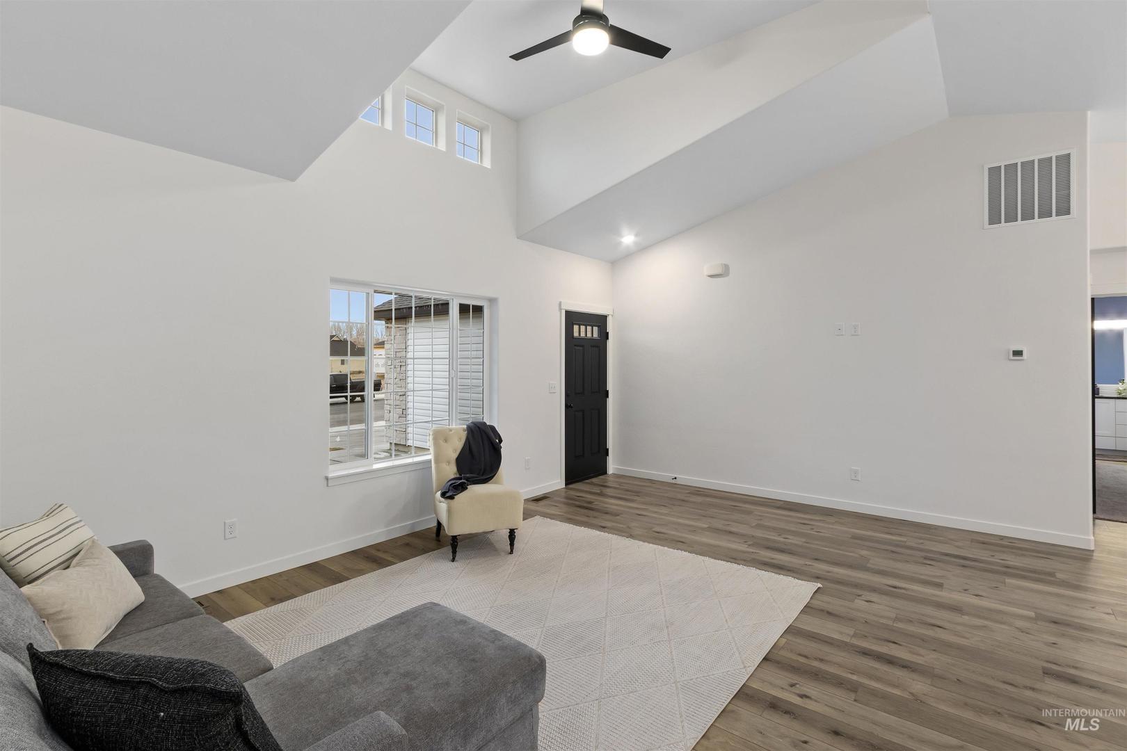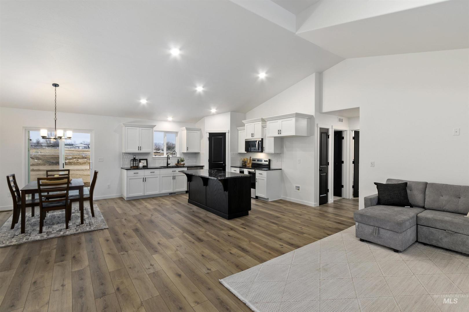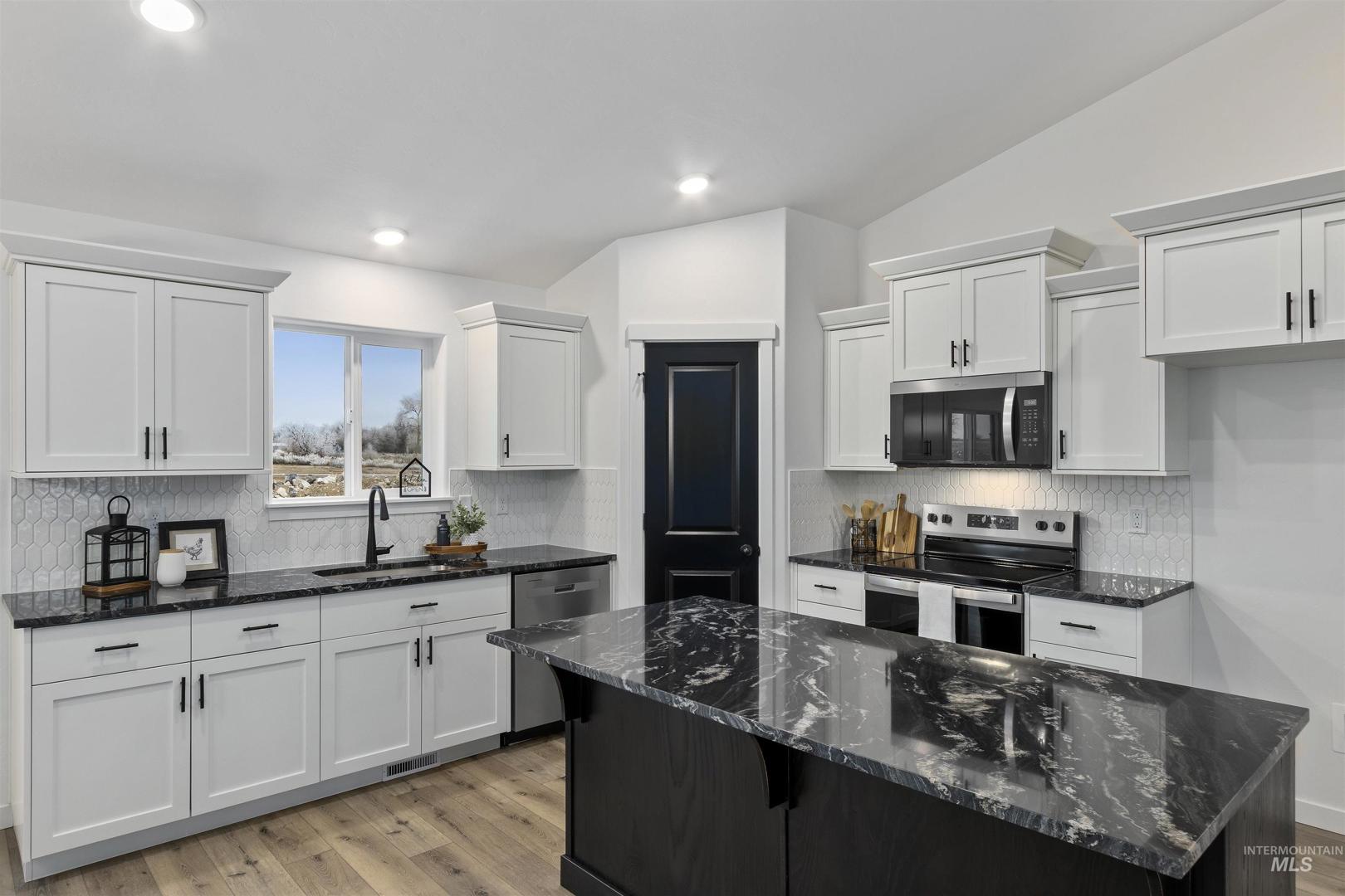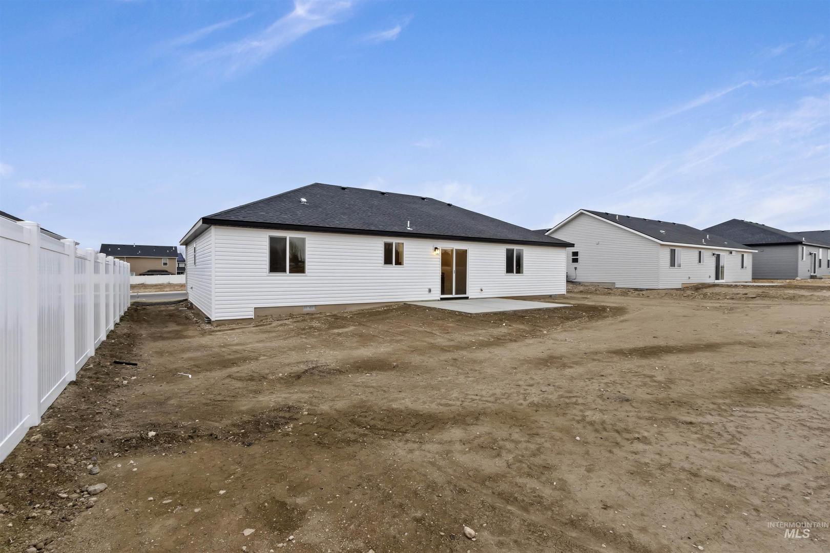 Brand New & Ready for you! Welcome to this stunning 3-bed, 2-bath home located in a desirable neighborhood. This single-level home offers a bright, modern open-concept living space with high vaulted ceilings and multiple recessed lights, that combines the kitchen, dining, and living area. The kitchen features crisp white shaker-style cabinetry accented with dark hardware, a light tile backsplash, and stainless-steel appliances. A spacious black center island with a dark countertop anchors the space, and a dedicated pantry provides extra storage and convenience. The primary suite impresses with a tray ceiling, & large walk-in closet while the primary bath features a generous walk-in shower. Enjoy the attached 2-car garage and a low-maintenance exterior finished with siding, stucco, and rock accents. Newly built & thoughtfully finished, this home is moving in ready. Call to schedule your private showing today!