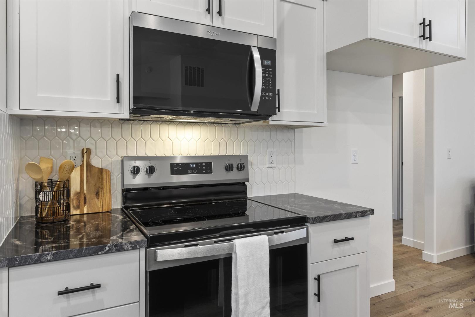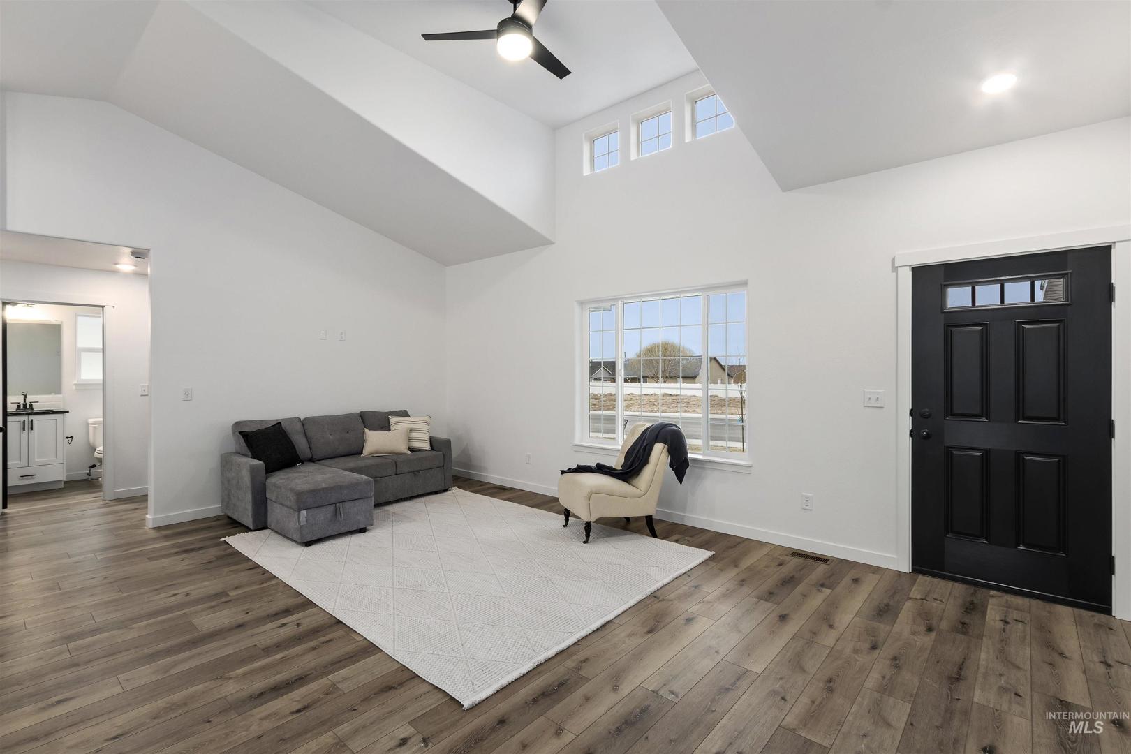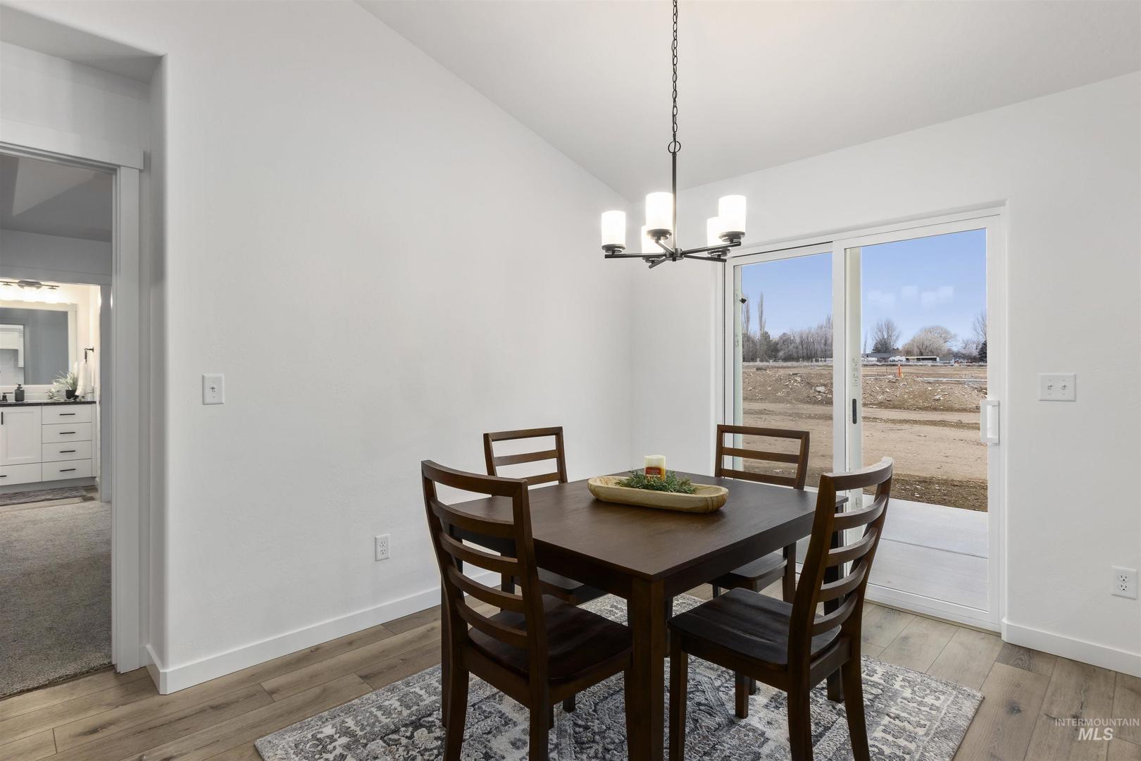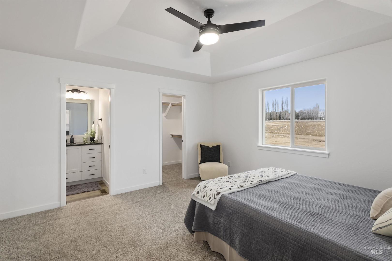 Brand New & Ready for you! Welcome to this stunning 3-bed, 2-bath home located in a desirable neighborhood. This single-level home offers a bright, modern open-concept living space with high vaulted ceilings and multiple recessed lights, that combines the kitchen, dining, and living area. The kitchen features crisp white shaker-style cabinetry accented with dark hardware, a light tile backsplash, and stainless-steel appliances. A spacious black center island with a dark countertop anchors the space, and a dedicated pantry provides extra storage and convenience. The primary suite impresses with a tray ceiling, & large walk-in closet while the primary bath features a generous walk-in shower. Enjoy the attached 2-car garage and a low-maintenance exterior finished with siding, stucco, and rock accents. Newly built & thoughtfully finished, this home is moving in ready. Call to schedule your private showing today!