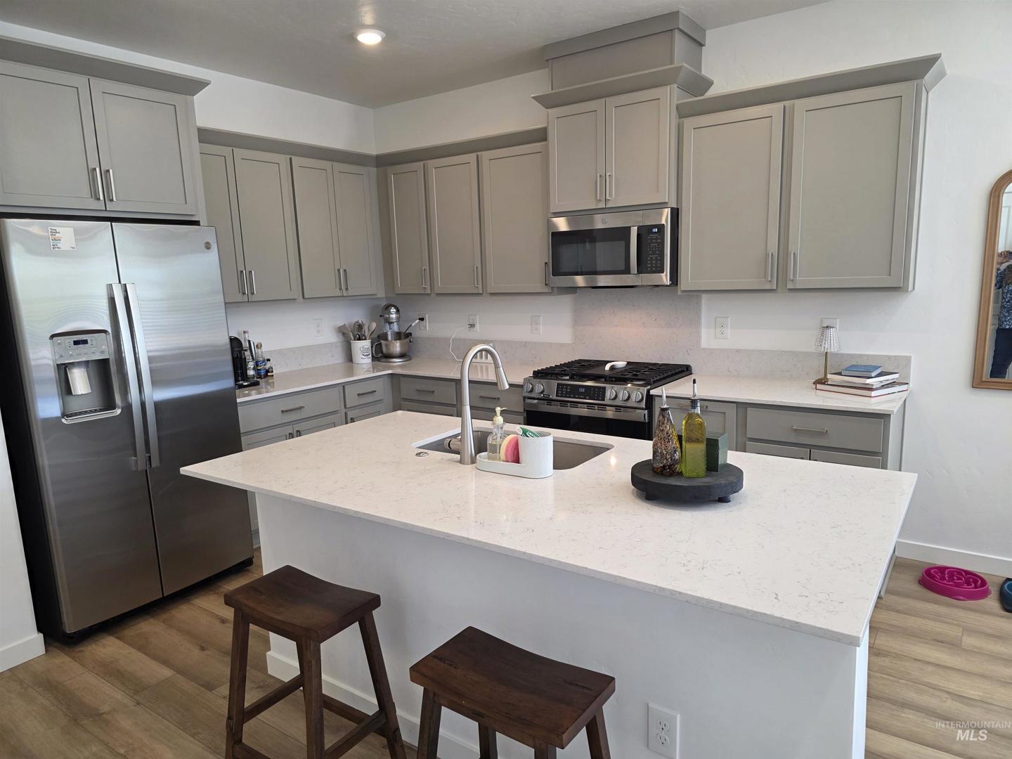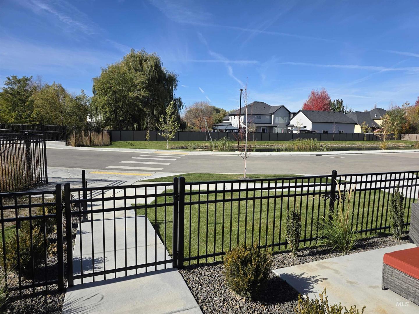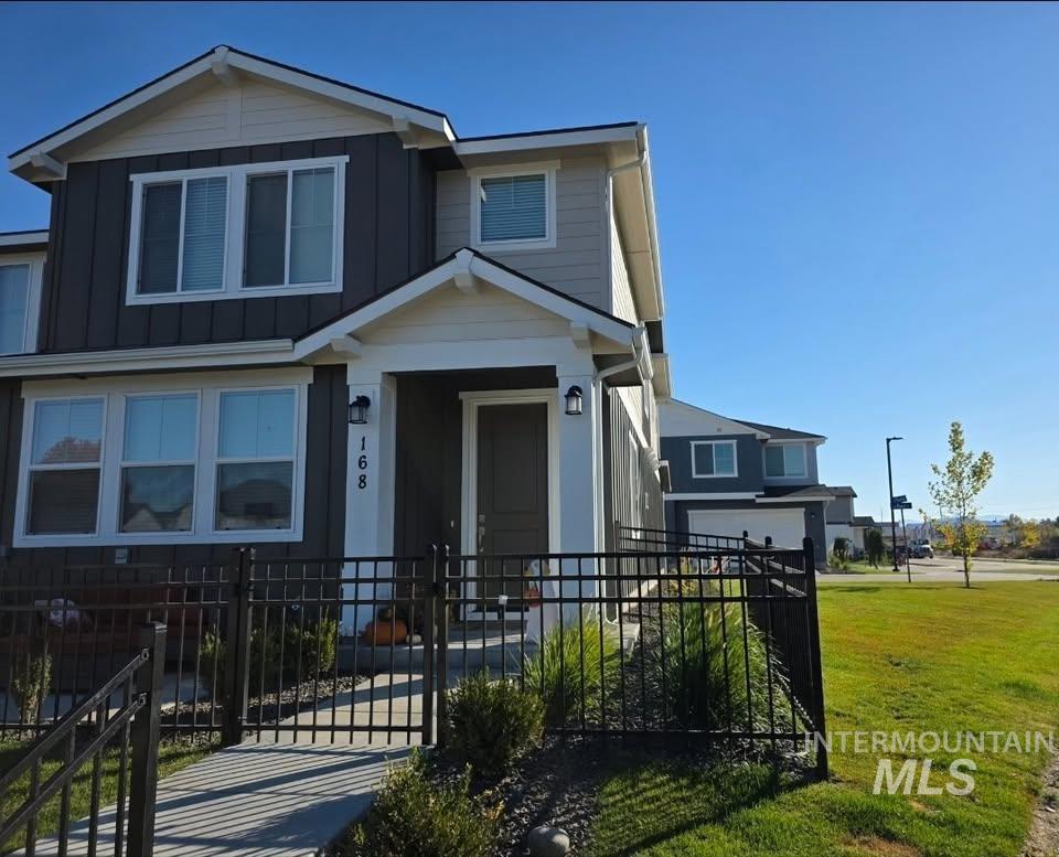 OPEN HOUSE Saturday 01/31 from 11:00am-1:00pm. This townhome is tucked at the rear of the community, offering added privacy with no neighbor on one side, street parking, and serene pond views. The modern two-story design features an open-concept main level where the kitchen, living, and dining areas flow seamlessly-perfect for entertaining. The kitchen is appointed with quartz countertops, stainless steel appliances, shaker-style cabinetry, and durable LVP flooring. A pantry, storage room, mudroom, and convenient main-level bathroom enhance everyday functionality. Large windows fill the home with natural light and showcase views of the surrounding green space. Upstairs, you’ll find four bedrooms, including a spacious owner’s suite with a ceiling fan, dual vanities, and a generous walk-in closet. The laundry room includes a newer washer and dryer for added convenience. An attached two-car garage plus additional street parking provide ample space for vehicles. Enjoy a low-maintenance lifestyle with a fenced porch—perfect for morning coffee or an evening relaxation. This vibrant community offers resort-style amenities including a swimming pool, rentable clubhouse, playground, walking paths, and a dog park. Ideal for a “lock-and-leave” lifestyle, this home blends comfort, convenience, and recreation in one exceptional setting. Photos similar. Home is no longer furnished.