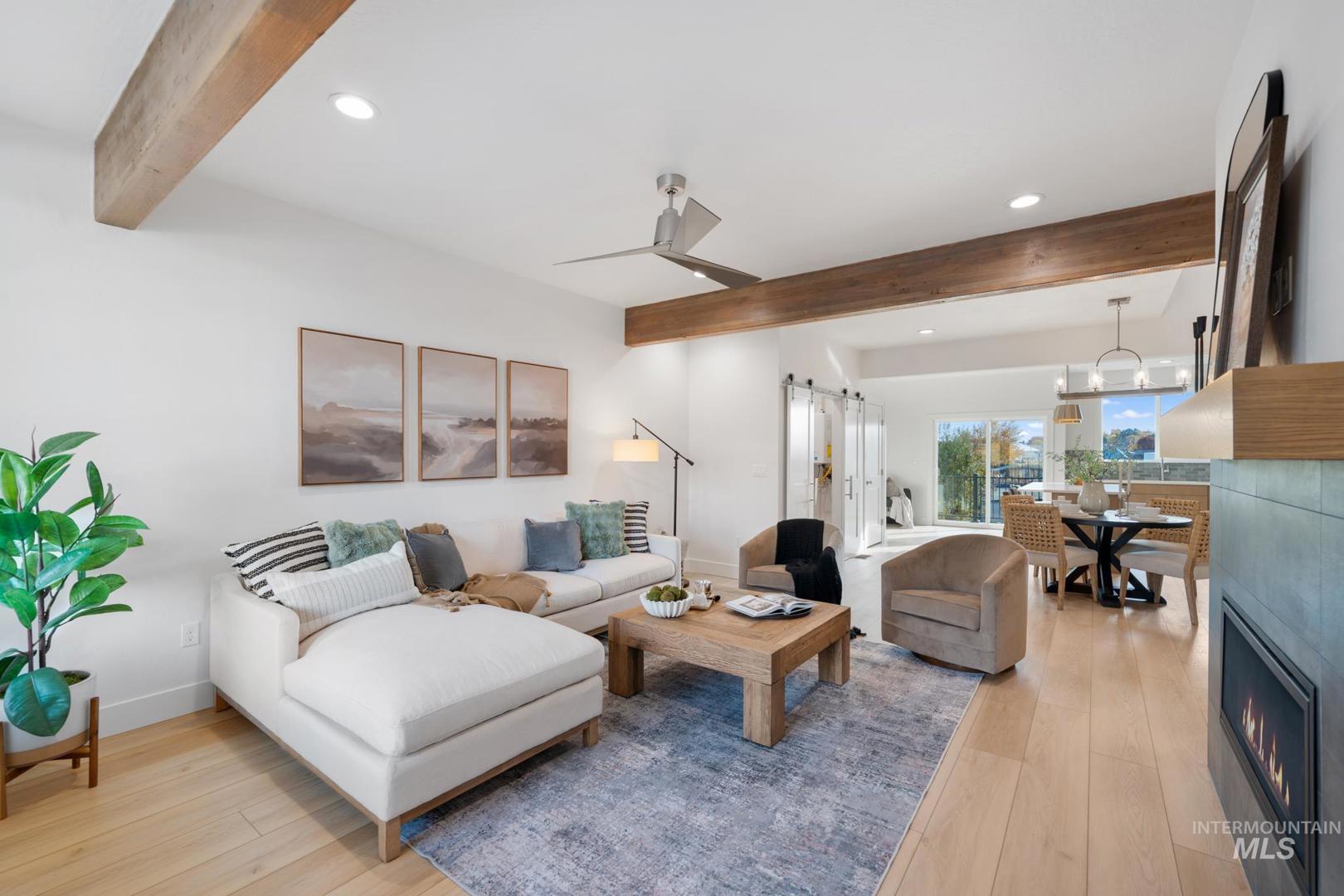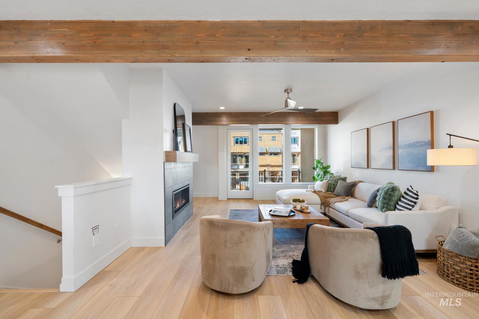 Spectacular location nestled just off the Boise River, minutes to the Greenbelt with the scenic path leading to wineries, breweries, restaurants, shops & all Boise has to offer. This new construction townhome blends modern luxury & natural beauty, just steps to the new multi-million-dollar Park at Expo Idaho. This beautifully designed home features an open concept living space with a built-in bar area, contemporary linear fireplace & gorgeous finishes. The kitchen stuns w/a large granite island with breakfast bar, pantry & light filled dining room. Upstairs you`ll find the master retreat w/dual vanities, entry to balcony, convenient laundry room & 2 large bedrooms, one with additional access to deck. This upscale home is plumbed for central vac, features a tankless water heater, wired for surround sound and has designer touches throughout. The outdoor enthusiasts will love this unbeatable location and luxurious features! All photos are similar. Construction estimated to be completed mid March.