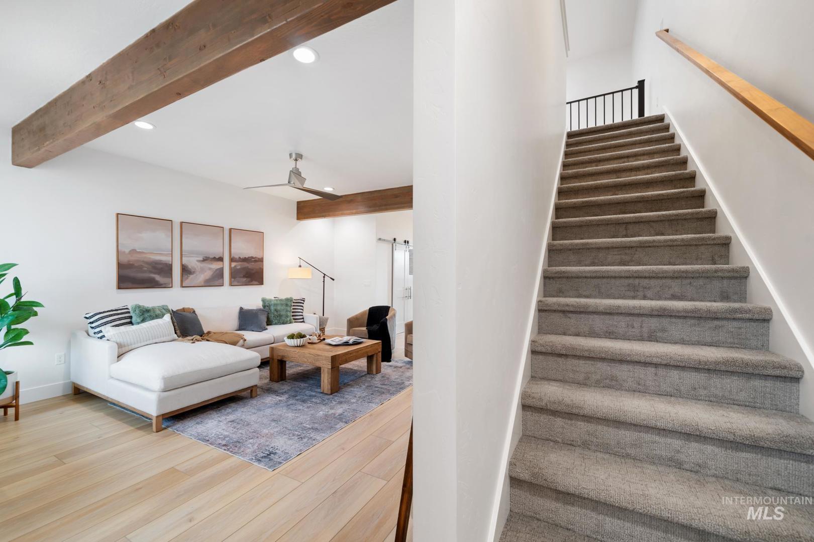 Spectacular location nestled just off the Boise River, minutes to the Greenbelt with the scenic path leading to wineries, breweries, restaurants, shops & all Boise has to offer. This new construction townhome blends modern luxury & natural beauty, just steps to the new multi-million-dollar Park at Expo Idaho. This beautifully designed home features an open concept living space with a contemporary linear fireplace, covered deck off of great room and a 2-story vaulted dining room allowing tons of natural light. The kitchen stuns w/a large granite island with breakfast bar, huge pantry, & even a second deck. Upstairs you`ll find two spacious master bedrooms, both w/walk-in closets & a convenient laundry room. Off of the garage you`ll find a flex room, perfect for an office with a powder room and an entrance to the back patio. This upscale home is plumbed for central vac, features a tankless water heater, wired for surround sound and has designer touches throughout. The outdoor enthusiasts will love this unbeatable location and luxurious features! All photos are similar. Construction estimated to be completed mid March.