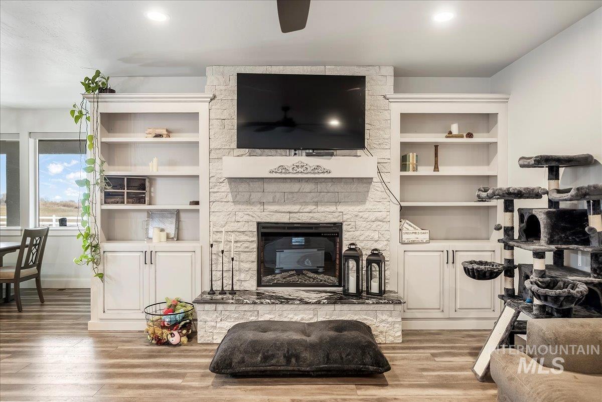 Beautiful 4 bed 3.5 bath home with custom finishes built with the whole family in mind within the Paradise Valley Subdivision! Home features custom blinds, built in`s in every closet, tile shower/tubs, recirculating hot water, hot point instant hot in kitchen, whole home air diffuser, invisible fence for your pets, RV hookups for power and water inside RV bay, 3 of 4 bedrooms with private baths..+ office space and so much more. Fully irrigated property with water rights maintained by HOA dues. This home is a must see!