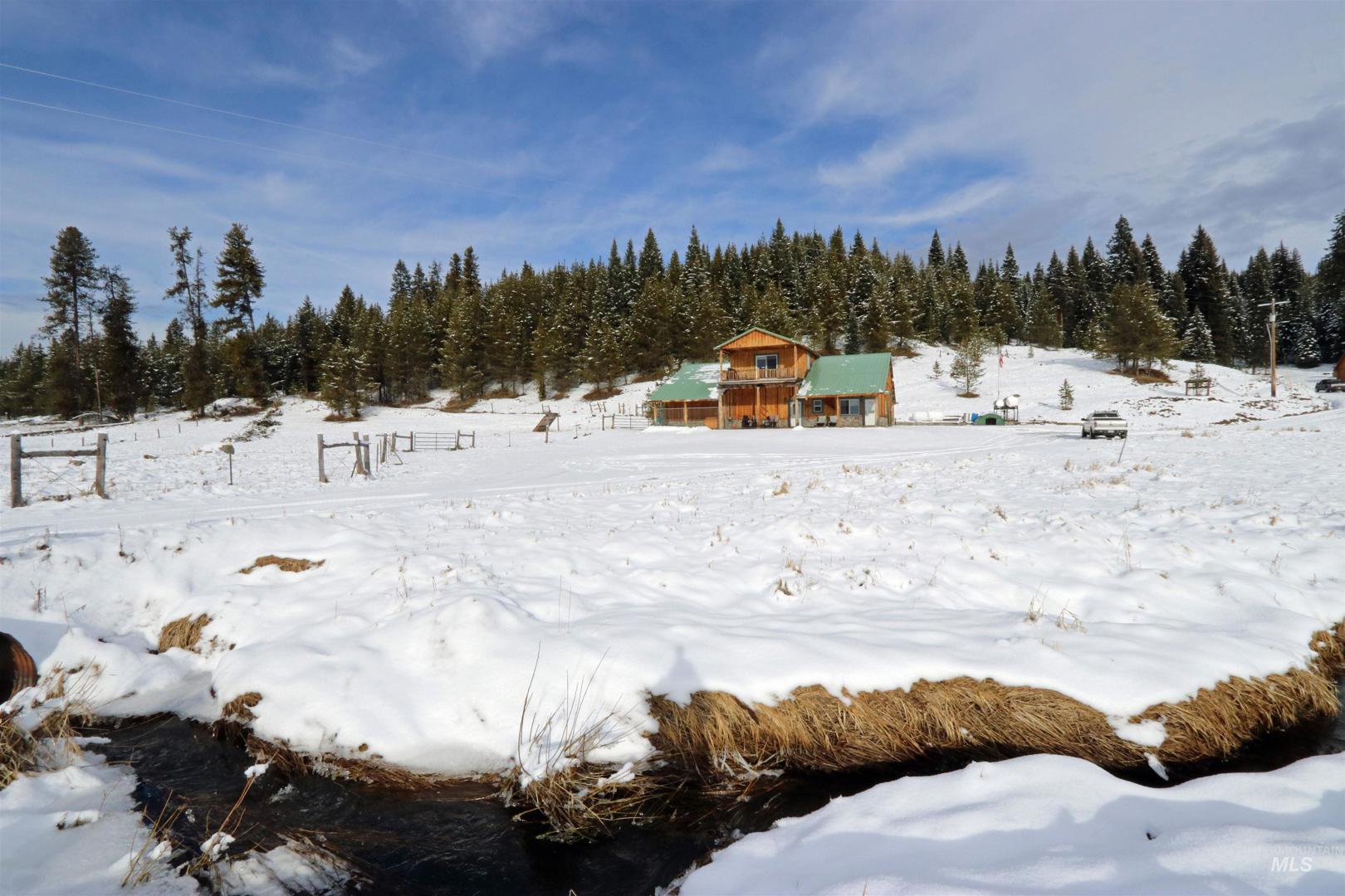 Everything you ever wanted! Enjoy tranquil meadow views and the sounds of Little Elk Creek from your 3-bedroom home, while guests relax in a 4-bedroom VRBO that sleeps 8. The 56-acre property includes meadows, pasture, pond, creek, spring, mature trees, private well, walk-in cooler, smokehouse, outbuildings, fenced garden with raised beds, and a spacious shop. Prepare for your next adventure at this rare property near the Gospel Hump Wilderness, Frank Church River of No Return Wilderness, Selway-Bitterroot Wilderness, Bitterroot National Forest, and Nez Perce National Forest offering excellent opportunities for future exploration.