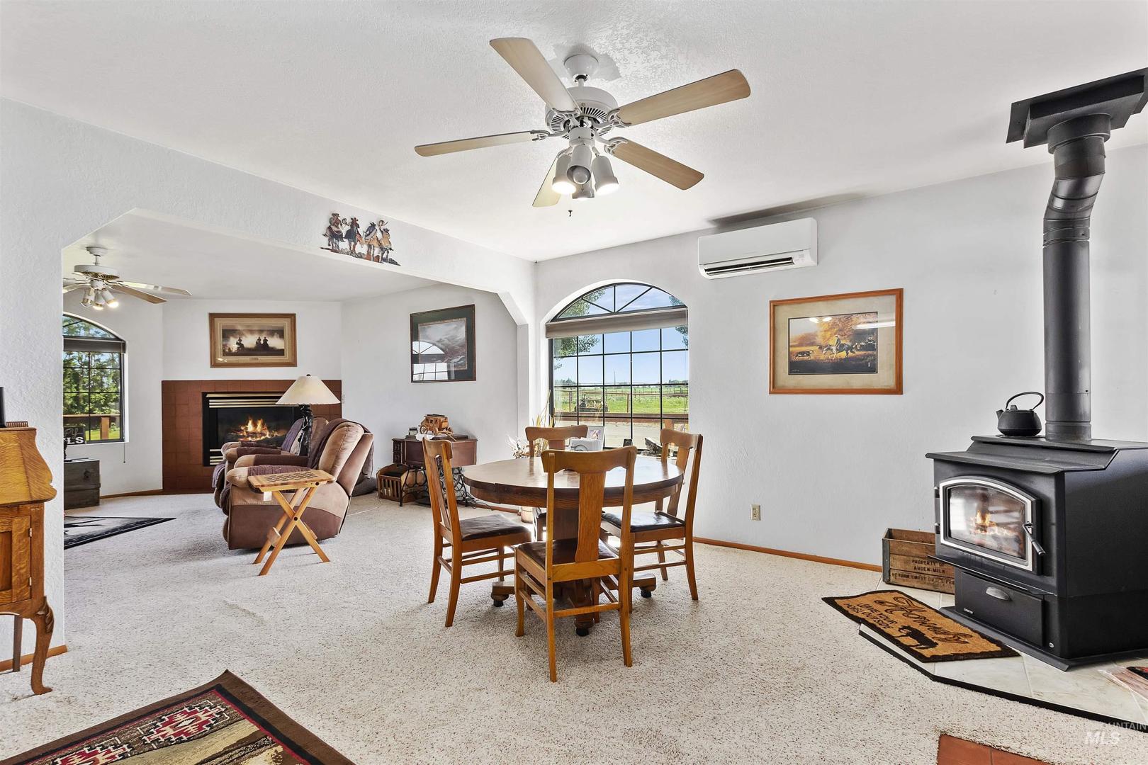 Tucked away in a quiet pocket of Southern Idaho, this well-maintained and move-in ready 16.099-acre horse property offers stunning views of the mountain range to the north. Designed with equestrian functionality in mind, the property features both indoor and outdoor riding arenas, tack rooms, pasture, and a horse shelter, along with abundant parking for trucks, trailers, RVs, side-by-sides, boats, and more. Its close proximity to Interstate 84 creates excellent potential for use as a horse motel, providing a safe and convenient overnight stop for travelers, while also appealing to outdoorsmen of all kinds. The 3,975-square-foot home includes four bedrooms and three bathrooms, offering ample space for comfortable living. Located near public lands, Hagerman recreation areas, Sun Valley, and numerous equine venues, this exceptional property combines space, versatility, and an unbeatable location.