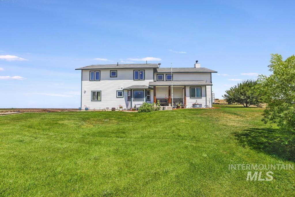 Inspection items have already been addressed. SELLER IS MOTIVATED! Enjoy peaceful country living just one hour from Sun Valley and less than an hour from Twin Falls! This charming 2-story home sits on more than 5 scenic acres and offers 2,536 square feet with 4 bedrooms, 2.5 baths, and two spacious living areas. The primary suite is conveniently located on the main level, while the upper deck showcases stunning views of the surrounding landscape. Inside, you`ll love the rich wood floors and the show-stopping river rock fireplace with wood stove for cozy winters. Outside features include a pasture, garden area, and two seasonal ponds. Water shares are delivered through the HOA for easy irrigation. A concrete pad is already poured for your future garage or shop. Tranquil, private, and ready for your rural lifestyle. Don’t miss this slice of Idaho paradise. To top it all off it has a new 30 year roof installed January 2026.