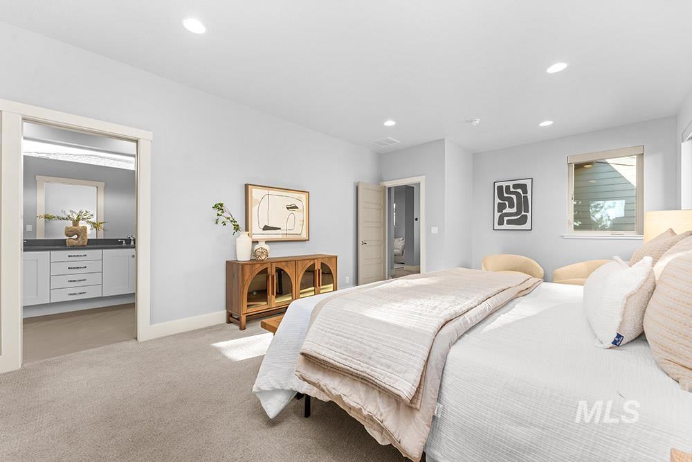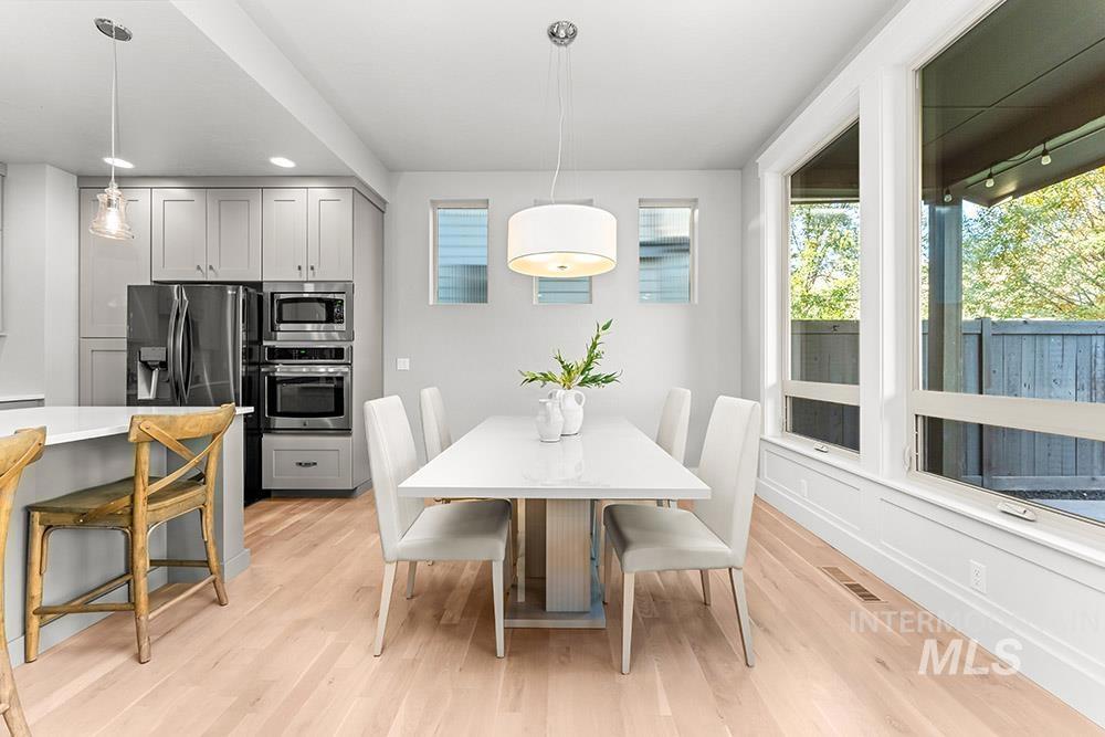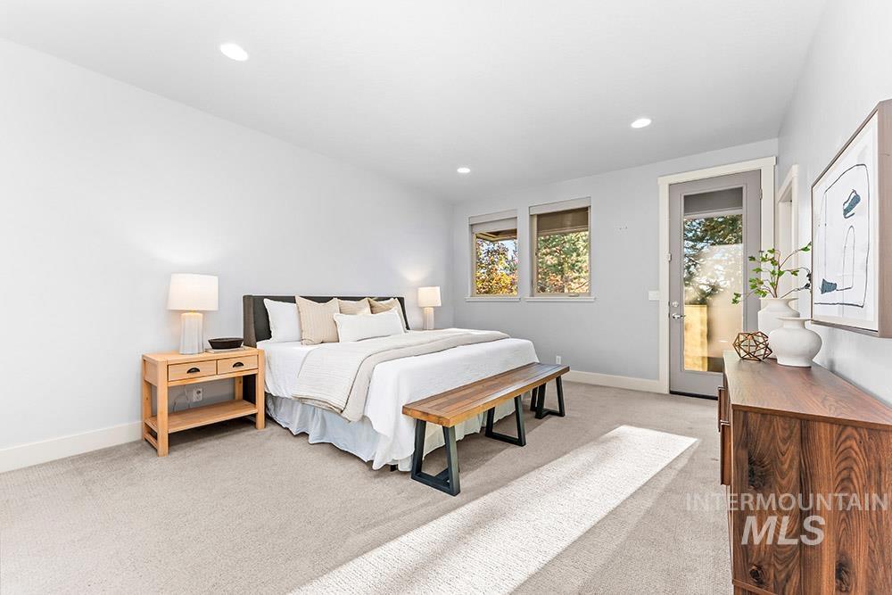Discover this stunning move-in ready home tucked away on a dead-end street, offering complete privacy with foothills right in your backyard! Located in desirable East Boise, enjoy the Homestead trail right behind you, and the Boise River, Harris Ranch, Bown Crossing, and vibrant downtown Boise just minutes away. Step inside to a bright, open living space featuring soaring 10`+ ceilings, gorgeous hardwood floors, and walls of windows framing the breathtaking foothills beyond. The living room centers around a cozy fireplace, while the gourmet kitchen is designed for entertaining with an oversized island, quartz countertops, built-in stainless steel appliances, ceiling-height cabinetry, and a built-in bar area. Upstairs, the private master suite offers a spacious retreat with its own balcony, spa-like en suite bath, and large walk-in closet. Flexible spaces throughout the home provide room to spread out, including an upper-level bonus loft perfect for a home theater, playroom, or lounge, and a dedicated main-level office ideal for remote work. Enjoy tranquil evenings on the expansive covered patio, where the foothills feel like an extension of your backyard. The oversized 2.5-car garage includes a bump-out area for additional storage. Experience the best of SE Boise living with easy access to community amenities, including a neighborhood pool and nearby Ridge to Rivers trailheads.