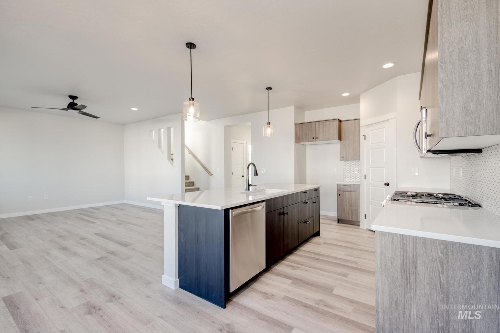 This new home located in beautiful Caldwell, Idaho has all the comforts you need & more! The Glenlake 2153 makes an unforgettable impression with a welcoming entry that opens into a main level featuring a well-placed bedroom, a half bath, and a stunning great room designed for connection and everyday comfort. The kitchen stands out with its oversized island and extensive counter space, seamlessly flowing into the dining and living areas so conversations and moments stay effortlessly connected. Upstairs, a versatile loft offers space to unwind or create, joined by three additional bedrooms that provide room to spread out. The primary suite elevates relaxation with an elegant en suite bath complete with dual vanities and a separate soaker tub for a spa-like retreat. A tandem bay in the garage adds valuable flexibility for storage, an additional vehicle, or a personalized hobby space. Potential RV parking available. **PHOTOS ARE SIMILAR**. All selections are subject to change without notice, please call to verify.