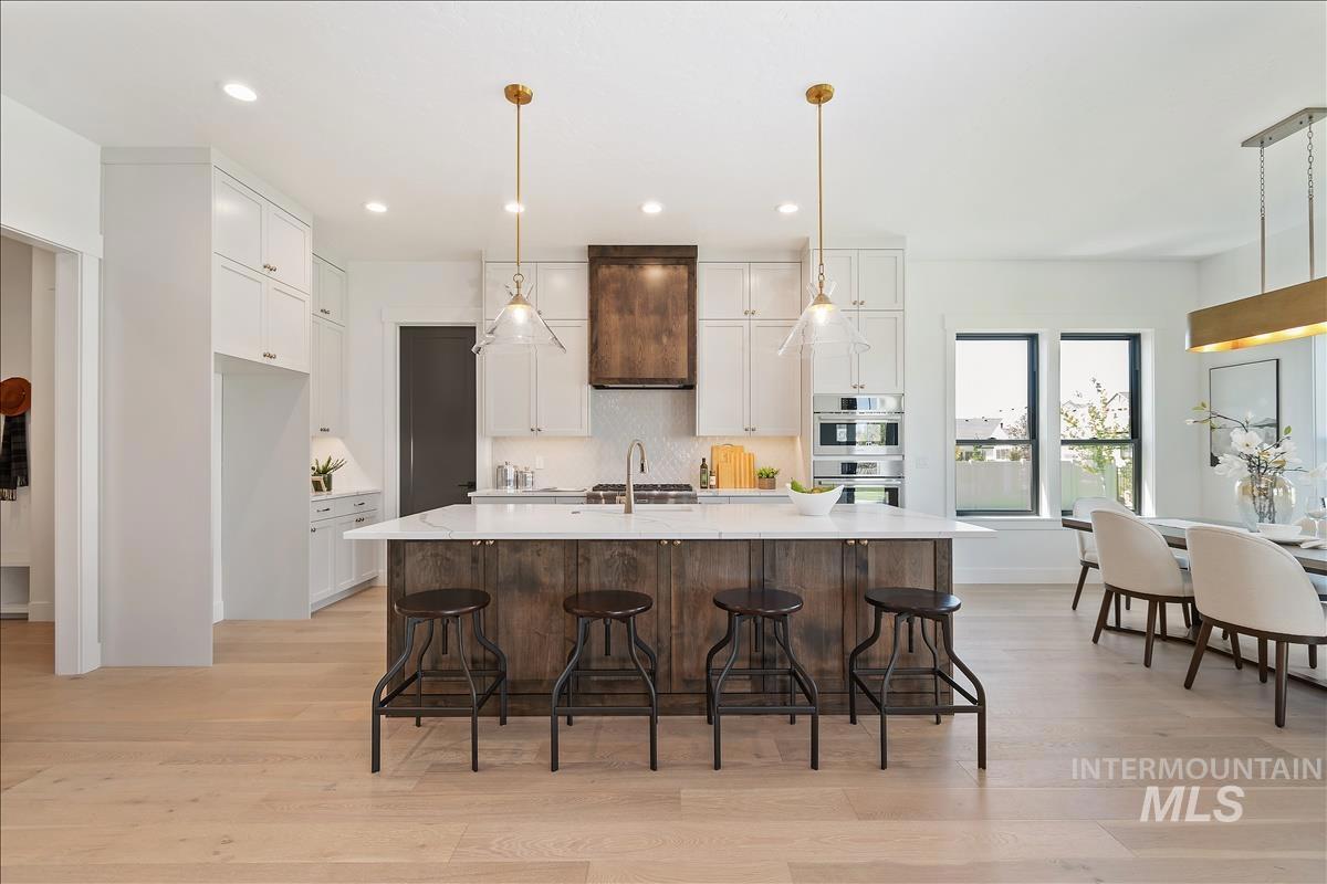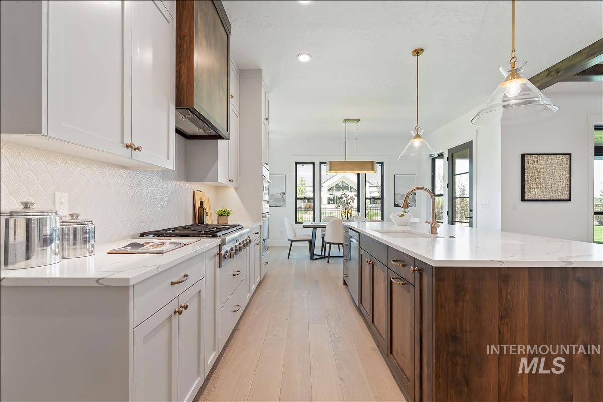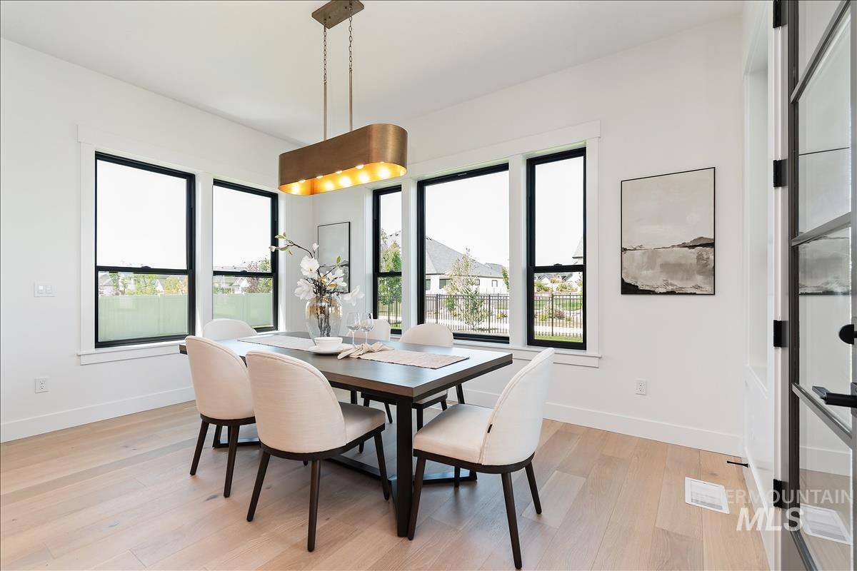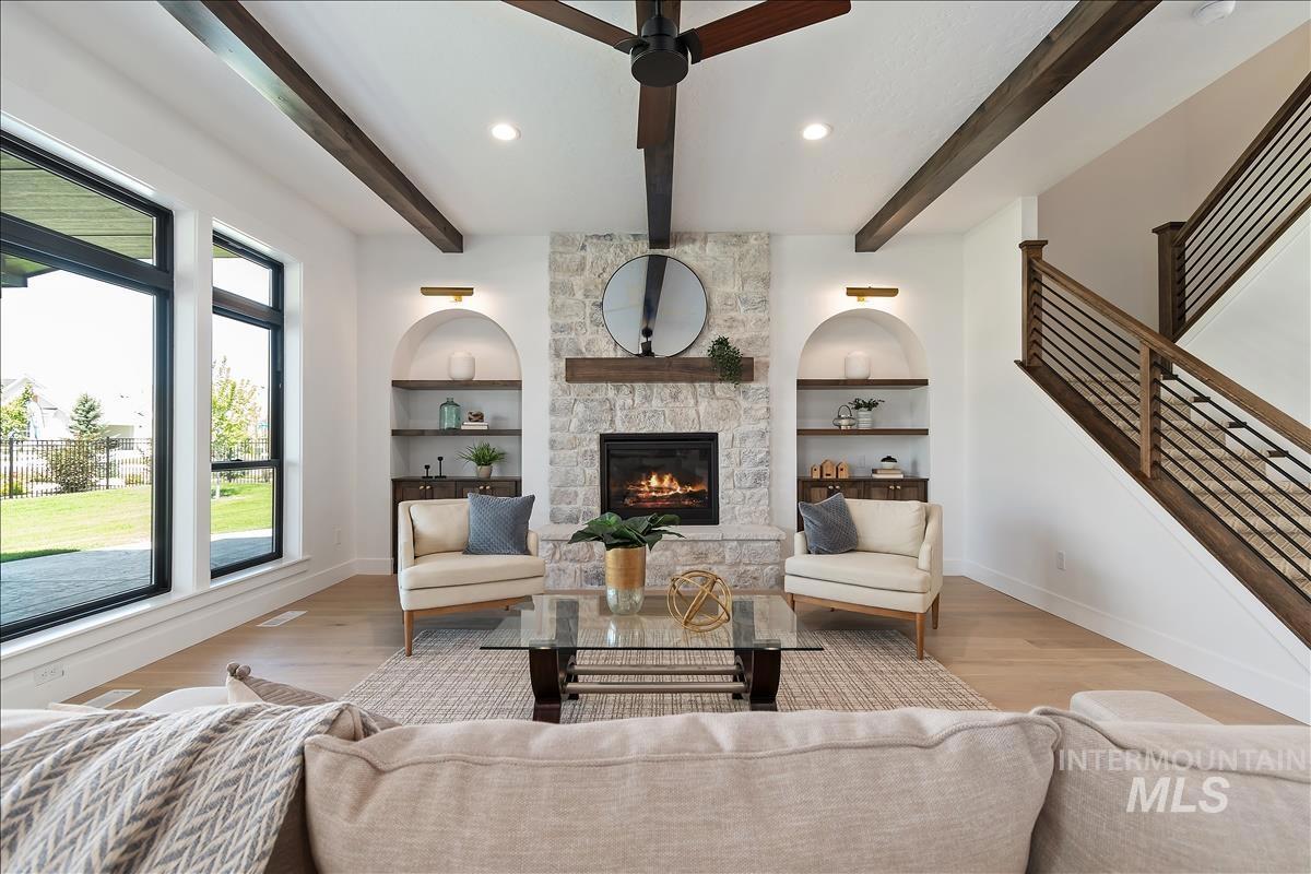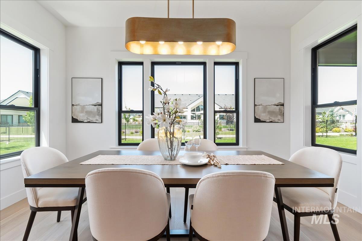 Experience exceptional new construction by Solitude Homes in the desirable Terra View subdivision in Eagle, Idaho, where thoughtful design, elevated finishes, and everyday livability come together seamlessly. Designed for effortless entertaining, this stunning home features a Thermador appliance package, farmhouse sink, quartz countertops, and a spacious pantry, all centered around a large kitchen island perfect for gathering. A beautifully crafted gas fireplace anchors the great room, while custom-built bookshelves create a striking and welcoming entry statement. Blending indoor and outdoor living, this swoon-worthy home is ideal for hosting and relaxing alike - enjoy meals around the expansive island, unwind on the covered patio, or create lasting memories under the Idaho sky. The primary suite is a true private retreat, complete with a spa-inspired bathroom and generous walk-in closet. Extensive custom woodwork is featured throughout the home, with the den standing out for its exquisite detailing, adding warmth and architectural character. This thoughtfully designed floor plan offers 4 bedrooms, 3.5 bathrooms, a bonus room, a den, and a 4-car garage with an RV bay, providing exceptional flexibility and storage. A rare opportunity to own a beautifully crafted Solitude Homes residence in one of Eagle’s most sought-after communities. PHOTOS SIMILAR