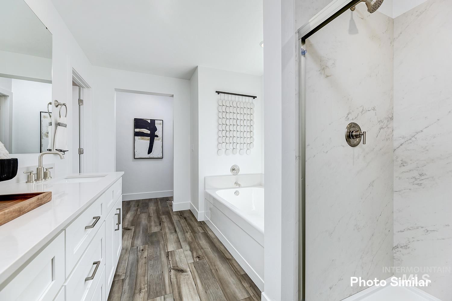Luxury lives in the details with the All-Star Series. This premium collection features 9’ ceilings on the main level, creating a bright and open living space complete with a cozy fireplace and covered patio. The gourmet kitchen offers double ovens, a gas cooktop, quartz countertops, a walk-in pantry, and designer cabinetry. You’ll also find quartz countertops in the bathrooms, with luxury vinyl plank flooring throughout the main living areas. Added touches like 6” baseboards, garage service doors, full aluminum gutters, and tankless water heaters reflect the high standards of this standout series. Pera Place in north Meridian features walking trails, tree grove, tot-lot, pond and waterfront homesites!