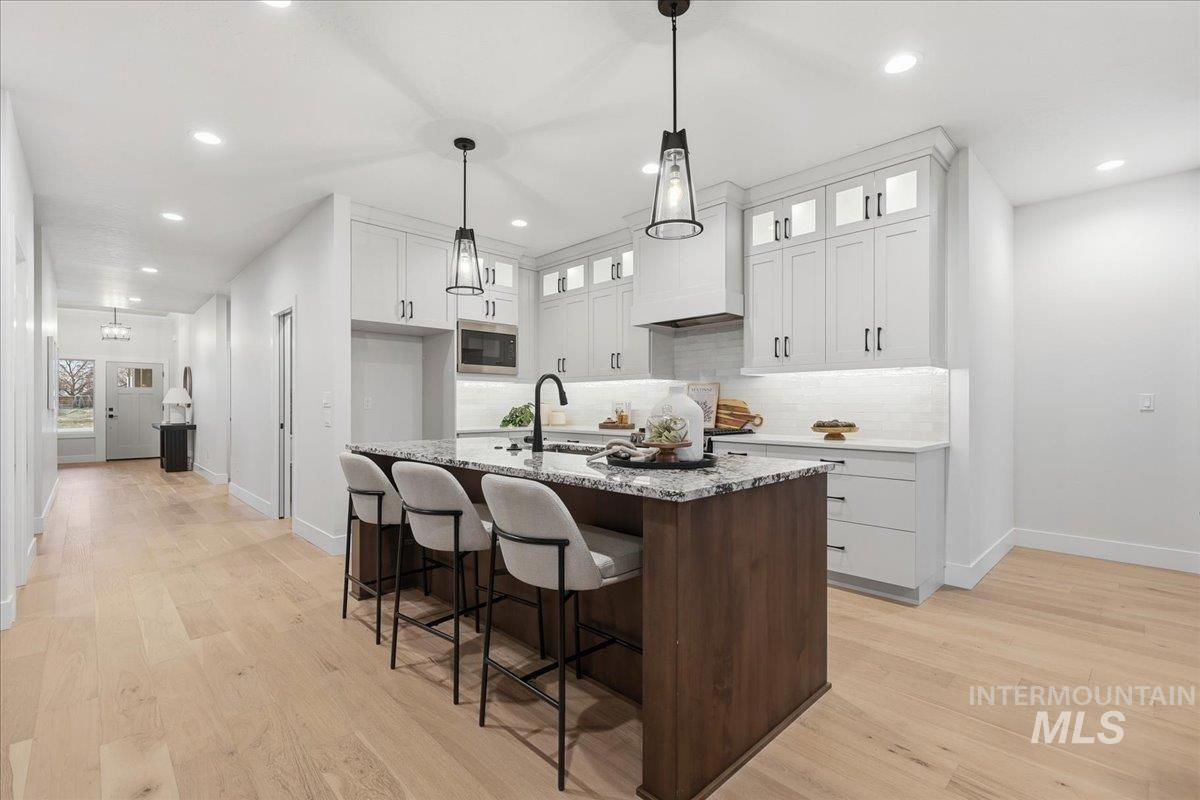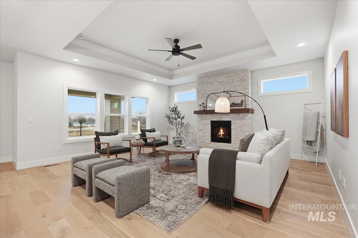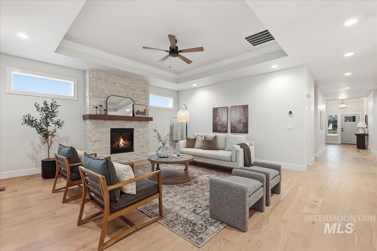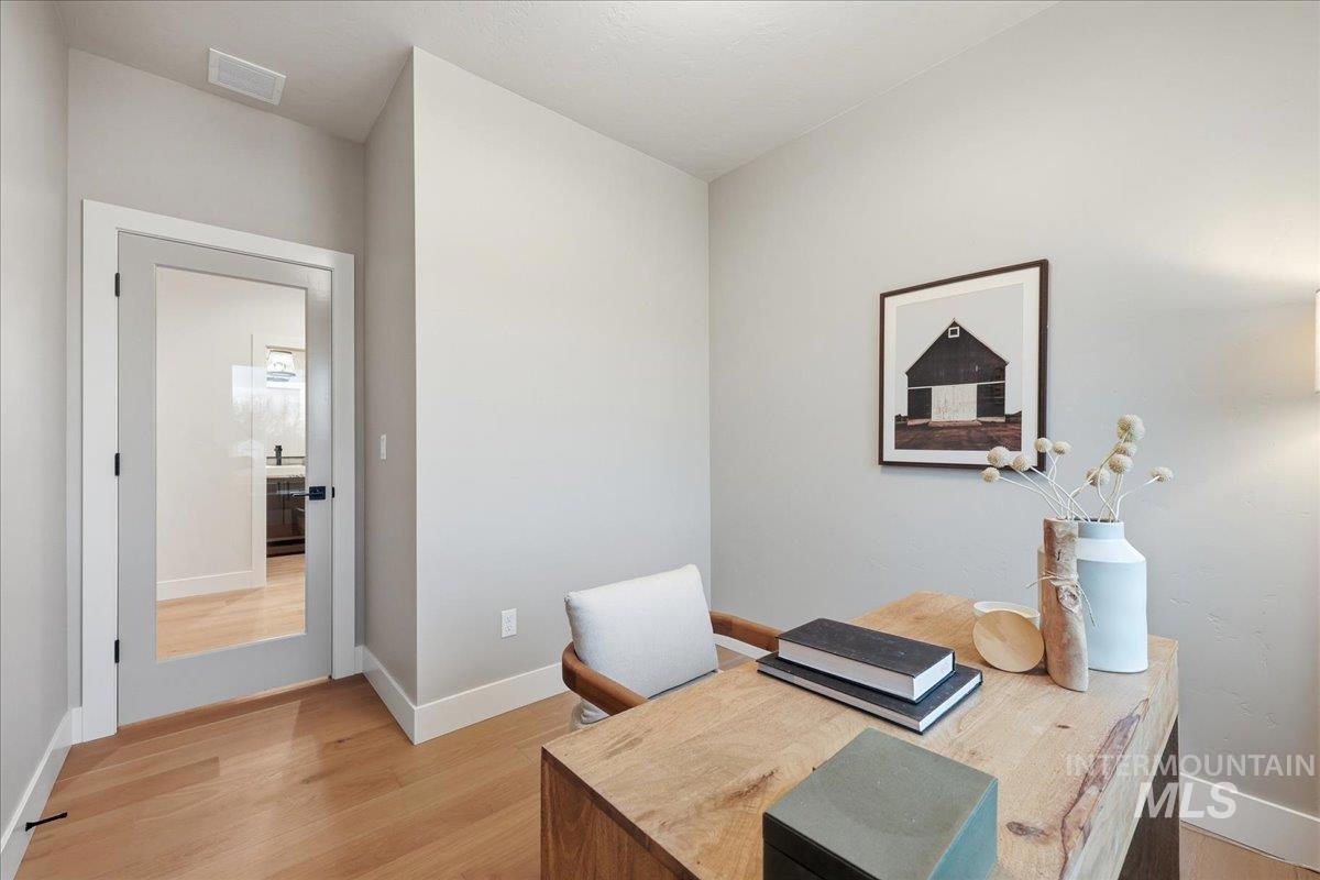 Discover small-town charm paired with upscale living in this stunning new construction by Jayo Construction, located in the desirable new subdivision of The Mill at Middleton. This thoughtfully designed home offers 3 bedrooms, 2.5 bathrooms, plus a dedicated office, ideal for modern lifestyles. A spacious entry welcomes you into the open-concept living area, highlighted by beautiful engineered hardwood flooring and fine finishes throughout. The great room is warm and inviting, featuring a cozy fireplace, perfect for cooler days, and flows seamlessly into the spacious kitchen and designated dining area, ideal for entertaining or everyday living. The primary suite is a true retreat, boasting a vaulted ceiling, dual vanities, soaker tub, walk-in shower, and a generous walk-in closet with convenient access to the laundry room. Step outside to the covered back patio and enjoy the advantages of a rim lot, offering the perfect-sized backyard and beautiful sunrise views. A 3-car garage provides ample space for vehicles, toys, or additional storage. Come experience all that this exceptional home, and this exciting new neighborhood, have to offer.