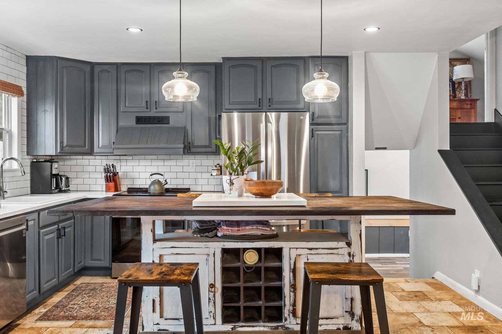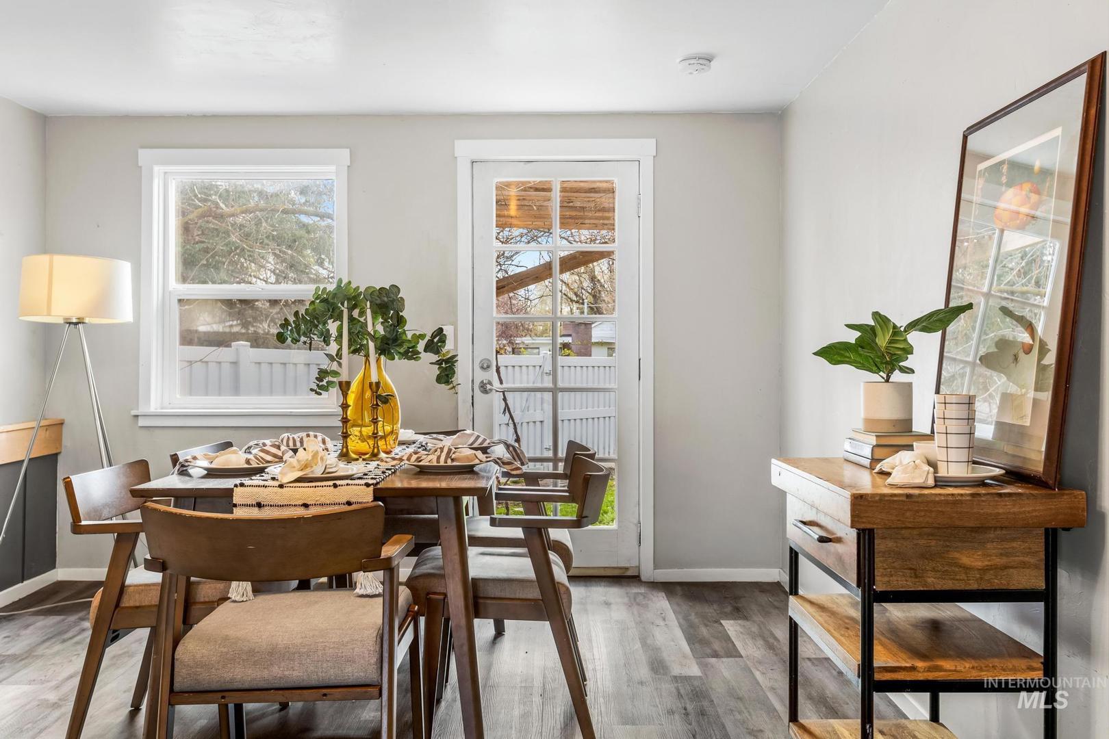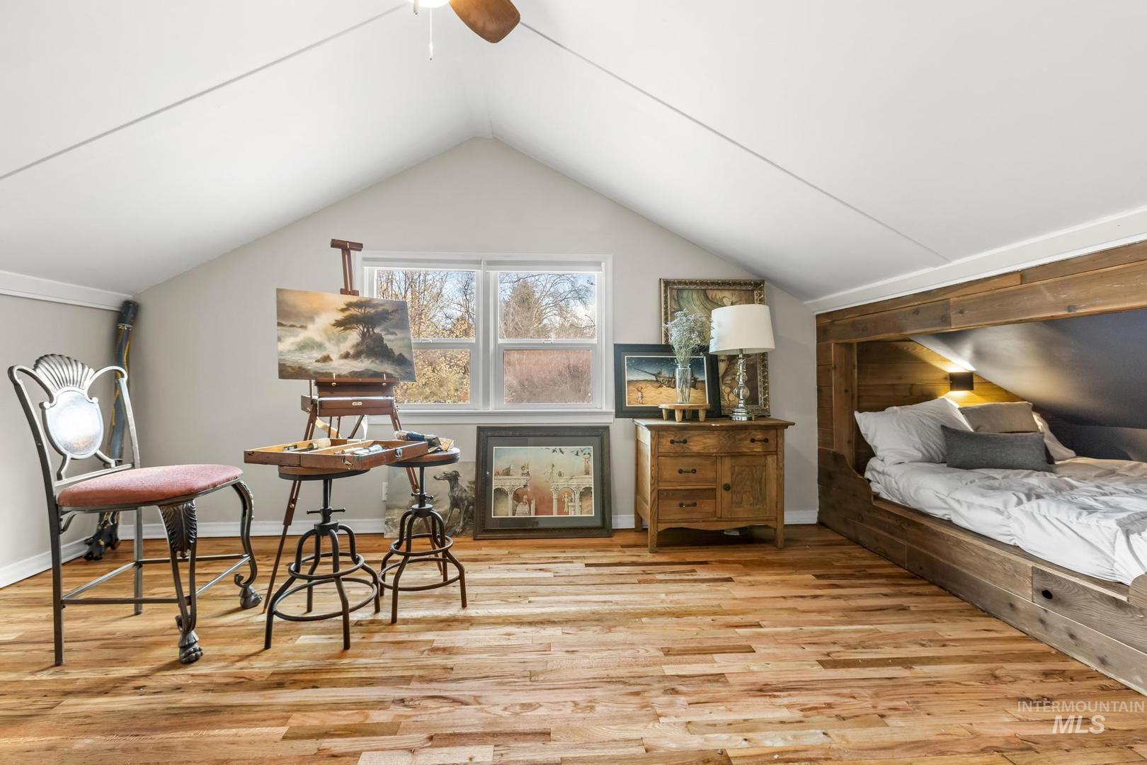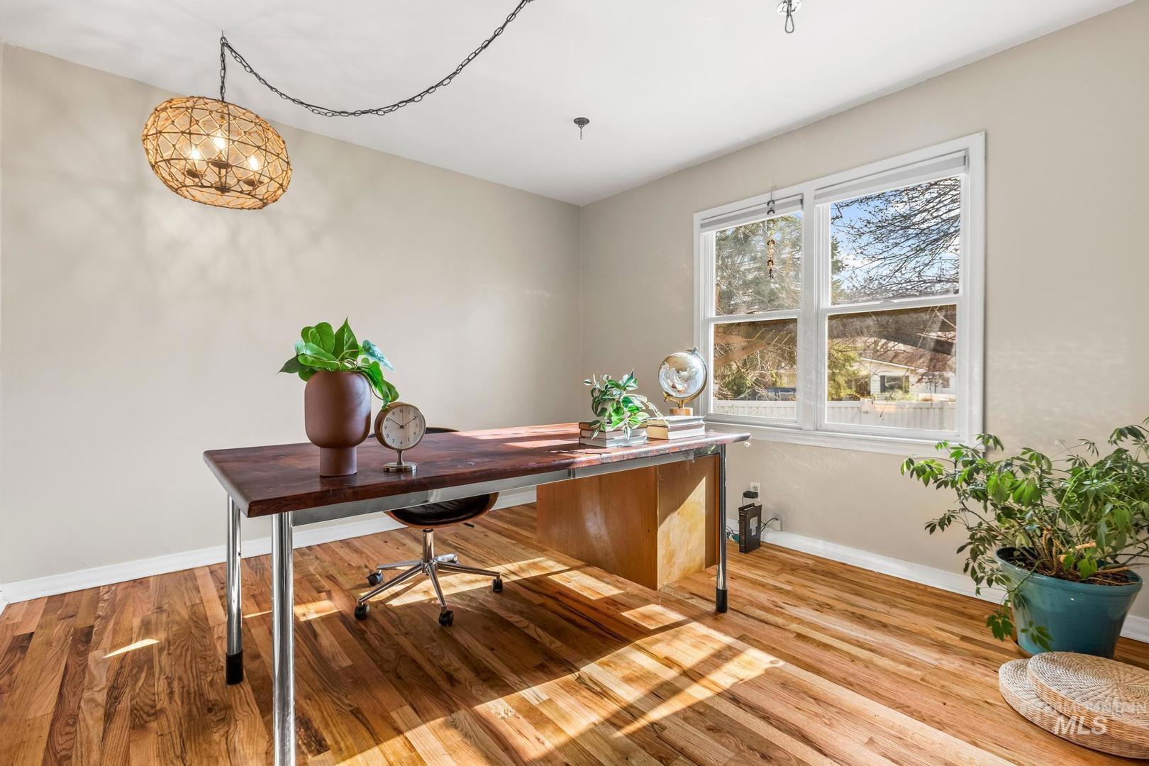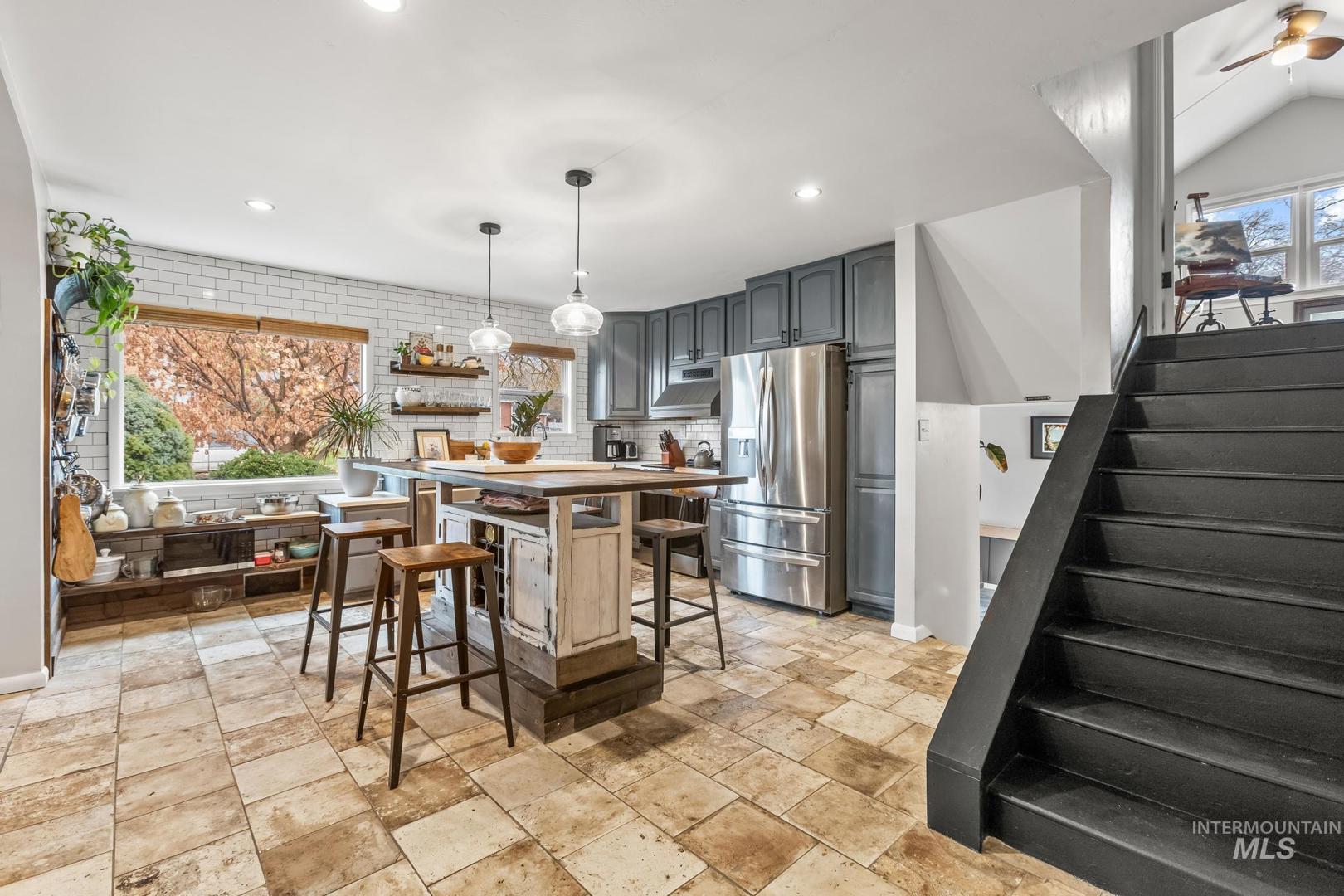 Rarely available in the North End, this storybook dream home is here. Freshly refinished hardwood floors great you in the bright living room with a wood burning fireplace, perfect for cozying up with a book. The open updated kitchen has so much space for culinary adventures. The window overlooking the sink, storage for your copper pots, and so much counter-space and custom display shelves for your pottery. The main level features two bedrooms with hardwood floors and ample closet. The shared bathroom has custom tile and large shower. The upstairs suite is an artists dream perched above the rest with foothills and treetop views, it has a custom cubby bed every kid dreams of disappearing into a book. Downstairs a large flex space for music or dining with a doorway to the incredible Secret Garden yard. The basement is a recreational haven with two more bedrooms, a play space, craft bar, and more. Attached garage lends for more storage.
