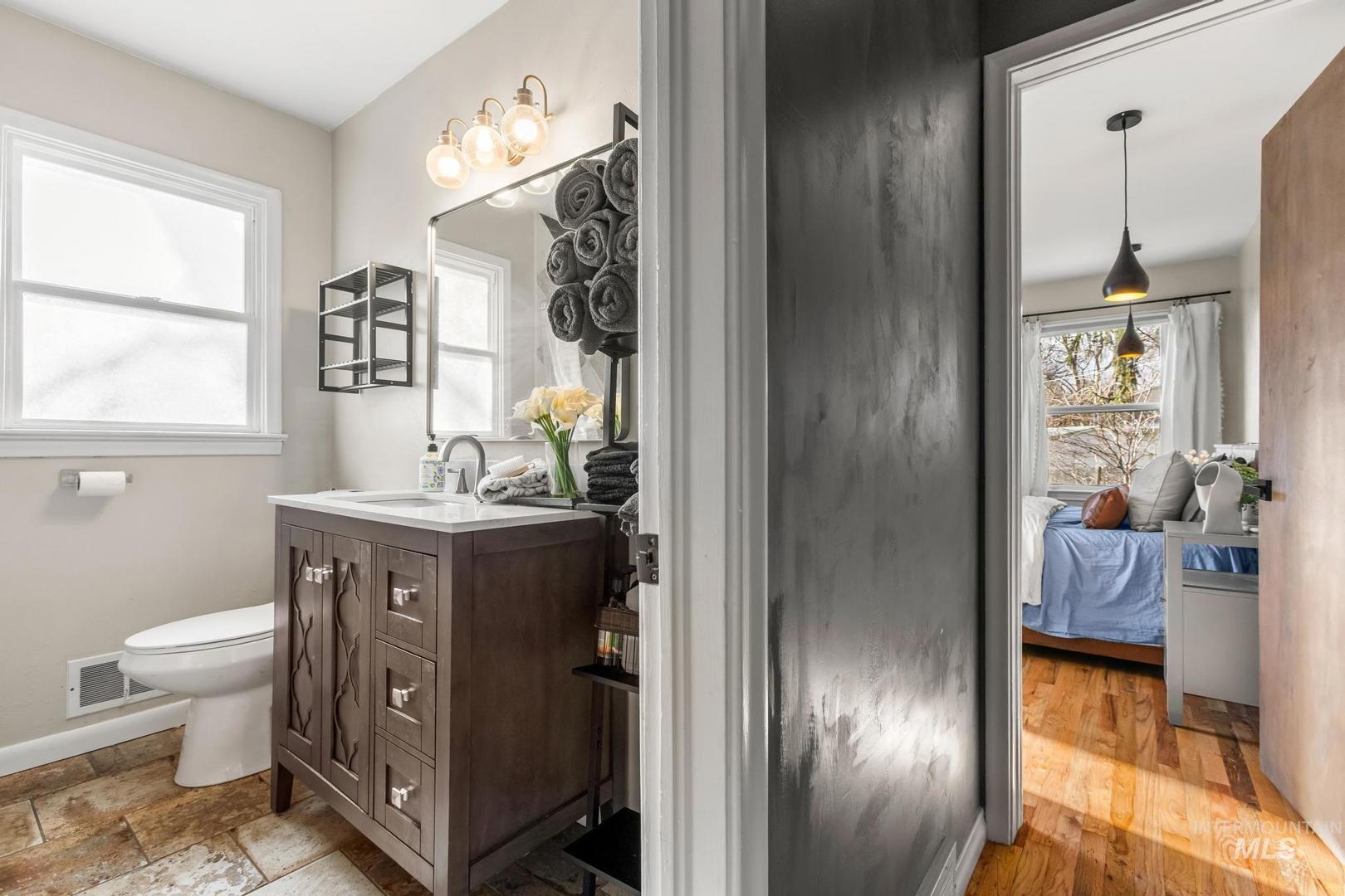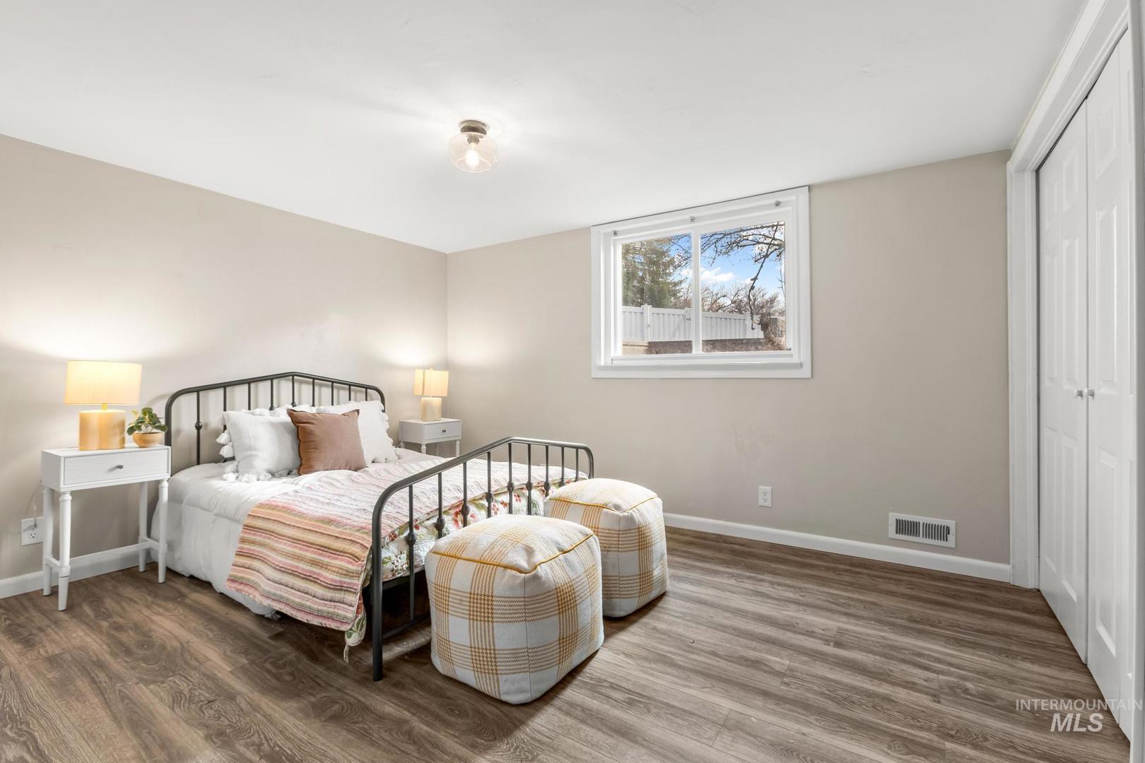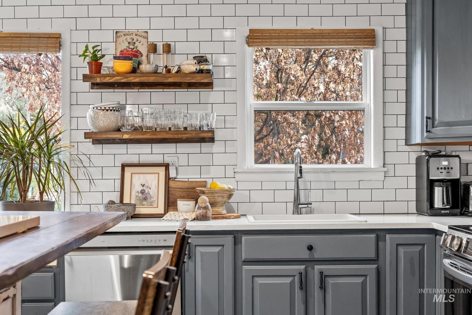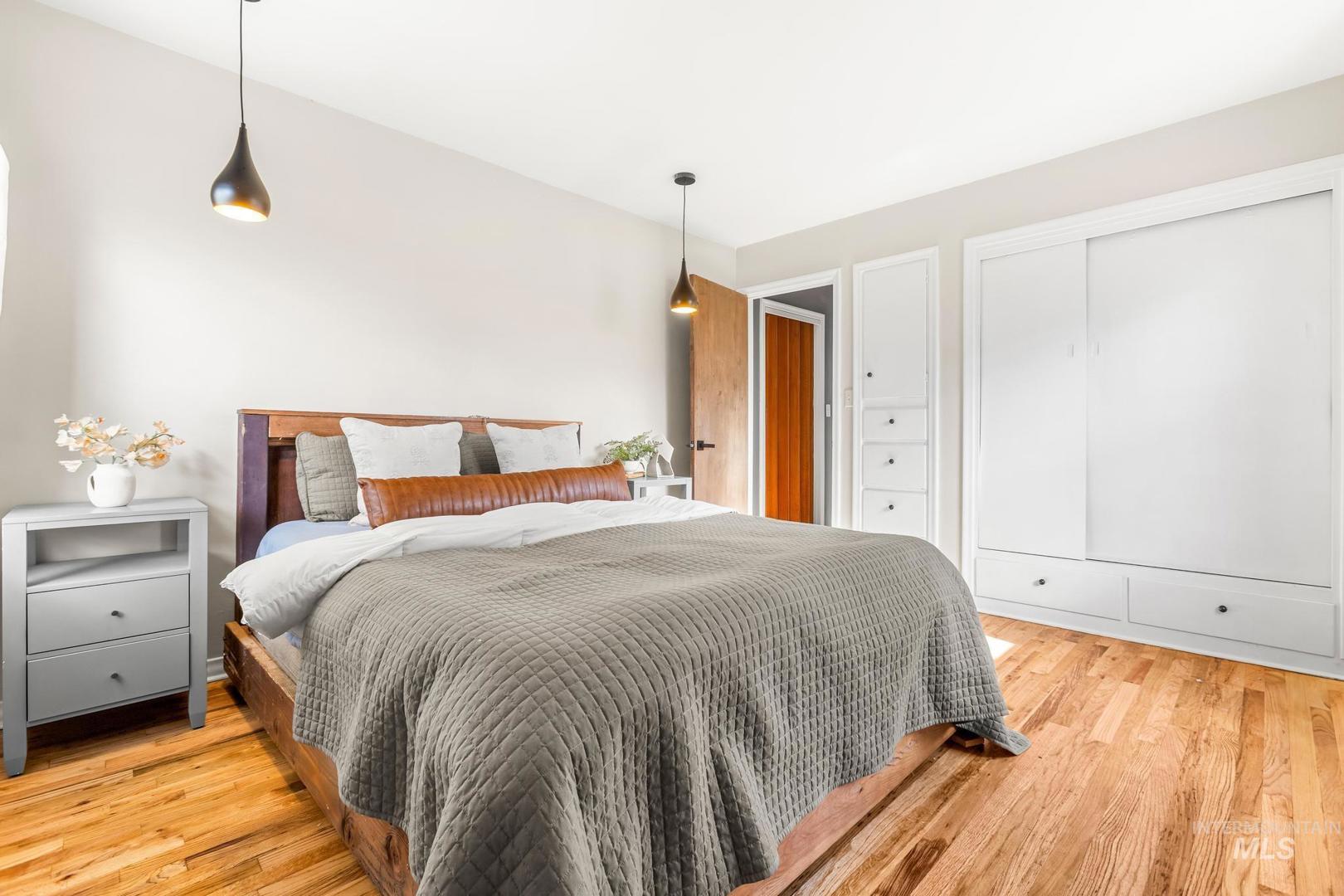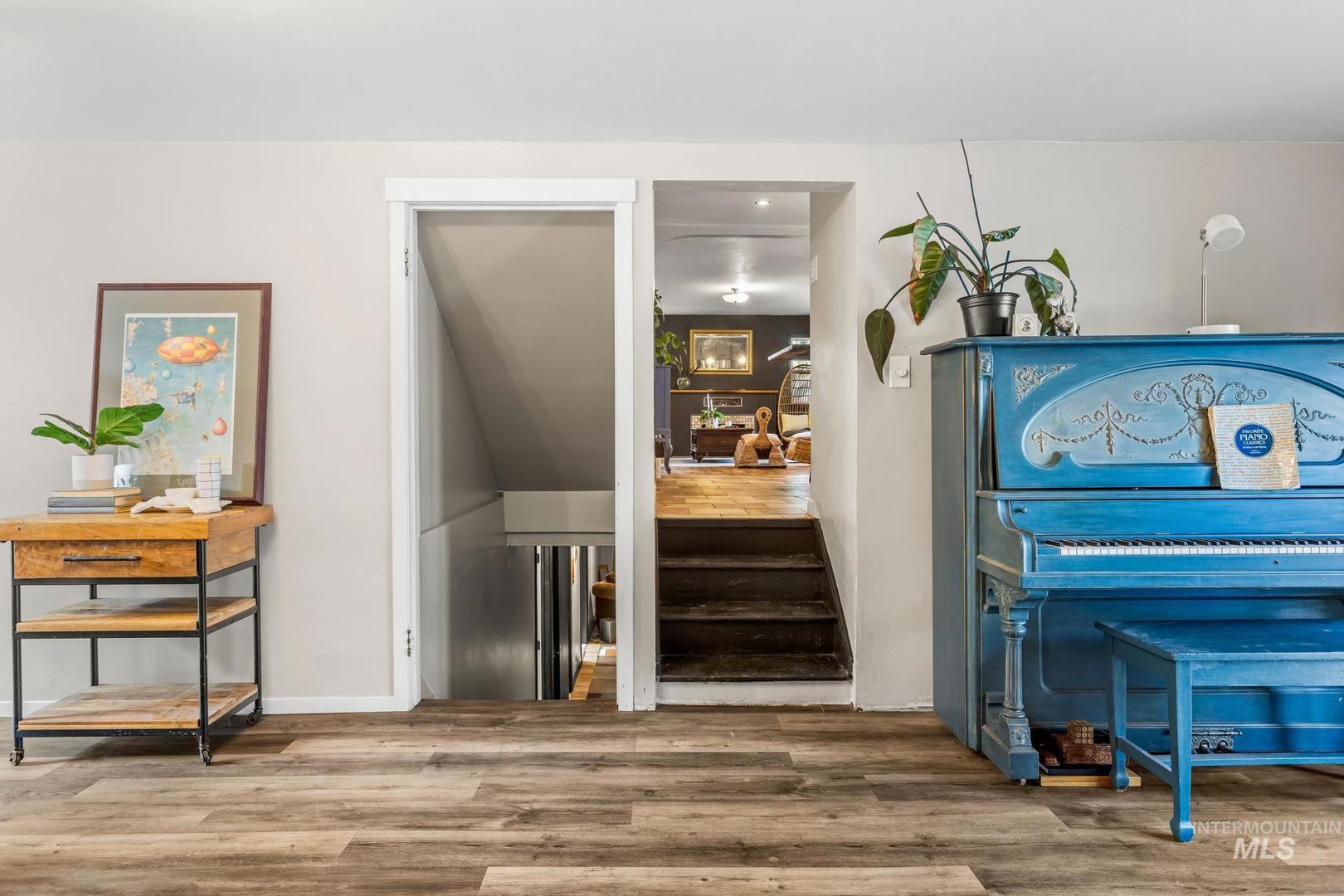 Rarely available in the North End, this storybook dream home is here. Freshly refinished hardwood floors great you in the bright living room with a wood burning fireplace, perfect for cozying up with a book. The open updated kitchen has so much space for culinary adventures. The window overlooking the sink, storage for your copper pots, and so much counter-space and custom display shelves for your pottery. The main level features two bedrooms with hardwood floors and ample closet. The shared bathroom has custom tile and large shower. The upstairs suite is an artists dream perched above the rest with foothills and treetop views, it has a custom cubby bed every kid dreams of disappearing into a book. Downstairs a large flex space for music or dining with a doorway to the incredible Secret Garden yard. The basement is a recreational haven with two more bedrooms, a play space, craft bar, and more. Attached garage lends for more storage.