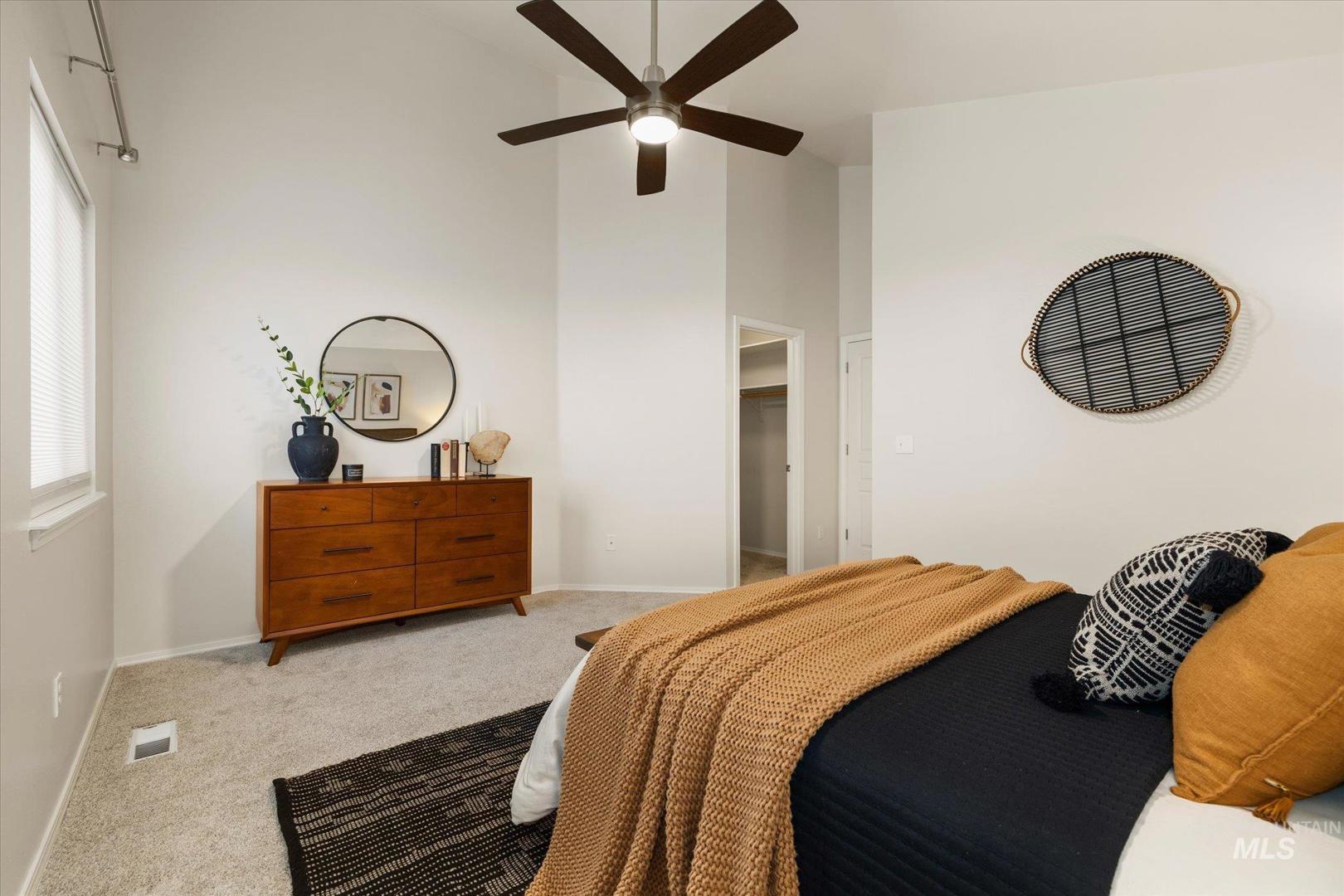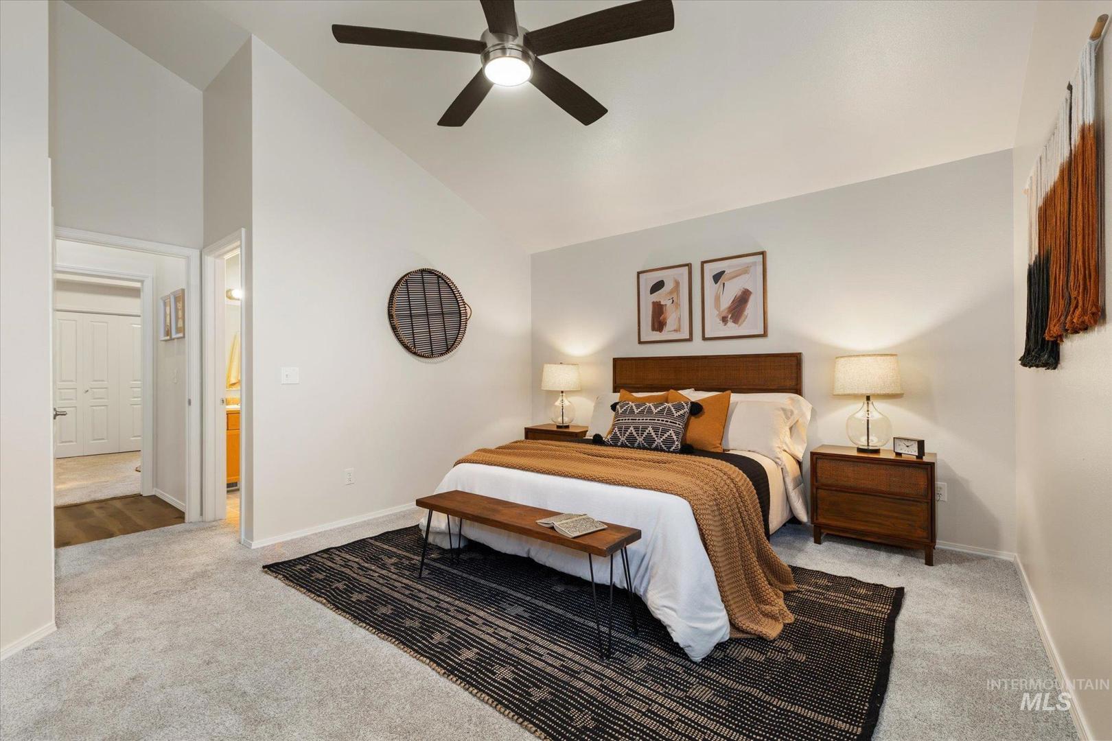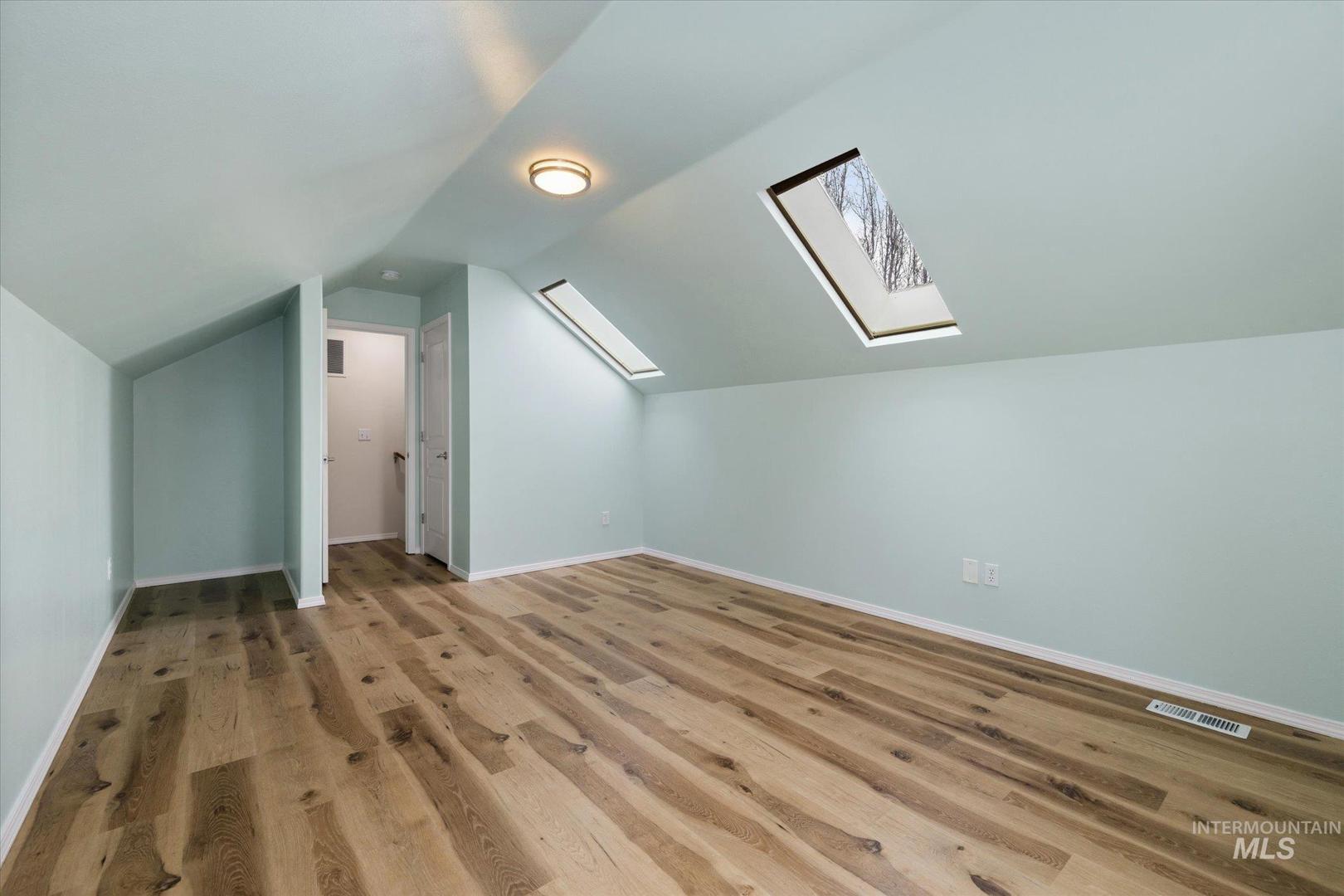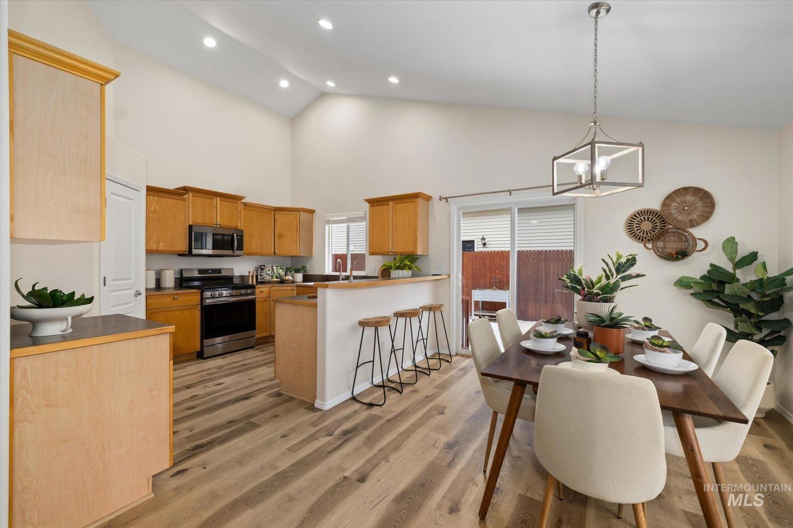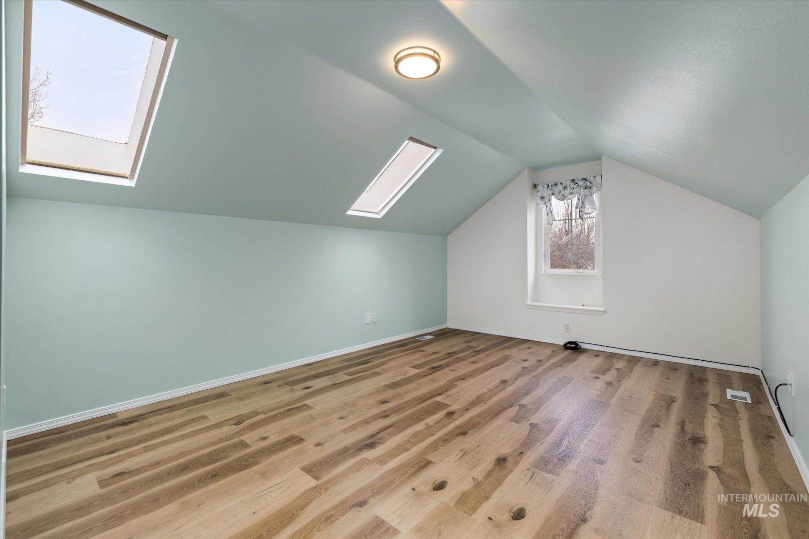 This well-maintained home features vaulted ceilings, a modern coat of warm white interior paint, updated lighting and natural wood look luxury vinyl plank flooring throughout. Set upon a corner lot with multiple east facing windows invite inside a generous layer of natural light. The furnace, AC and water heater have been updated as of 2017. Quaintly situated in Northwest Boise, close to foothills trails and many other amenities, this home is a great place to start, downsize or to invest in a low maintenance home. The layout features a roomy main-level primary suite plus additional bedroom (or office) and additional full bath, along with an oversized upstairs 3rd bedroom or bonus room with skylights. Outside you`ll find a private fully fenced backyard featuring hard surface patio with custom retractable awning offering shade on those warm summer evenings. The 2-car garage features extra room for storage of all of the Boise things to enjoy.