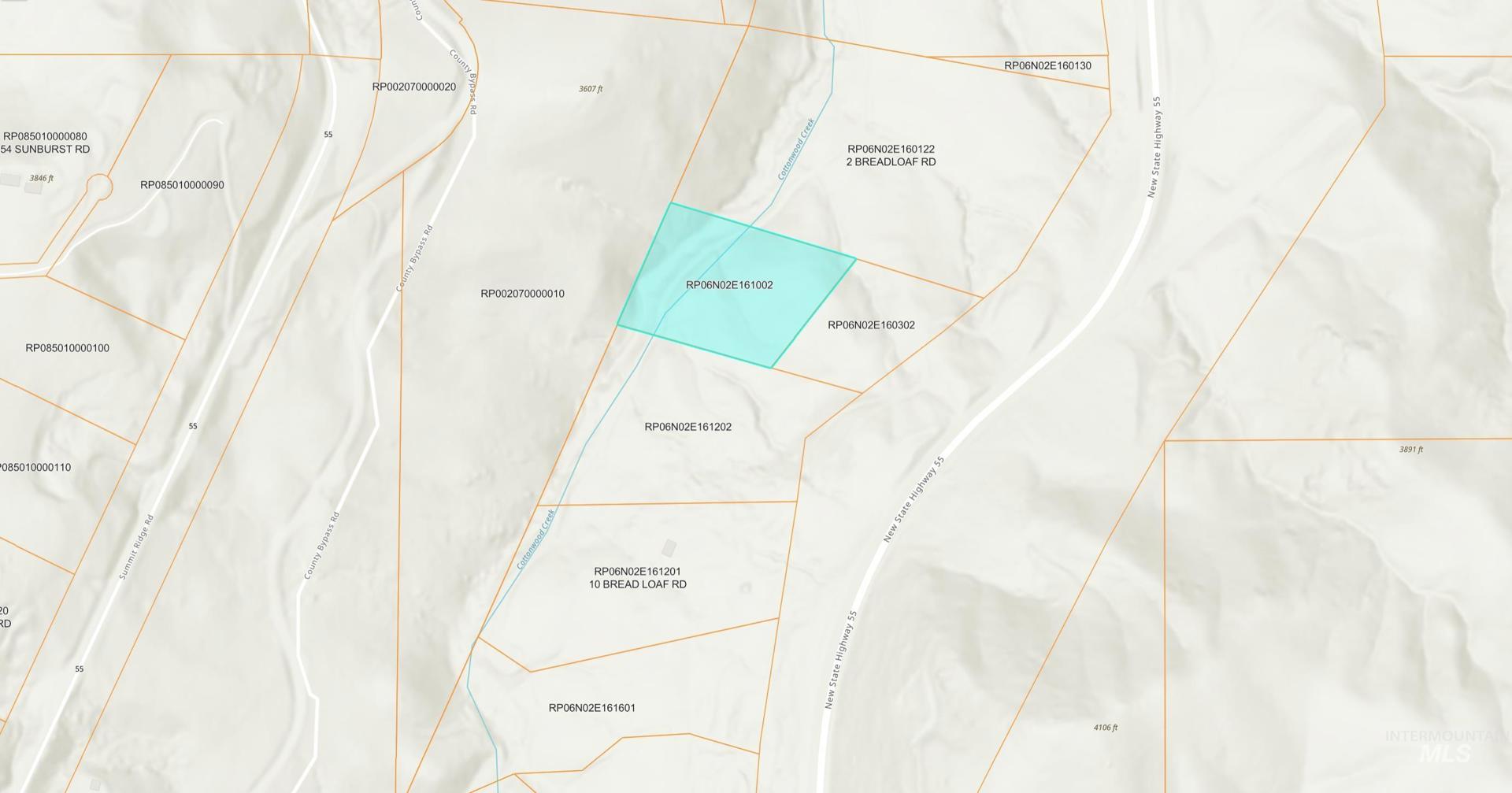 From Eagle intersection of Highways 44 and 55, take ID-55N and continue for 12.6 miles; turn left onto Old Hwy 55-Horseshoe Bnd Hl/Summit Ridge Rd. Drive to Bread Loaf Rd for 3.2 miles. Turn right on County Bypass gravel road for approx. 1/4 mile, then right on Rumsey (private). It dead ends into Breadloaf Road (private), veer right. Approximately 1/4 mile on the left, there is a black rocked driveway on the left and a turn-out to the right; turn left and drive up the driveway until it ends at the dirt building pad.