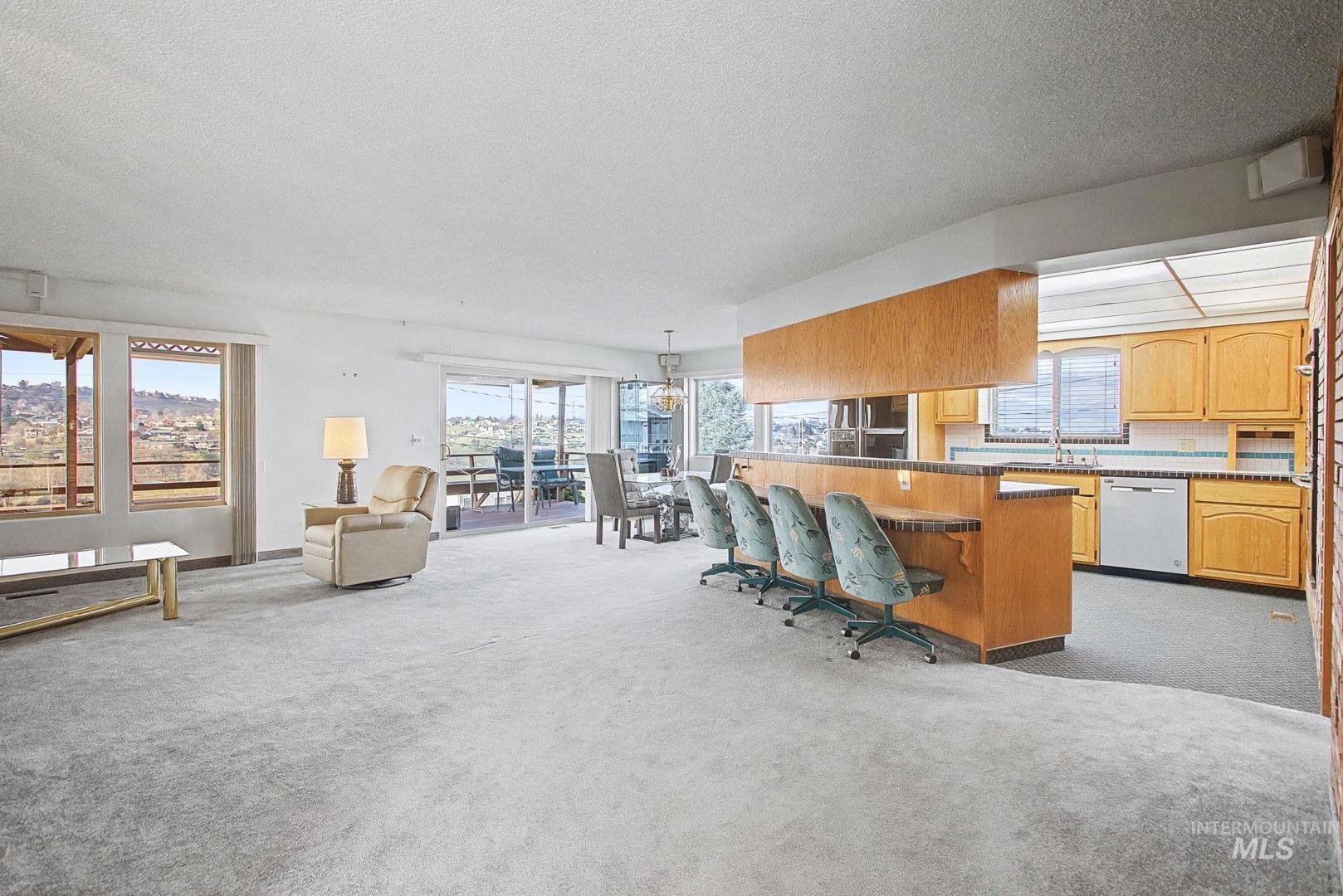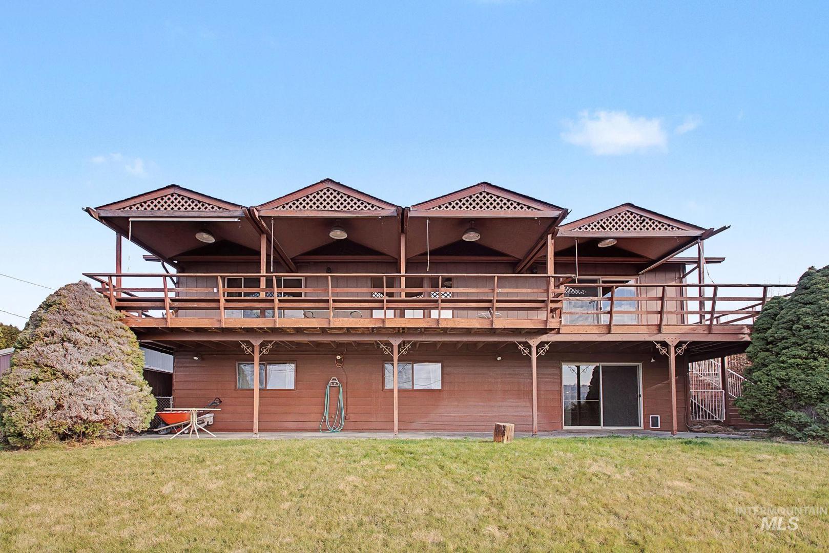 This 4-bedroom, 2.5-bathroom home offers exceptional views and a highly desirable layout with the primary bedroom and laundry conveniently located on the main floor. Step onto the expansive deck and take in stunning panoramic views of the Snake River—perfect for enjoying summer fireworks, the lighted boat parade, or exciting jet boat races from your private deck. Located in the Country Club and just minutes to the golf course, this home blends scenic living with everyday comfort. The lower level features a wet bar, making it ideal for entertaining or relaxing with guests. Large windows fill the home with natural light and showcase the river views. Recent updates include a newer HVAC system and hot water heater, adding efficiency and peace of mind. With its incredible views, thoughtful updates, and inviting indoor and outdoor living spaces, this home offers a standout lifestyle in a sought-after river-view setting.