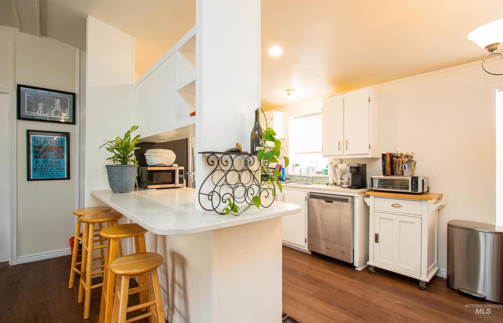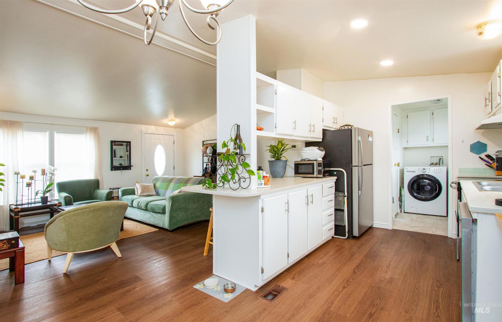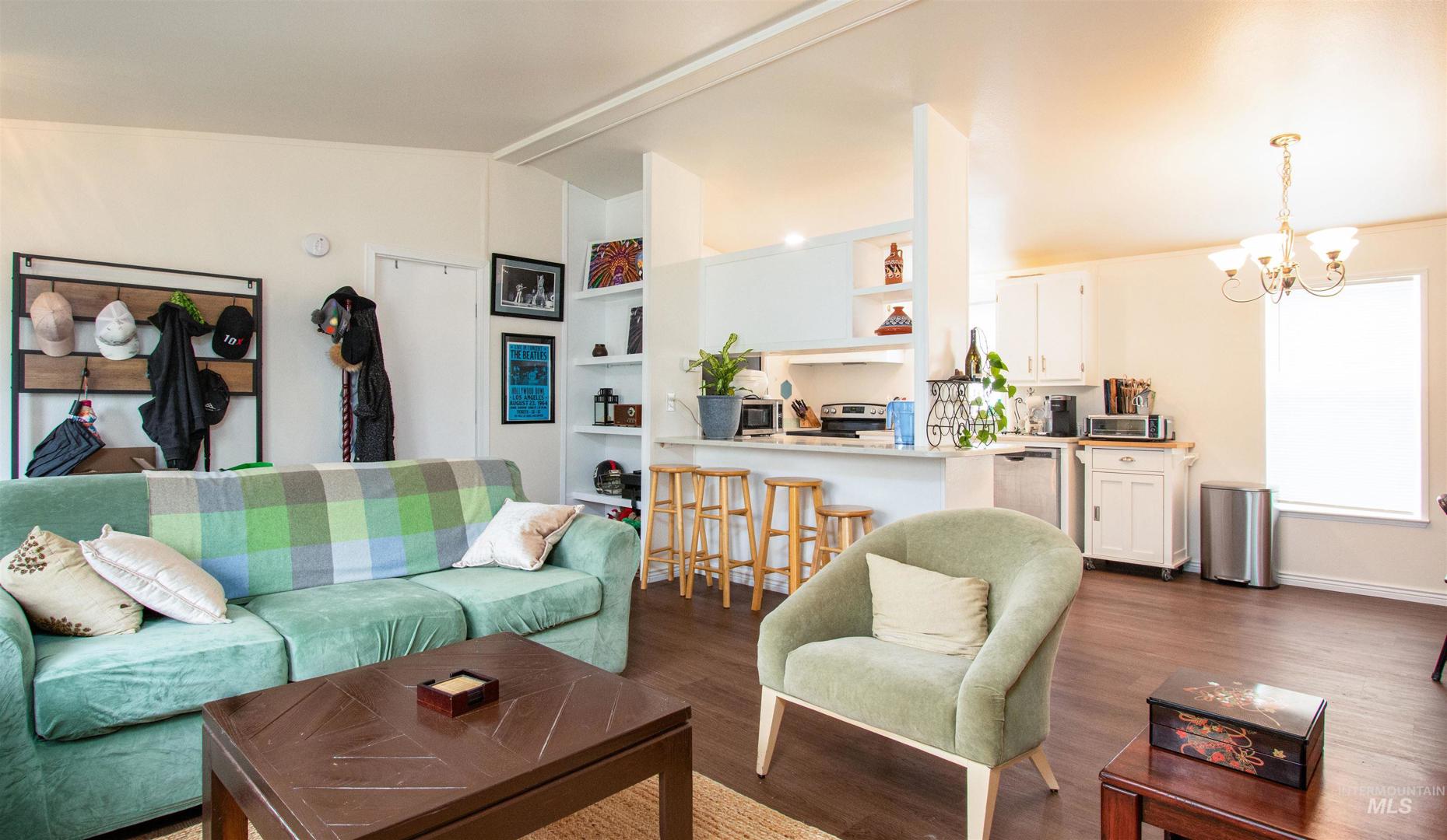 Stylish, Energy-Efficient Home with Modern Upgrades. Beautifully updated home featuring a 2016 two-stage energy-efficient HVAC system, granite countertops, sleek stainless steel appliances—all within an open-concept floor plan designed for modern living. Key Features: Modern kitchen with granite surfaces & stainless appliances within the last 2 years. Spacious private primary ensuite. Energy-efficient two-stage HVAC (installed in 2016) Open and inviting patio, yard with room for gardening. Washer and dryer Negotiable. Community Amenities: Peaceful, stylish development with lake views, walking paths, and a basketball court Easy access to the Boise River, Shakespeare Festival, and other nearby outdoor attractions Close to Micron, the new Kenworth business, Amazon and Winco foods are all easy commutes from here. Relax under the stars from your back patio or deck—away from city noise and congestion Park services; water/sewer $65.00 lot space rent $660 a more affordable option than townhomes or apartment living. Financing options available (OAC) – let`s discuss how this home can be yours!