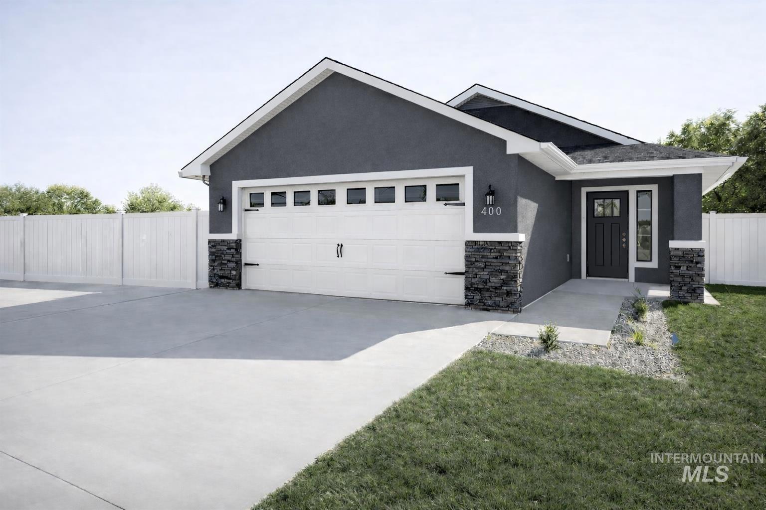 Built with authentic stucco and complemented by cultured stone accents, The Haylee Plan offers a durable, low-maintenance exterior finished with white vinyl fencing and full perimeter gutters. Offering 3 bedrooms and 2 bathrooms, the layout is structured for efficient, practical living with a clear sense of separation between spaces. The split-bedroom floor plan positions the primary suite apart from secondary rooms, creating privacy and everyday functionality. Inside, quartz countertops, custom cabinetry, stainless steel appliances, black fixtures, luxury vinyl plank flooring in main areas, and hand-textured walls and ceilings reflect finishes selected for quality and long-term performance. Located in a 9-home community with no HOA near Indian Creek Plaza, The College of Idaho, Fairview Golf Course, shopping, dining, and I-84. Under construction. Finish selections may be available depending on construction stage and builder approval. Photos similar.