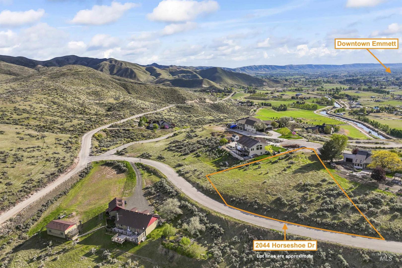 OWNER FINANCE - On almost an acre corner lot, this exceptional building site captures sweeping, unobstructed views across the stunning hillside—a rare opportunity to secure a view property. OWNER CARRY AVAILABLE with just 10% down, making this an outstanding option for buyers seeking flexibility & value. Lot is perfect for a full daylight basement, ideally positioned to maximize panoramic views from every level, creating the perfect setting for your custom hilltop retreat. Located within a prestigious subdivision of upscale homes, the property offers a peaceful, refined atmosphere while still providing the freedom to bring your own builder and design a residence tailored to your vision. Essential infrastructure is in place with underground power & community water available—no costly well. Outdoor recreation is just minutes away at Black Canyon Recreation Dam, Montour Wildlife Management Area, and the Payette River, where fishing, kayaking, boating, & floating await. The landscape is rich with natural beauty