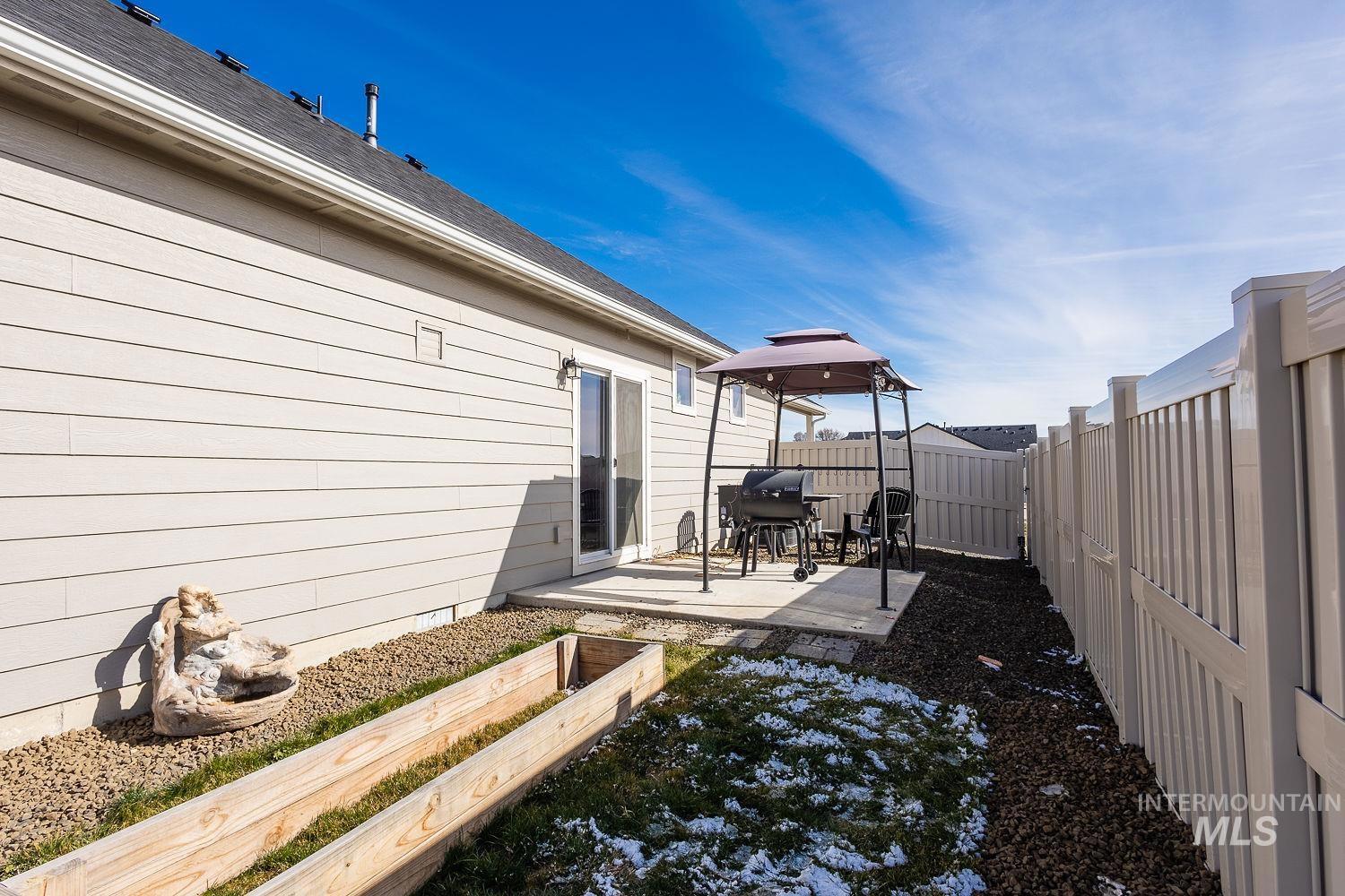 Skip the wait and extra expense of finishing a new build. This well-maintained single-level home offers 1,201 square feet of thoughtfully designed living space with upgrades already complete. The open layout connects the main living area, dining space, and kitchen for easy everyday living and entertaining. The kitchen features generous counter space and abundant cabinetry. The private primary suite includes a dual-sink vanity and spacious walk-in closet. Two additional bedrooms offer flexibility for guests, hobbies, or a home office. Unlike current new construction, this property includes full landscaping front and back, full fencing with gates on both sides, and dedicated trailer parking. An upgraded 8’ insulated garage door provides added clearance and energy efficiency. An 8x8 storage shed offers valuable extra storage space. All the work is done — move in and enjoy from day one.