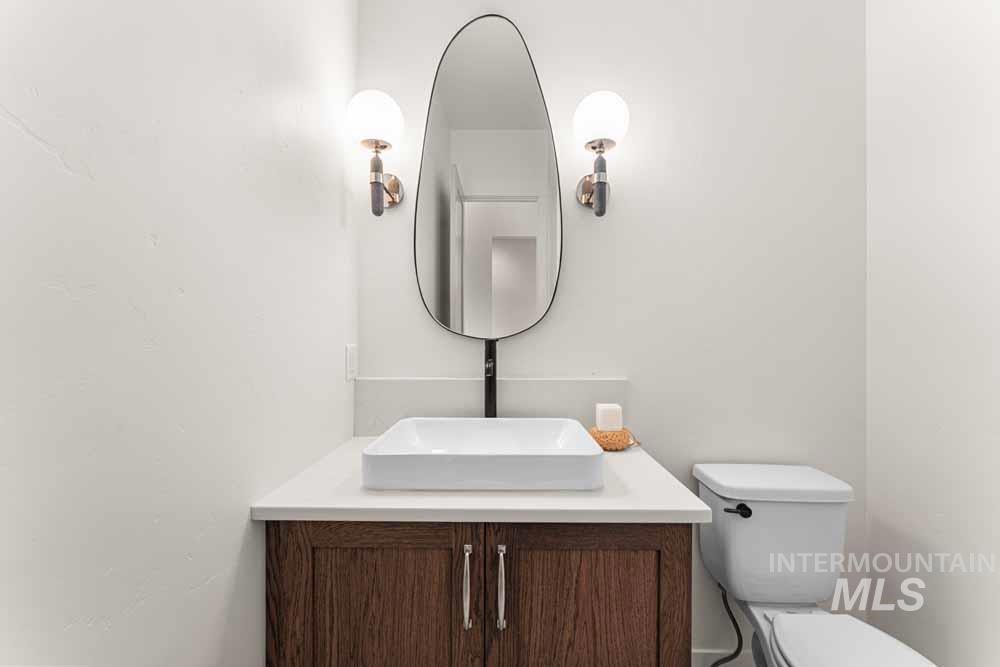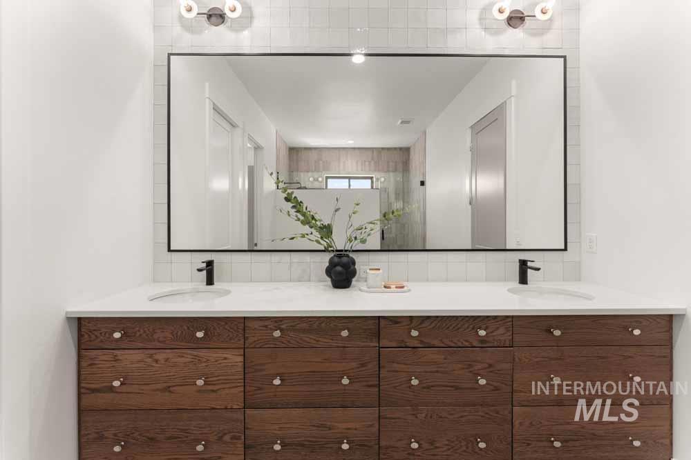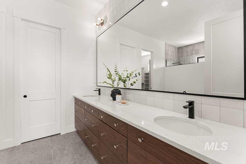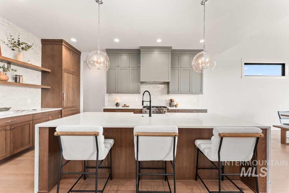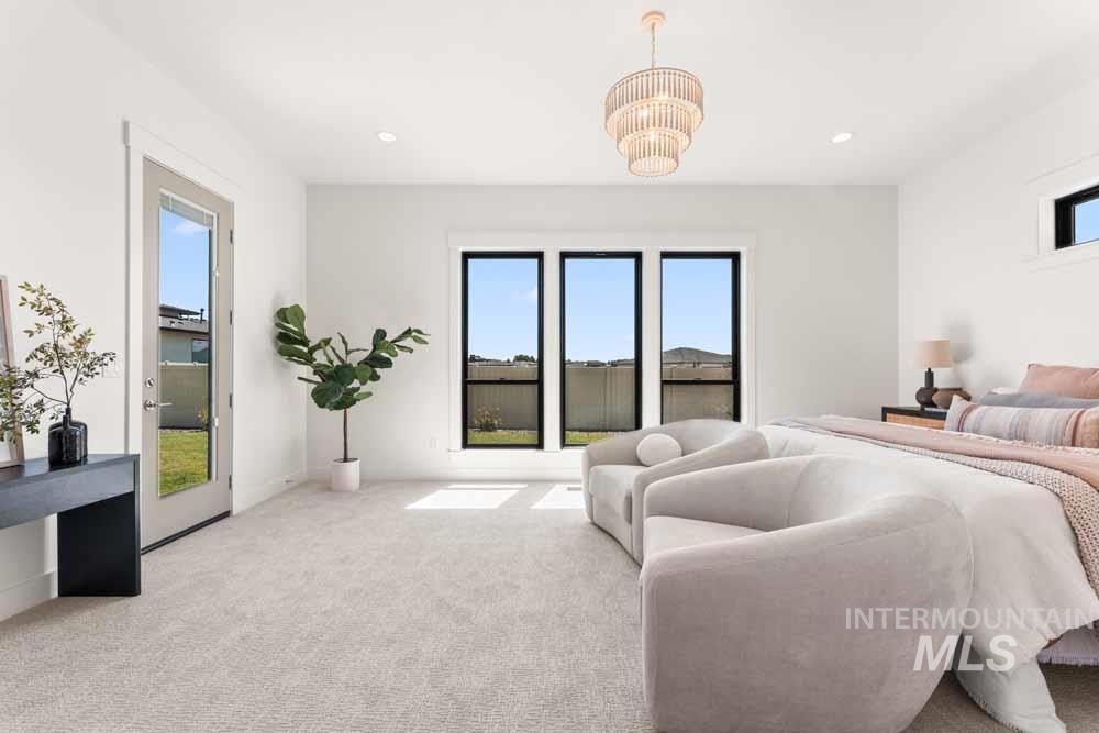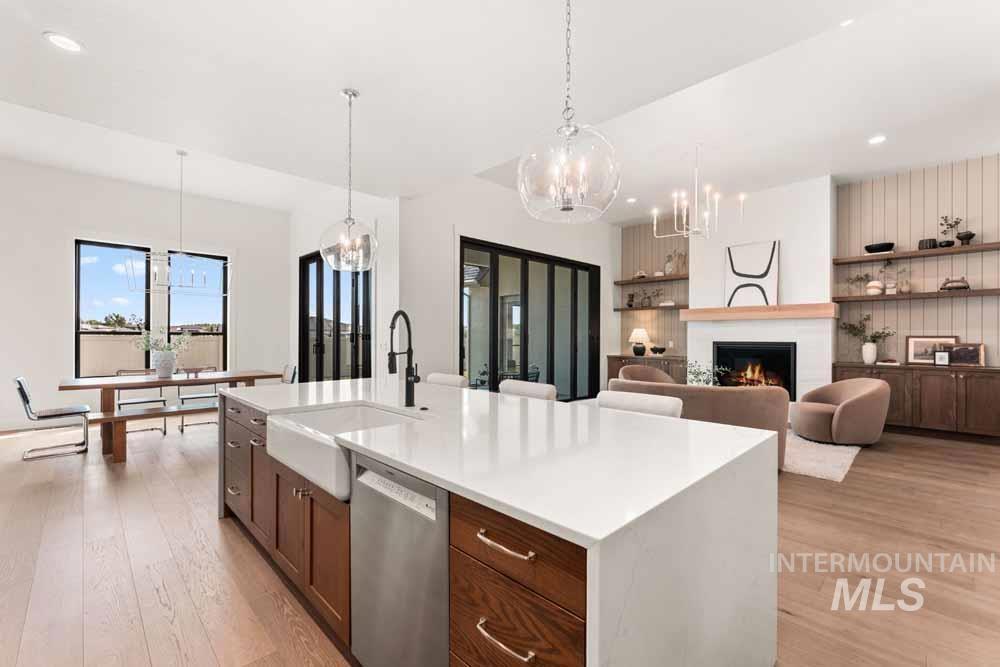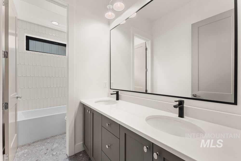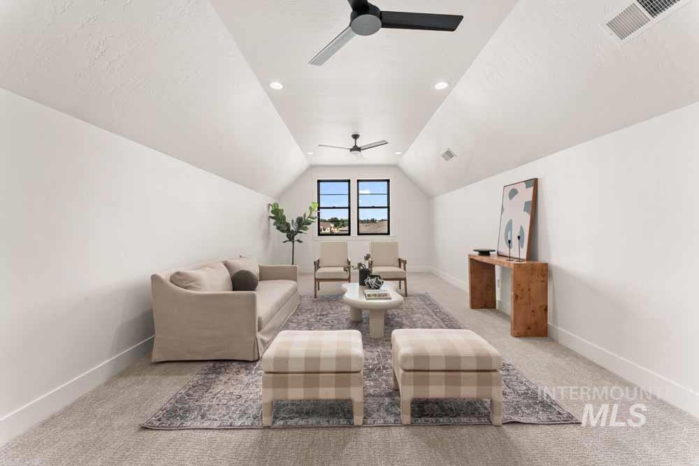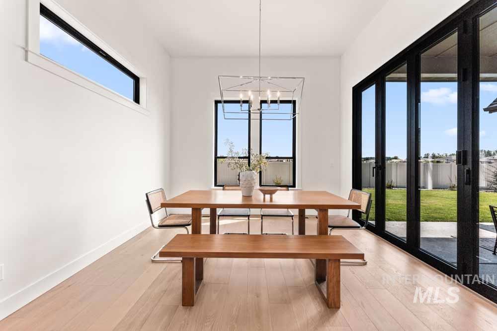 This beautiful Iron Oak Homes home offers comfortable single-level living, plus a bonus retreat upstairs for added space and flexibility! Enjoy a spacious open layout with soaring ceilings, Andersen windows, elegant finishes, and designer lighting. The great room showcases a floor-to-ceiling fireplace and Steelsen Telescopic doors to a covered patio. The gourmet kitchen boasts designer stainless appliances, ceiling-height two-tone cabinetry, and an oversized prep island. The luxe primary suite offers patio access, a spa-like bath with frameless glass shower, freestanding tub, and dramatic walk-in closet. A flexible 4th bedroom works perfectly as a home office or guest retreat. Upstairs features a large bonus room with its own bathroom. Additional highlights include a garage with oversized boat bay and 13-ft ceilings. Located in Centerra with access to a community pool, walking paths, and close proximity to downtown Eagle!