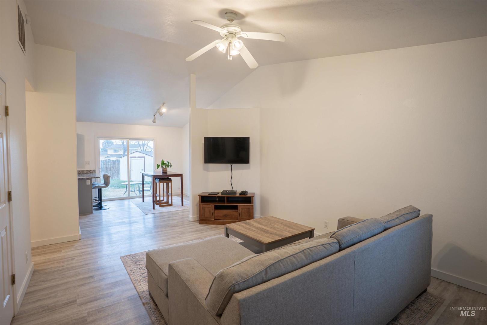 Nestled on a quiet street in the desirable Magic Valley Ranch neighborhood, this 3-bedroom, 2-bathroom home offers comfort, convenience, and charm. Step inside to find vaulted ceilings that enhance the spacious feel of the living room, and an inviting kitchen with beautiful oak cabinets, new granite counter tops, and plenty of storage. The home features a split-bedroom floor plan for added privacy. The primary suite includes a private bathroom and a walk-in closet. Outside, enjoy the fully fenced backyard, perfect for entertaining or relaxing on the concrete patio. Low-maintenance siding ensures easy upkeep, giving you more time to enjoy the peaceful surroundings. This is the perfect opportunity to own a wonderful home in a quiet, established neighborhood just minutes from shopping, parks, and schools.