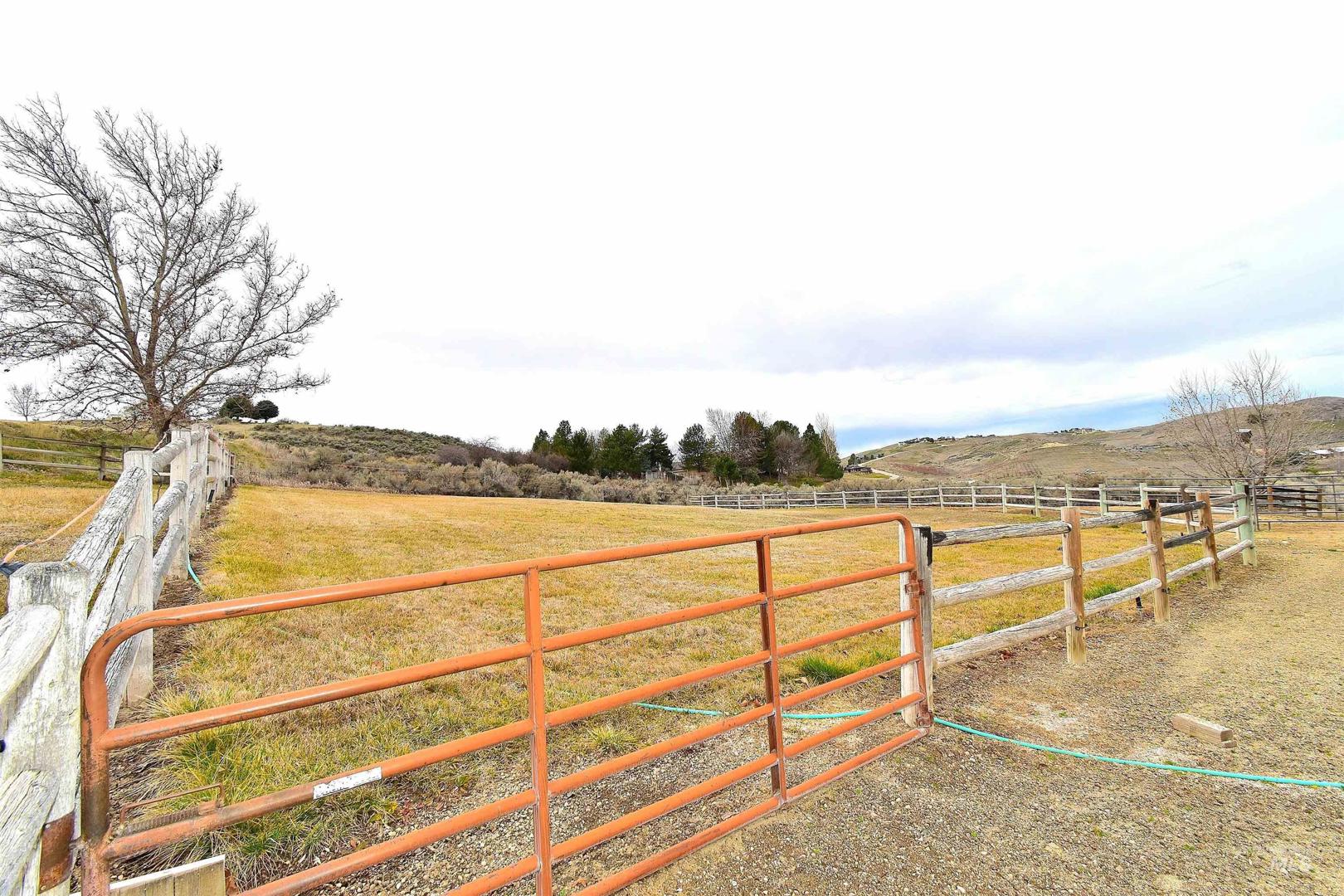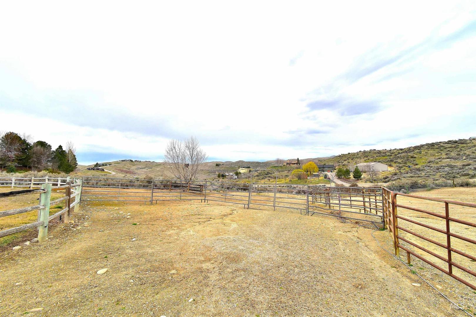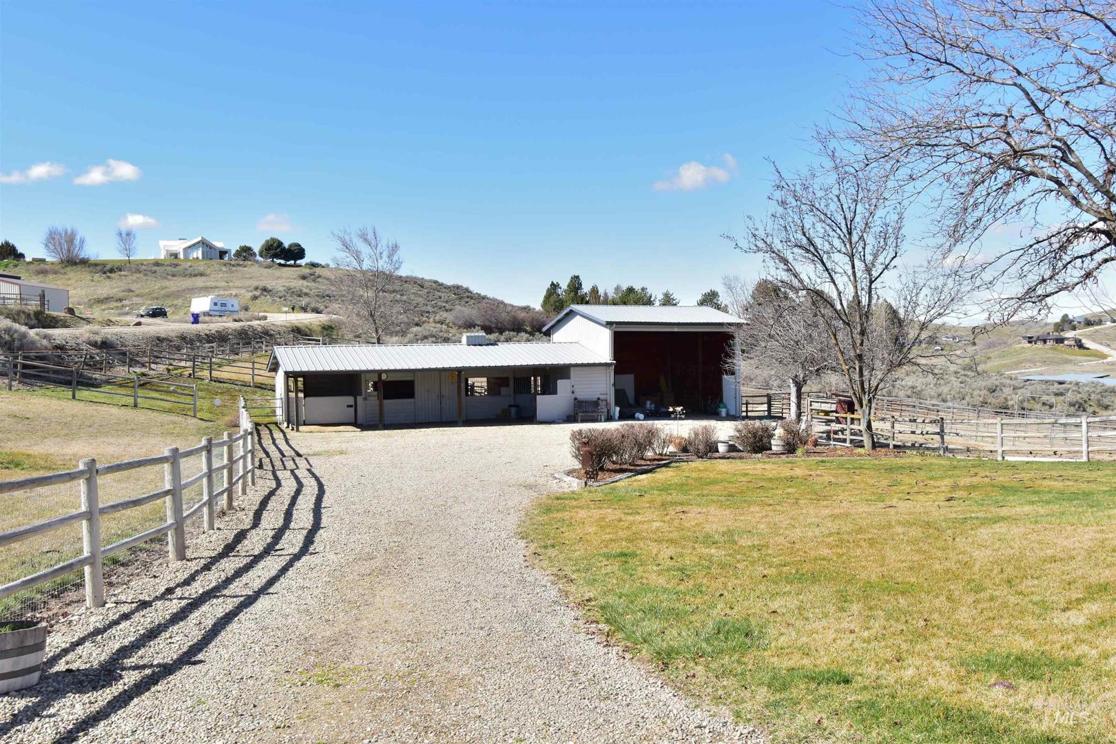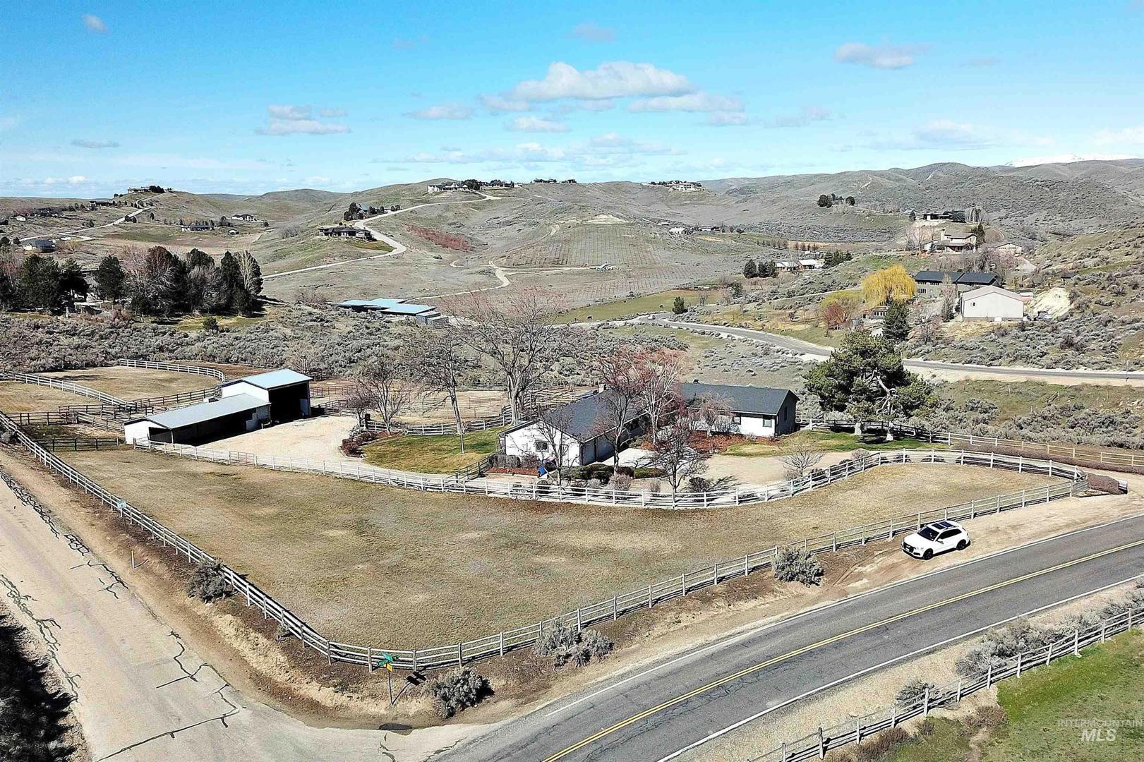 Single-level living in the coveted foothills of Eagle — offered for the very first time by its original owner. This thoughtfully designed 5.6-acre horse property captures sweeping foothill views while delivering privacy, functionality, and convenience just minutes from town. Designed with the equestrian in mind, the property features multiple fenced pastures, a well-appointed barn with automatic stall waterers, dedicated hay storage, tack room, and ample trailer and RV parking. Water rights and an efficient layout make this acreage both practical and easy to maintain. The home and grounds have been meticulously cared for, with mature landscaping that enhances both beauty and seclusion. A whole-house natural gas generator ensures uninterrupted power to the entire property — providing peace of mind in every season. With no HOA and only minimal CCRs, this property offers rare flexibility in a premier foothills setting. Ideal for multigenerational living, it blends the serenity of country life with close proximity to downtown Eagle’s amenities. Located in the highly desirable Stillwell Estates area, surrounded by vineyards and open space, the property is rich with wildlife — deer, turkey, quail, and more roam the rolling foothills. This is a rare opportunity to own an affordable acreage in one of Eagle’s most exclusive and private foothill communities.