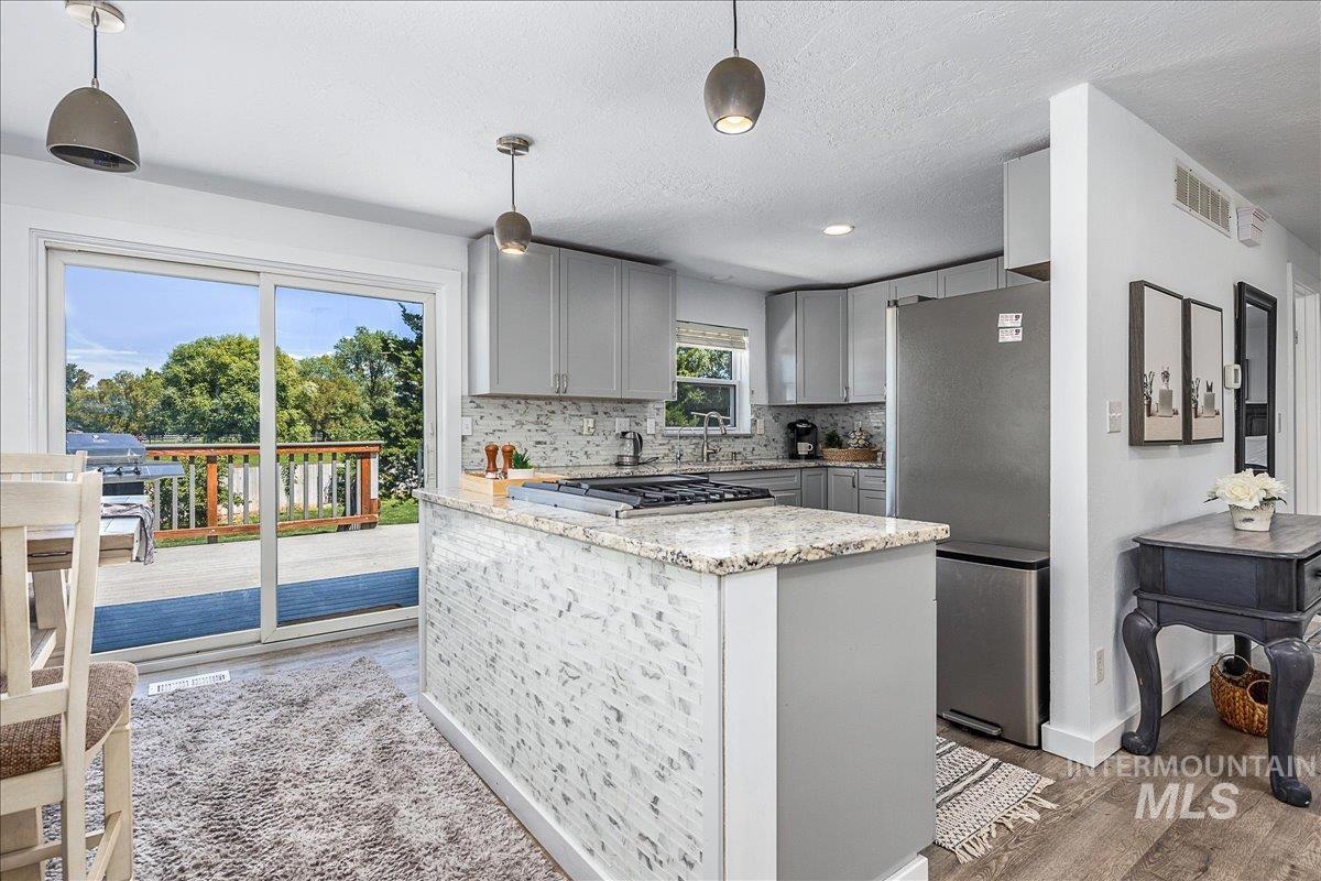 Experience the rare combination of space, freedom, and location with this beautifully renovated South Boise property set on nearly 2 acres of fully fenced land with no HOA. Opportunities like this are becoming increasingly difficult to find, offering the peace and privacy of country living while remaining just minutes from downtown Boise, the airport, and everyday conveniences like Costco. The property invites a true Idaho lifestyle with mature fruit trees including cherry, peach, apricot, and pear, a large chicken coop, and plenty of room for animals, gardens, or future projects. Inside, the home has been thoughtfully remodeled with fresh finishes, an open concept kitchen featuring granite countertops and gas stainless appliances, and bright living spaces filled with natural light from beautiful bay windows. The spacious layout includes two inviting living areas, a cozy fireplace, and a primary suite with a large walk in closet. Outside you will find a back deck perfect for entertaining, an underground barbecue area, fire pit, hay shop, and numerous functional upgrades including a new well pump, 220V in the garage, and a nine zone sprinkler system. Properties that offer this level of acreage, privacy, and proximity to the city are exceptionally rare. This is the Idaho lifestyle so many people move here to find.