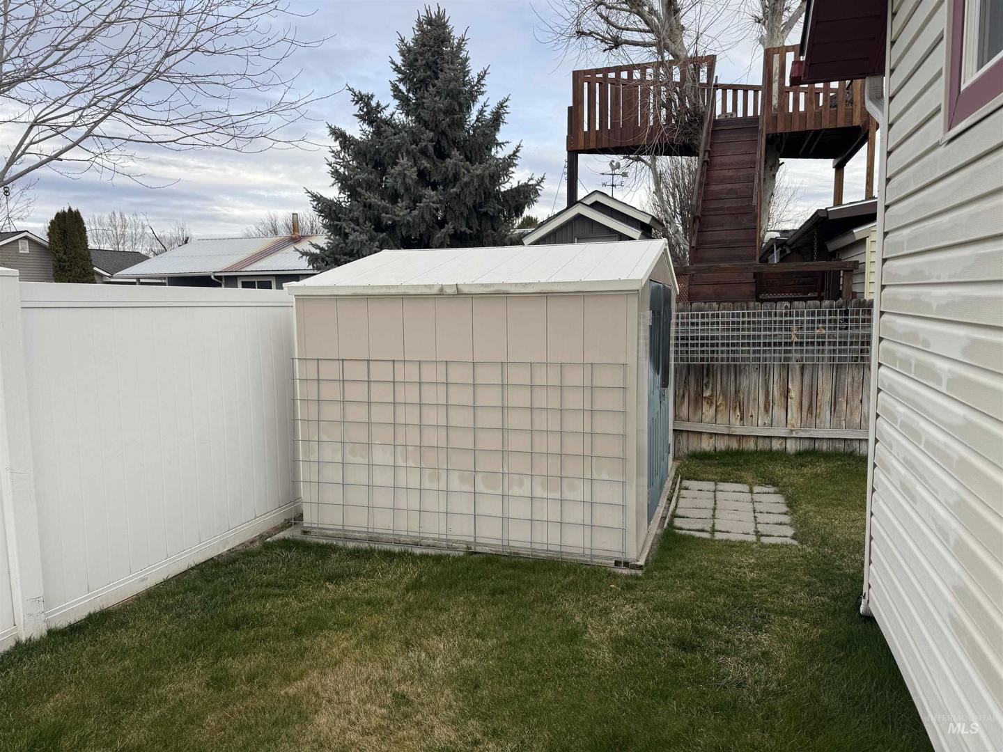 There are so many good things to say about his 3 bedroom, 2 bathroom, single level home sitting on an oversized corner lot. Starting with brand new architectural style shingles. Oak kitchen cabinets in the open kitchen. Some new carpet. The dining are with access to the outside deck that now has privacy fence around it. Master bath with double vanities and jetted tub, master suite with walk-in-closet with access door to the deck. Fully vinyl fenced back yard with automatic sprinklers. Attached oversized deep 2 car garage with man door to back yard. Nice storage shed. Don`t wait to see this home.