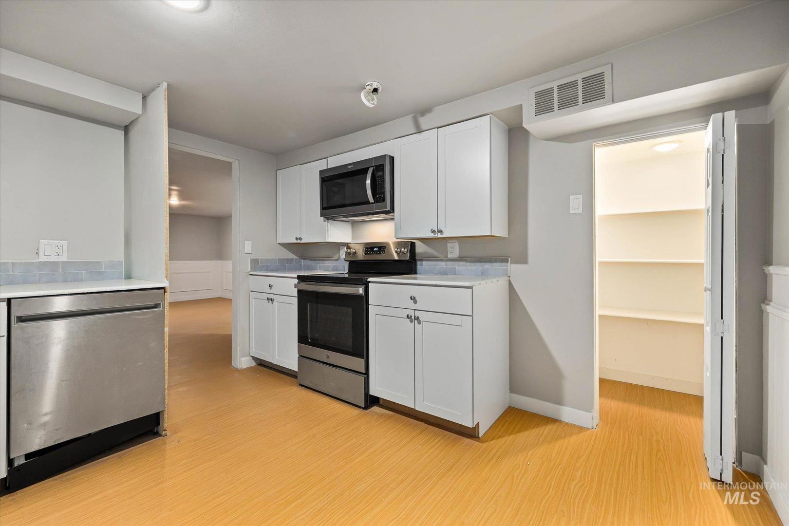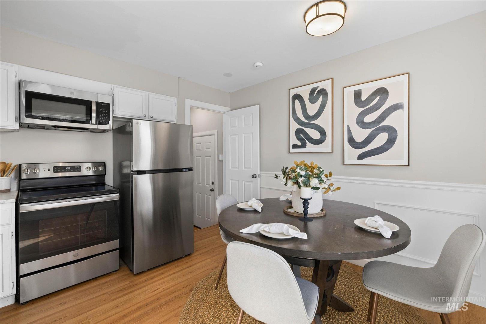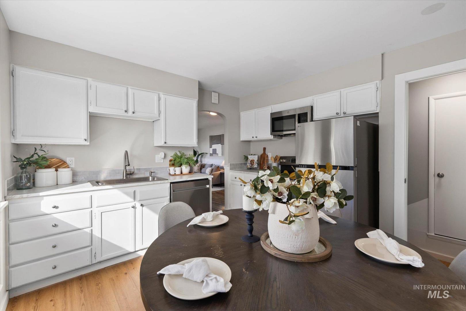 Charming updated brick home that`s move in ready. Flexible single family or duplex layout makes this ideal for owner-occupant or an investor. Located steps from the local hospital and downtown this home offers a versatile floorplan with 2 bedrooms and a full bath upstairs, plus 1 bedroom, full bath and a second kitchen on the lower level. Modern finishes, bright spaces, and thoughtful updates throughout. Fully refreshed kitchens on both levels featuring white cabinets and updated appliances. Both remodeled bathrooms with new vanities and contemporary finishes. Don`t miss the newer interior & exterior paint, wood floors and generous living areas. Large backyard and covered carport for off-street parking. Perfect as a single-family home with extra living space or as a duplex rental.