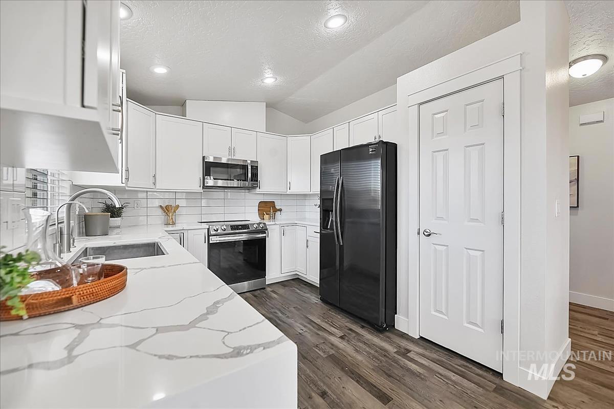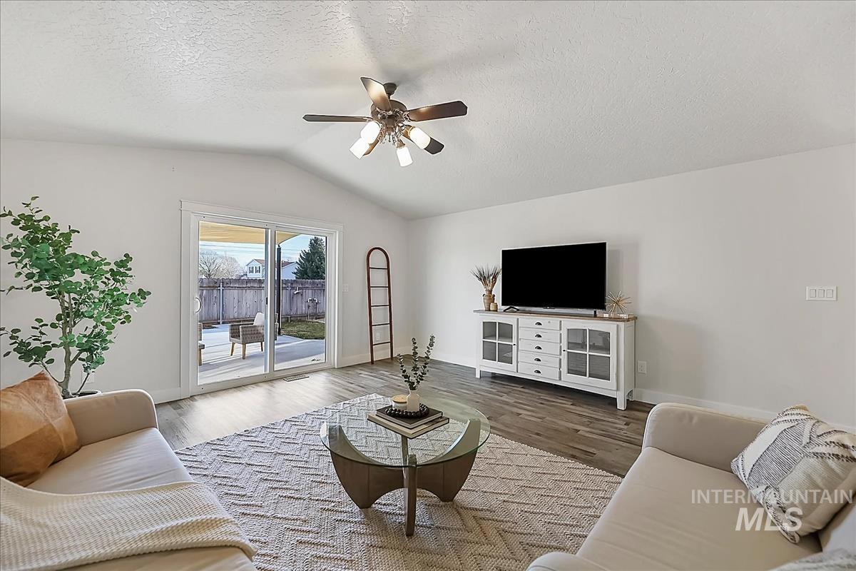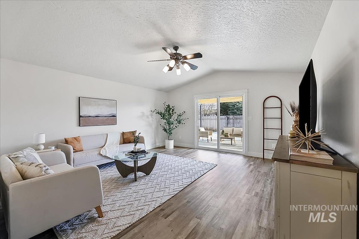 Welcome to this beautifully renovated 3 bedroom, 2 bathroom home offering modern finishes, thoughtful upgrades, and a backyard designed for everyday enjoyment. Inside, the home features quartz countertops, updated cabinetry, newer appliances, and stylish finishes throughout. The bathrooms showcase quality tile work, including a beautifully tiled primary shower, while updated flooring and trim create a clean, cohesive feel from room to room. Step outside to an inviting outdoor space highlighted by a large concrete patio and walkway, perfect for relaxing or entertaining. A dedicated fire pit area adds to the charm, creating a comfortable setting for gatherings and quiet evenings. The yard also features mature landscaping with a variety of fruit trees including apple, apricot, plum, and peach, along with raspberries and black currants. Situated on a spacious corner lot, the property offers additional flexibility with RV parking and a storage shed for extra space. Combining tasteful renovations, functional living areas, and a welcoming outdoor setting, this move-in ready home is a standout opportunity in Nampa.