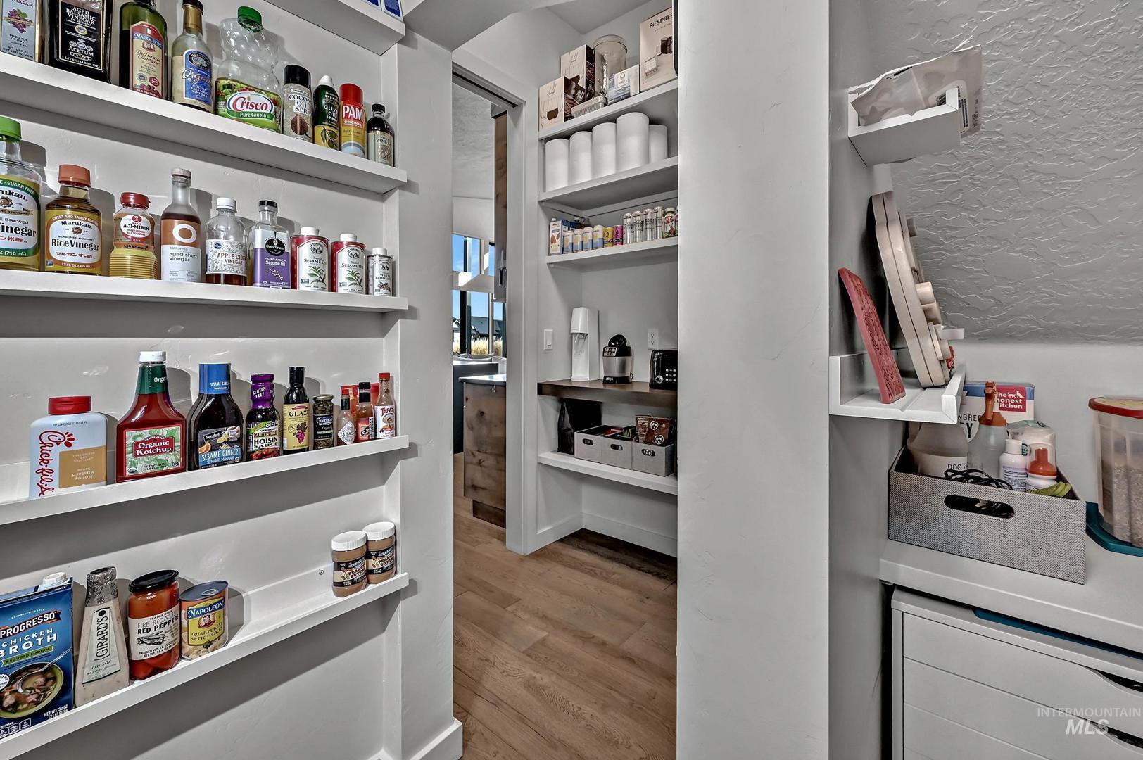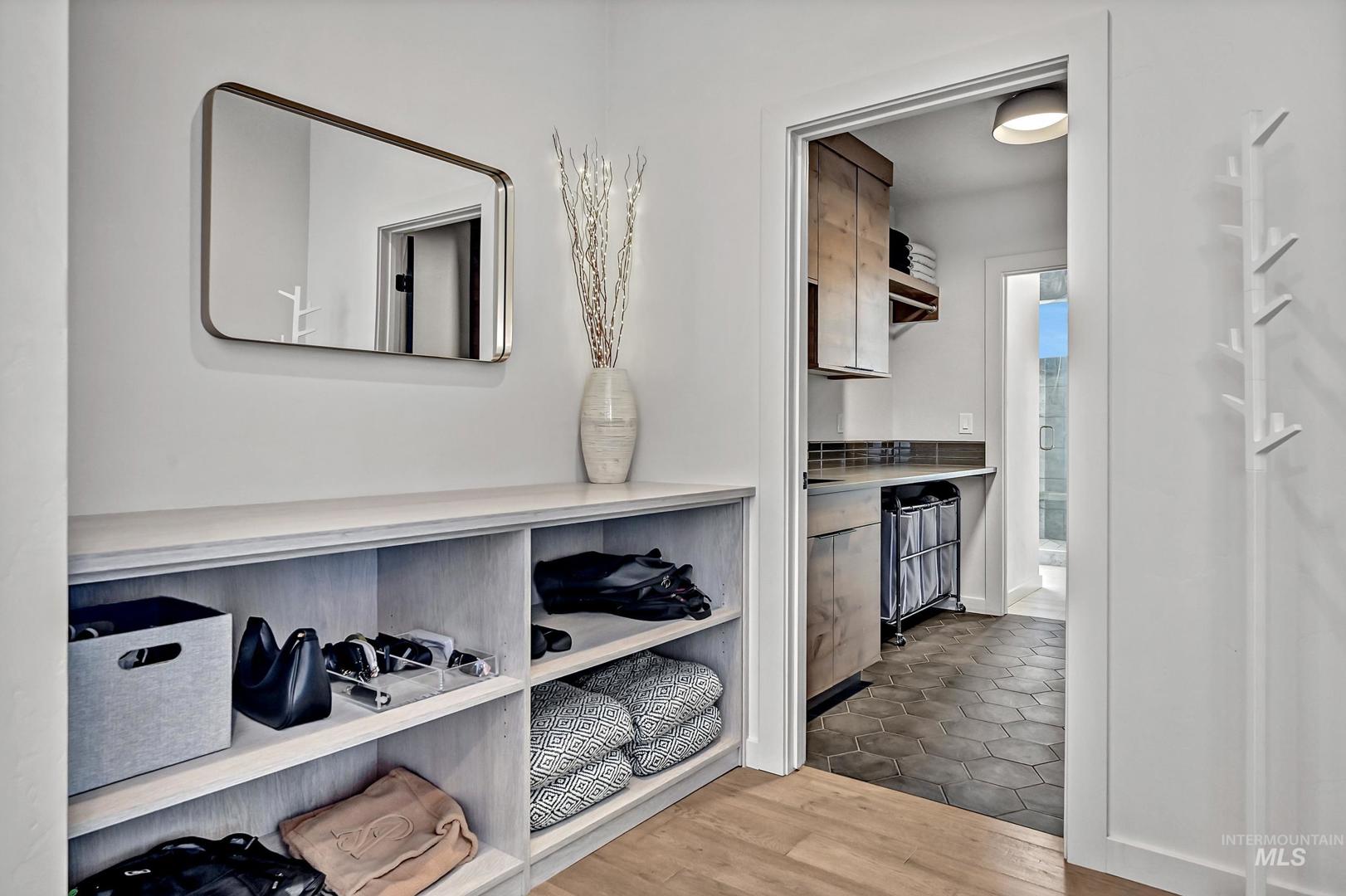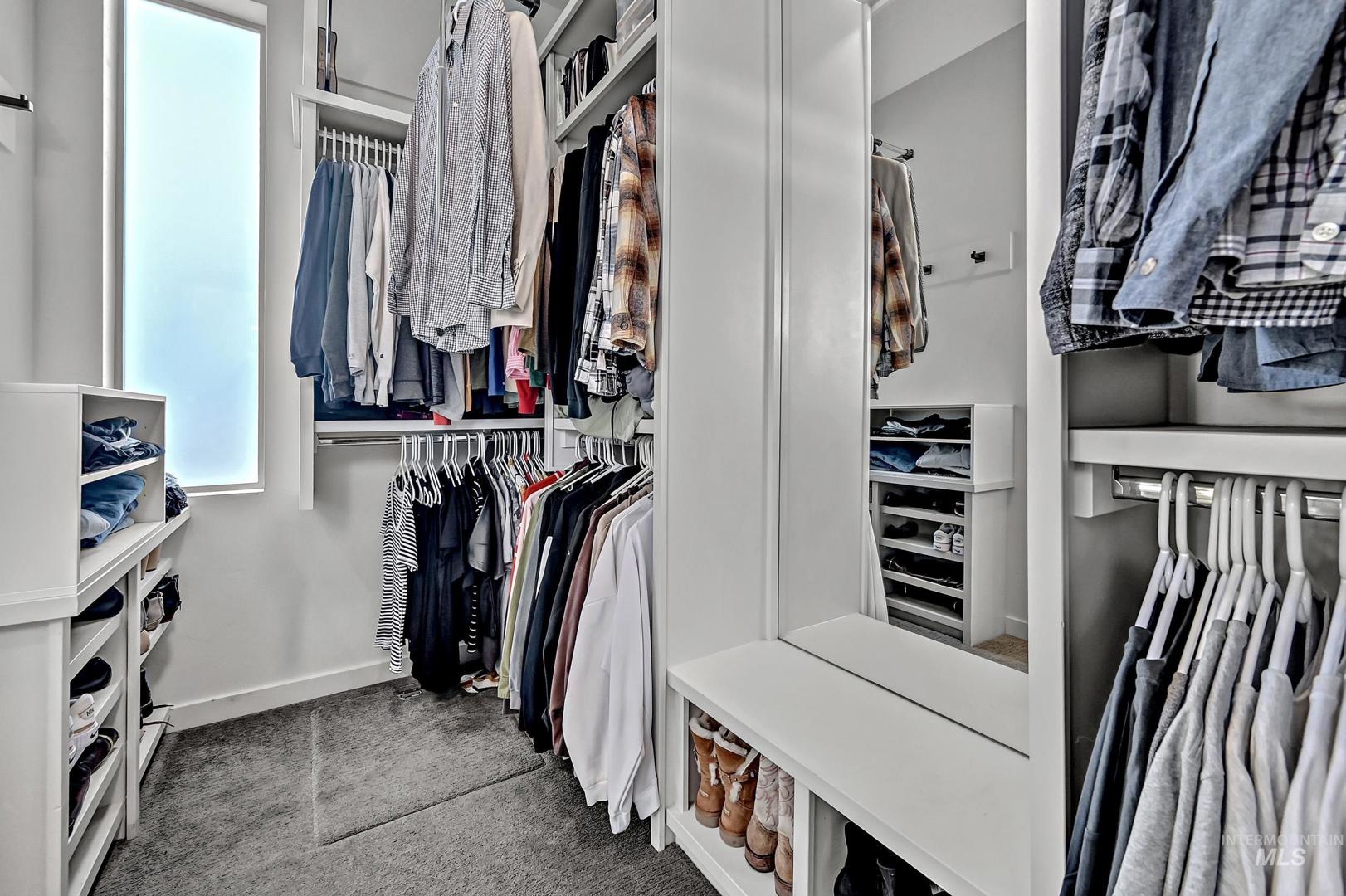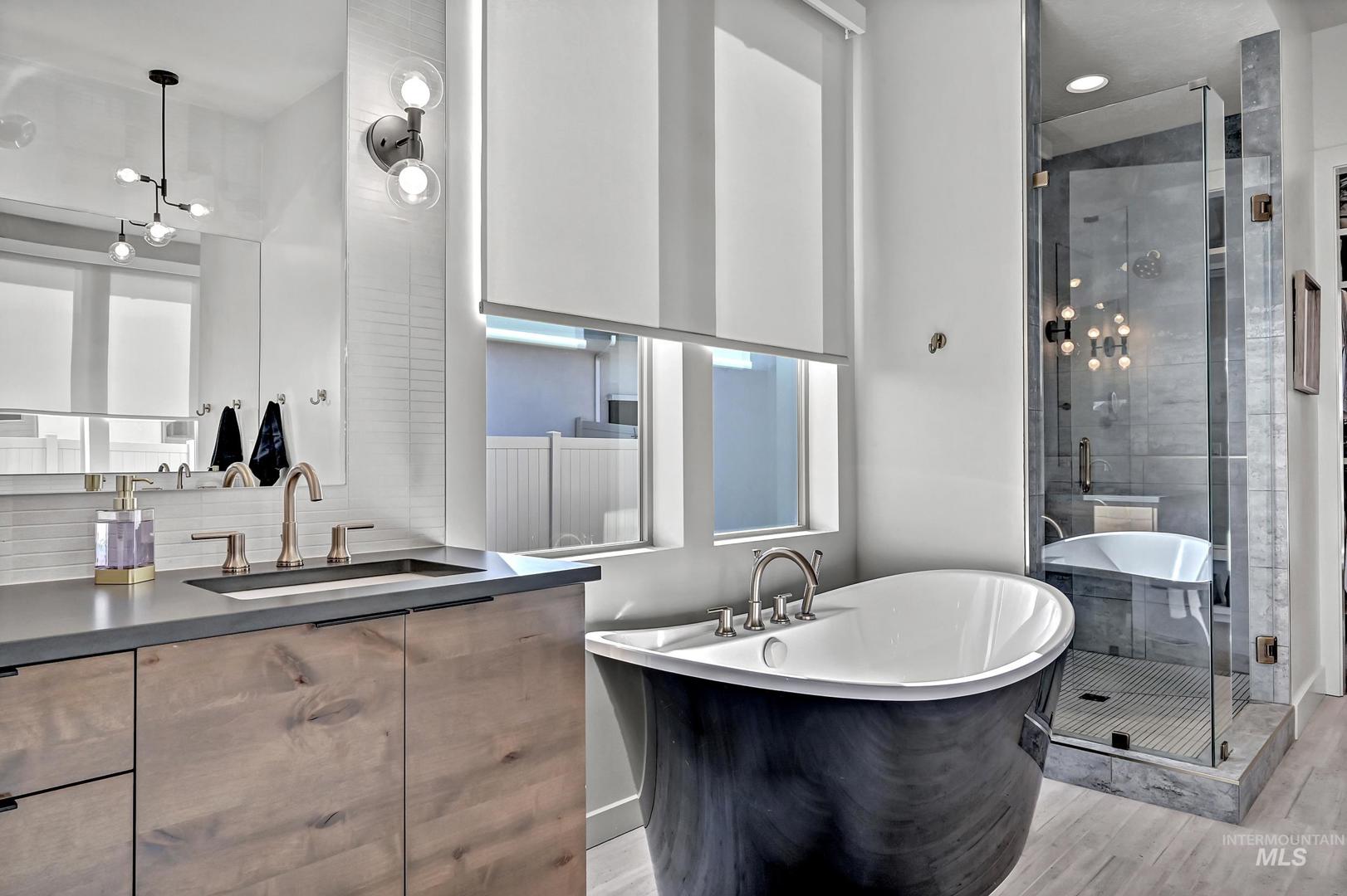 Striking architectural design defines this refined modern luxury home in Movado Estates, one of Meridian’s most desirable communities. The stunning main-level primary suite offers a private retreat featuring a spa-inspired bath with a freestanding soaking tub, walk-in shower, dual vanities, and a spacious walk-in closet. An adjoining laundry room adds everyday convenience. A second bedroom or office and full bath on the main level provide exceptional flexibility for guests or remote work. Designed for both daily living and entertaining, the chef-inspired kitchen showcases a large quartz island, premium cabinetry, high-end appliances, and a butler’s pantry. The open-concept great room features soaring 18-foot ceilings, expansive windows that flood the home with natural light, and a dramatic feature-wall gas fireplace. Enjoy seamless indoor-outdoor living with an expansive covered patio overlooking Five Mile Creek and captivating mountain views—perfect for relaxing or hosting gatherings. The upper level offers a spacious second great room, two additional bedrooms, a full bath, and versatile multi-use spaces—an ideal retreat for the younger generation or extended living. Additional highlights include abundant storage throughout, an oversized three-car garage, and the exciting potential for a future rooftop balcony to take full advantage of the surrounding views.