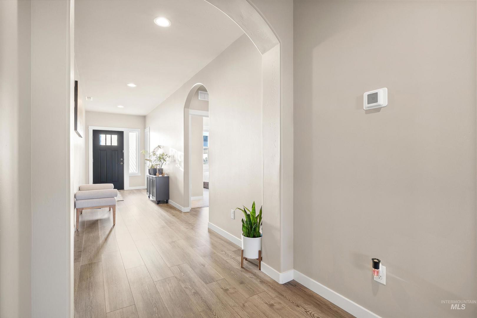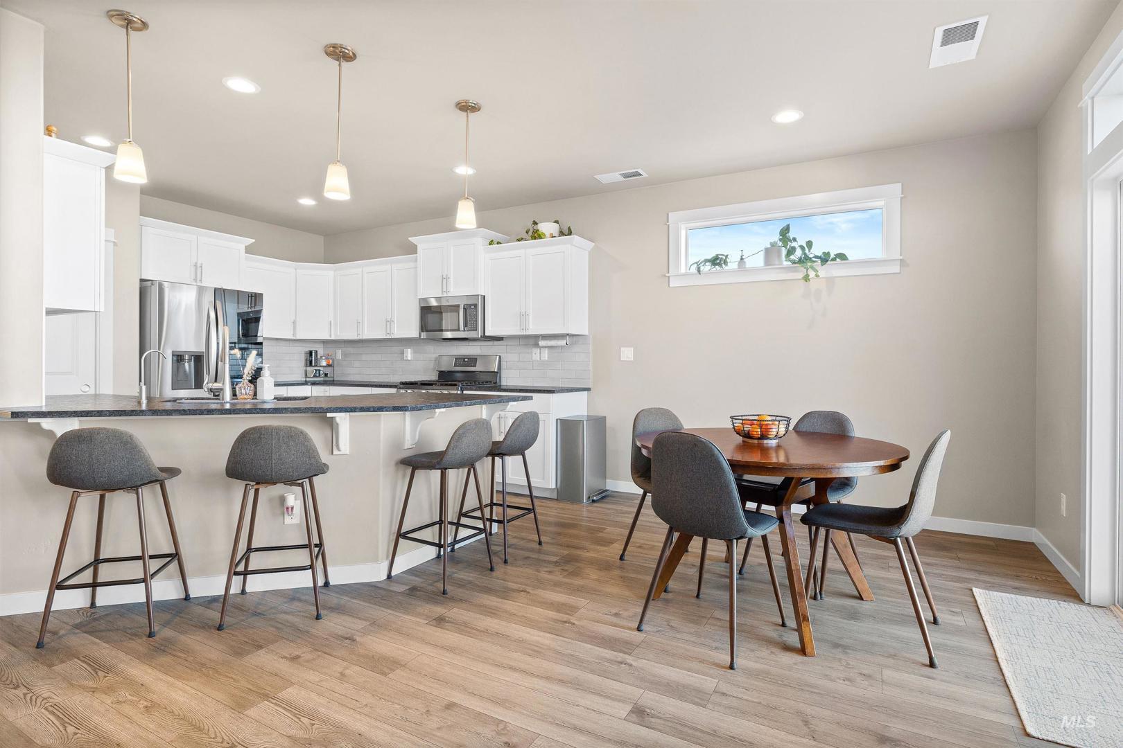 Welcome home to this thoughtfully designed 2023 residence showcasing a 3-bedroom, 2-bath split layout ideal for both privacy and connection. A charming foyer sets the tone as you enter the spacious living area, perfectly paired with a well-appointed kitchen featuring granite countertops and abundant cabinetry. The primary suite offers a peaceful retreat with a walk-in closet and double sinks. Outside, the fully fenced yard provides room to play, garden, or simply enjoy the picturesque Kimberly views that make this location so special.