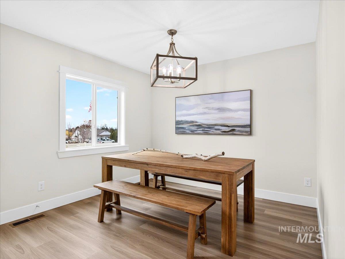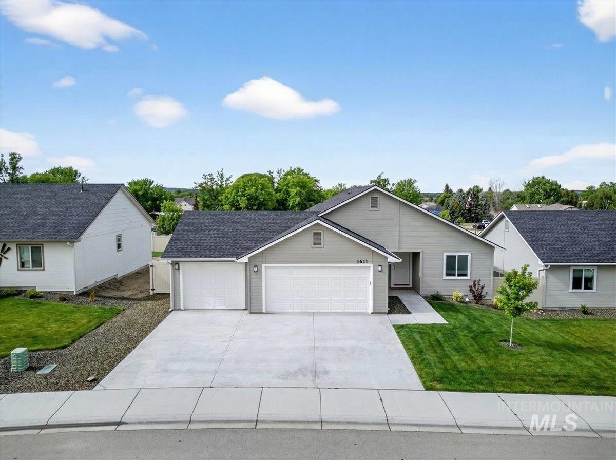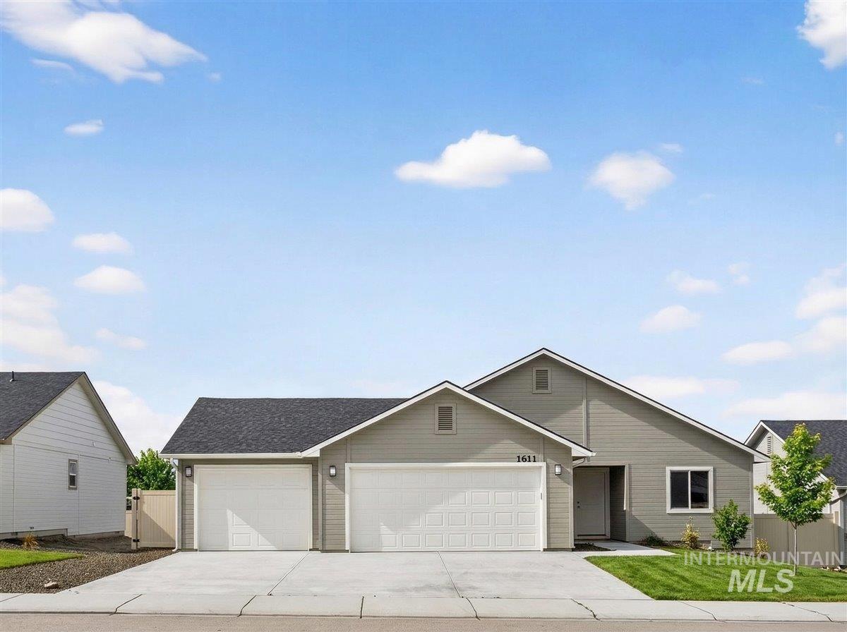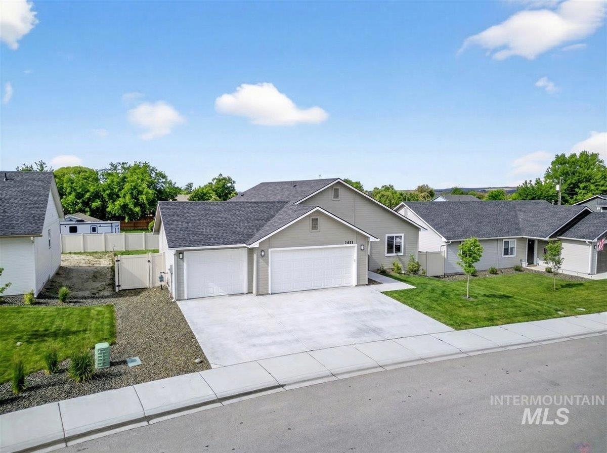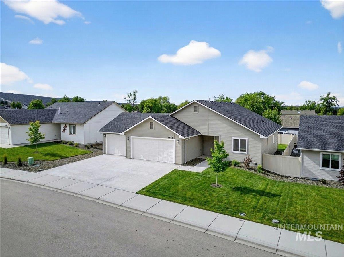 Offering 2.99% interest rate! This beautifully finished Legacy Heights home in Emmett, Idaho features 3 bedrooms, 2 bathrooms, 1,492 sq. ft. of thoughtfully designed living space, a 3-car garage, and a fully landscaped yard. Enjoy stunning views of the surrounding mountains while experiencing the perfect blend of contemporary style and everyday comfort. The open-concept layout features durable LVP flooring throughout the main living areas and bright windows that fill the home with natural light. The kitchen is designed for both functionality and style, featuring beautiful granite countertops, a center island with breakfast bar, and ample cabinetry for storage. The spacious primary suite includes dual vanities, a large walk-in closet with plenty of room for all your shoes, and a well-appointed bathroom. Love having elbow room? This spacious lot provides plenty of space for outdoor entertaining, gardening, and enjoying the sunshine. This home offers peaceful small-town living in Emmett while still being within convenient distance to Boise, shopping, dining, and outdoor recreation.