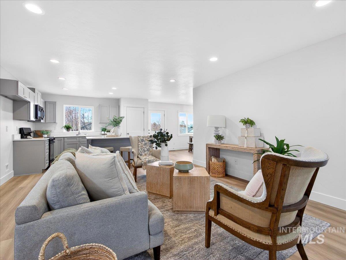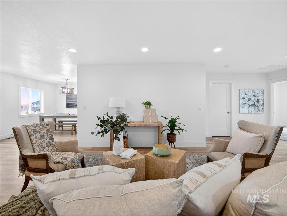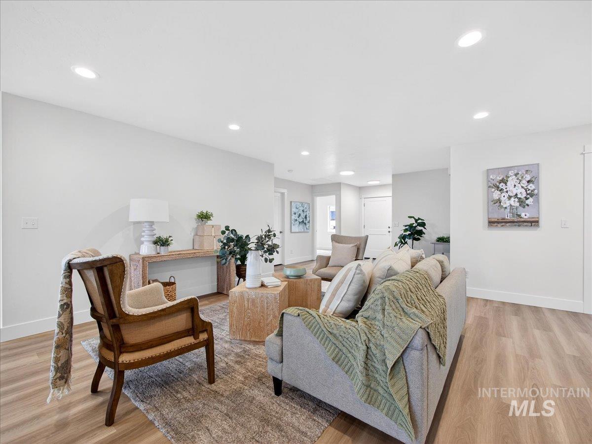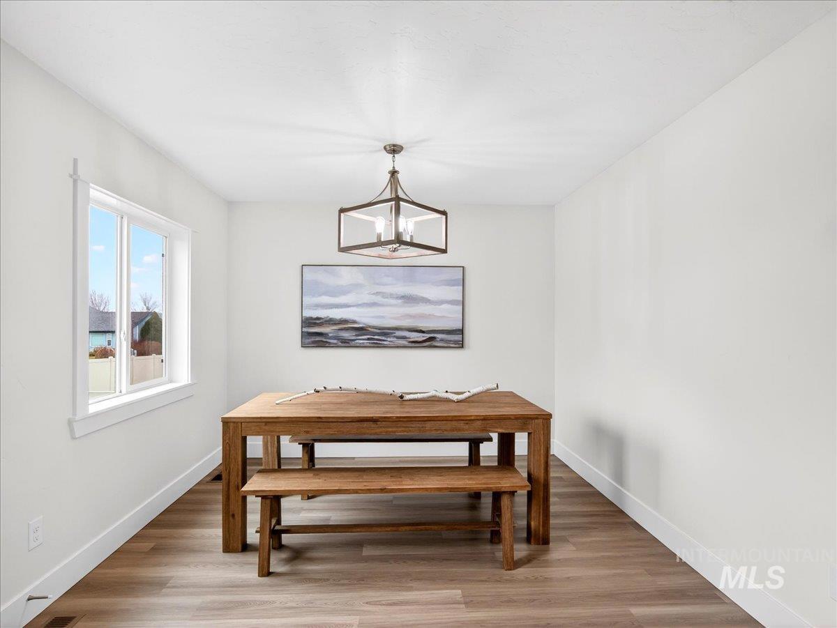Offering 2.99% interest rate! This beautifully finished Legacy Heights home in Emmett, Idaho features 3 bedrooms, 2 bathrooms, 1,492 sq. ft. of thoughtfully designed living space, a 3-car garage, and a fully landscaped yard. Enjoy stunning views of the surrounding mountains while experiencing the perfect blend of contemporary style and everyday comfort. The open-concept layout features durable LVP flooring throughout the main living areas and bright windows that fill the home with natural light. The kitchen is designed for both functionality and style, featuring beautiful granite countertops, a center island with breakfast bar, and ample cabinetry for storage. The spacious primary suite includes dual vanities, a large walk-in closet with plenty of room for all your shoes, and a well-appointed bathroom. Love having elbow room? This spacious lot provides plenty of space for outdoor entertaining, gardening, and enjoying the sunshine. This home offers peaceful small-town living in Emmett while still being within convenient distance to Boise, shopping, dining, and outdoor recreation.