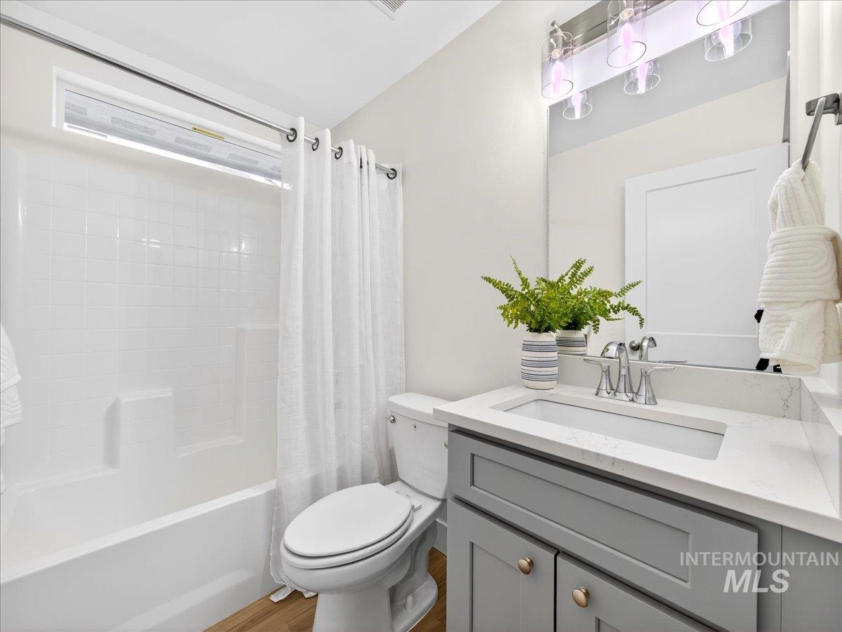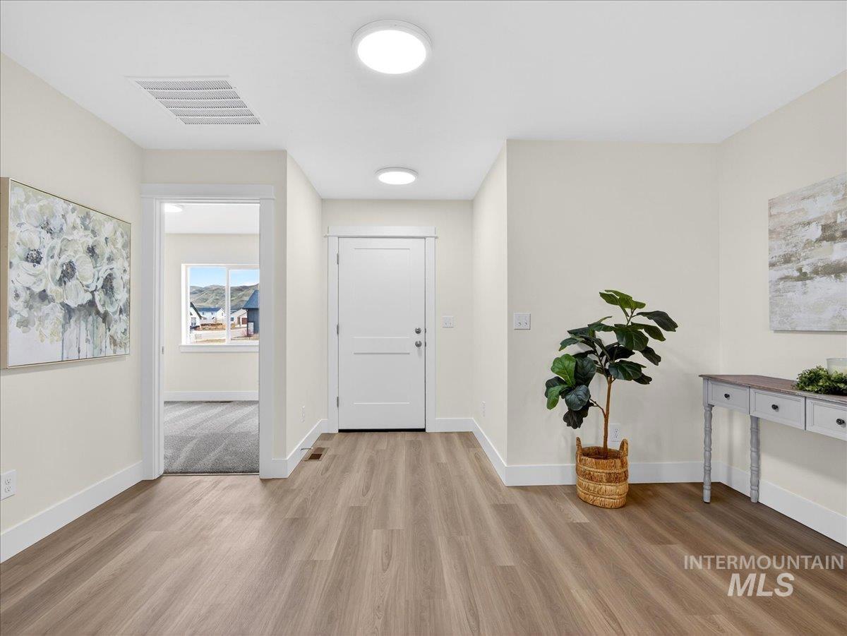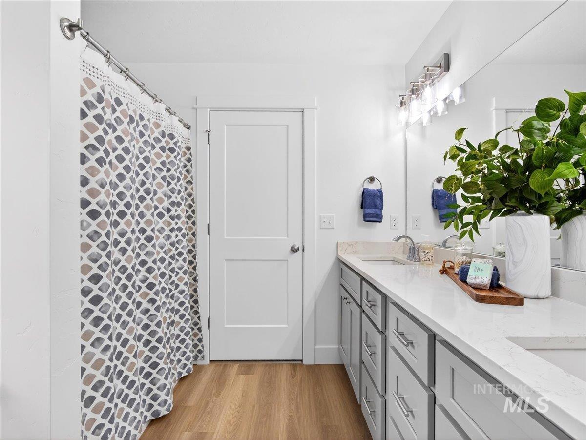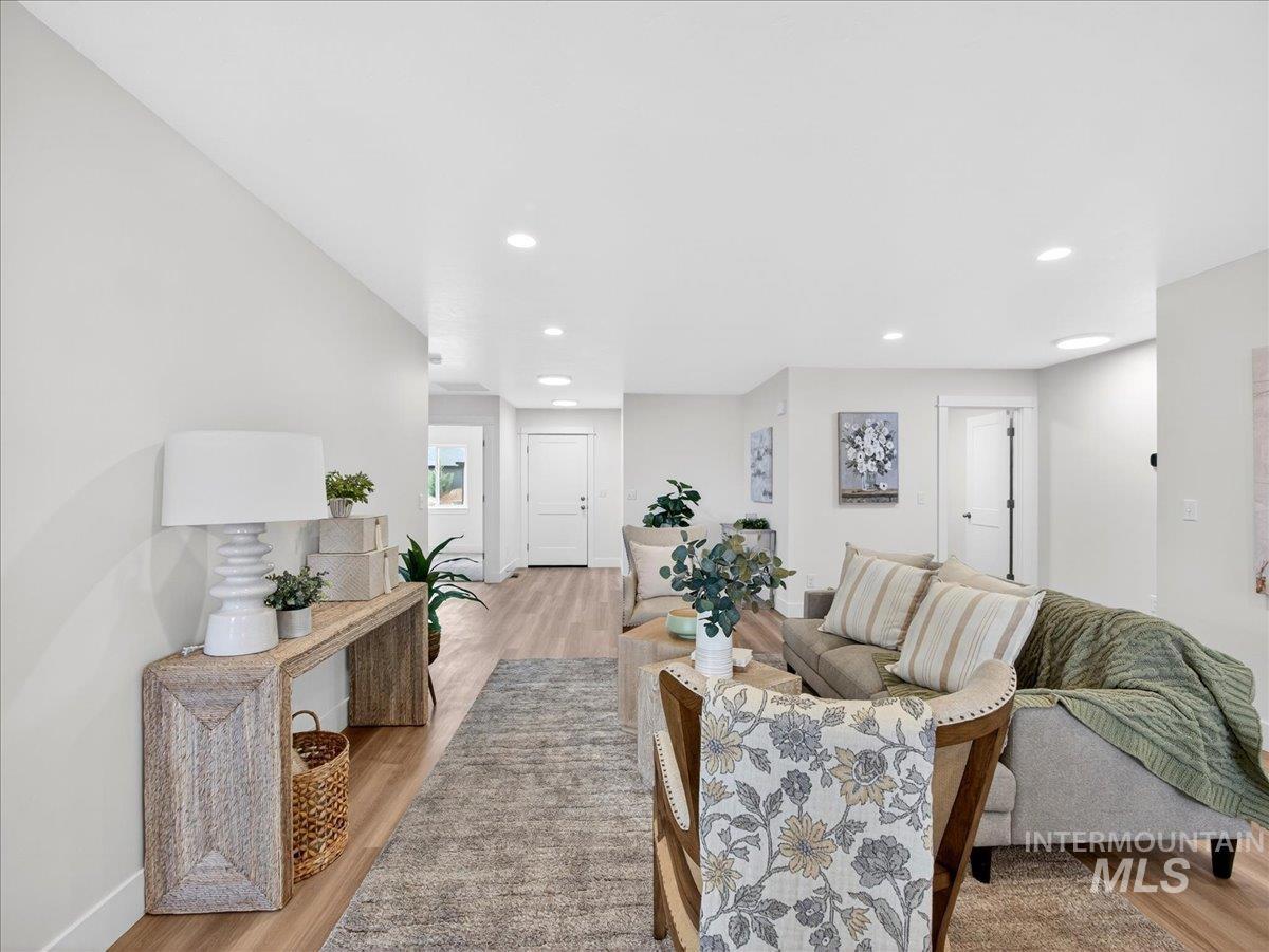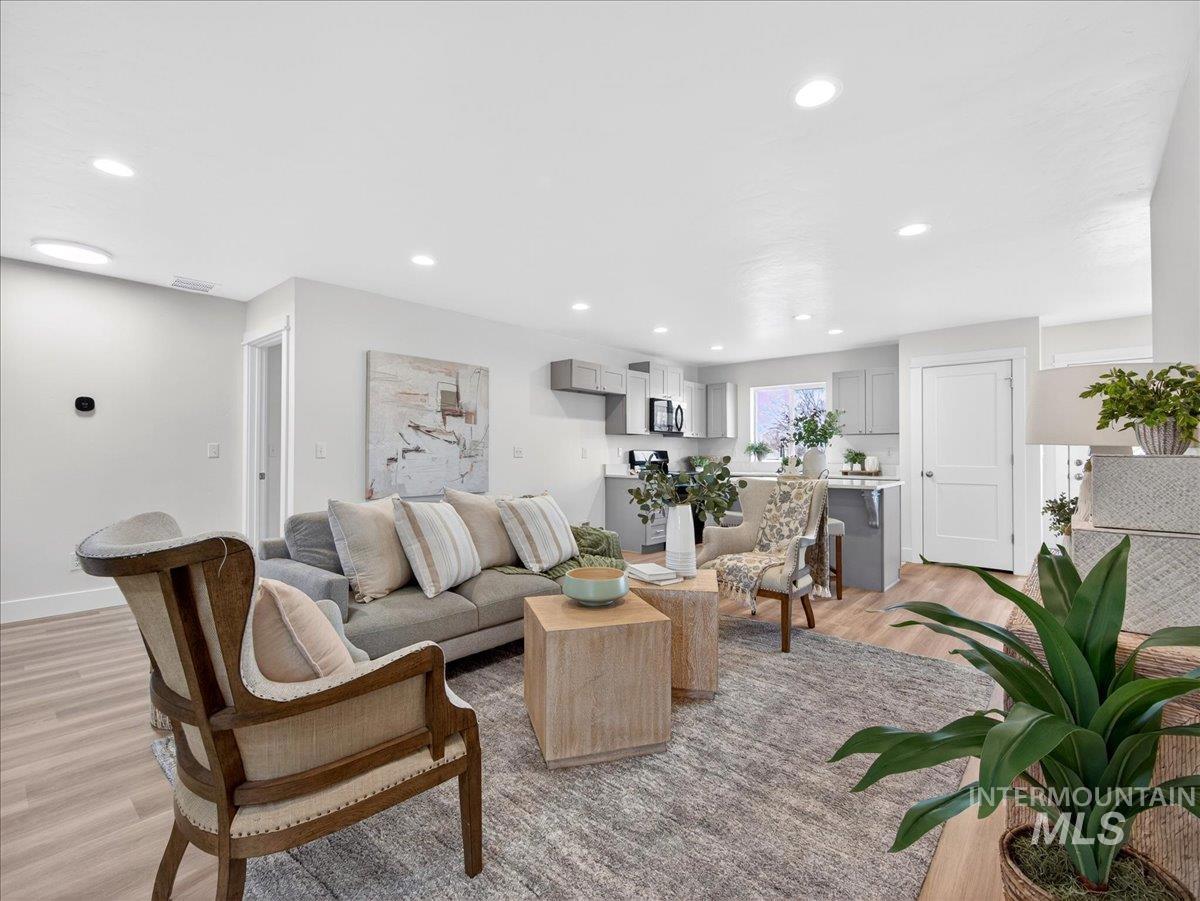 Offering 2.99% interest rate! This beautifully finished Legacy Heights home in Emmett, Idaho features 3 bedrooms, 2 bathrooms, 1,492 sq. ft. of thoughtfully designed living space, a 3-car garage, and a fully landscaped yard. Enjoy stunning views of the surrounding mountains while experiencing the perfect blend of contemporary style and everyday comfort. The open-concept layout features durable LVP flooring throughout the main living areas and bright windows that fill the home with natural light. The kitchen is designed for both functionality and style, featuring beautiful granite countertops, a center island with breakfast bar, and ample cabinetry for storage. The spacious primary suite includes dual vanities, a large walk-in closet with plenty of room for all your shoes, and a well-appointed bathroom. Love having elbow room? This spacious lot provides plenty of space for outdoor entertaining, gardening, and enjoying the sunshine. This home offers peaceful small-town living in Emmett while still being within convenient distance to Boise, shopping, dining, and outdoor recreation.