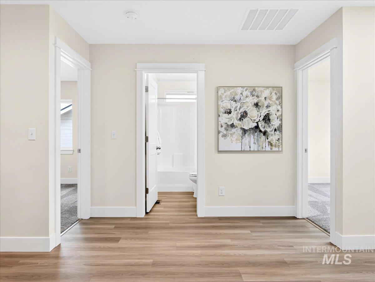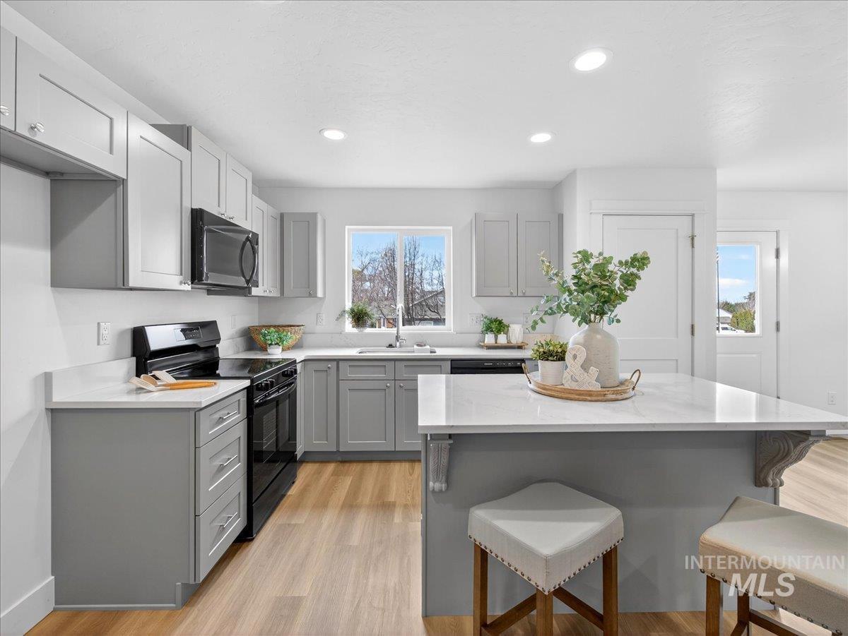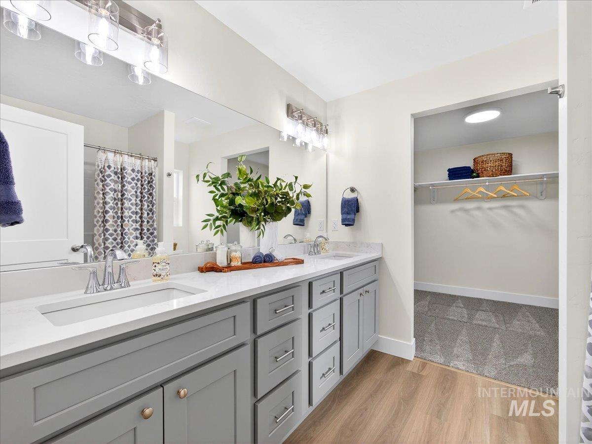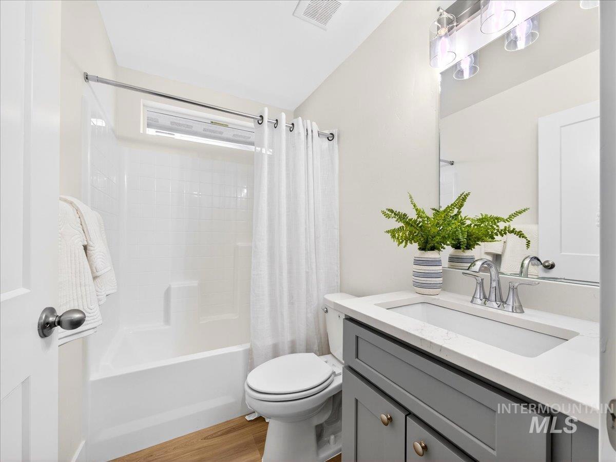 Offering 2.99% interest rate! This beautifully finished Legacy Heights home in Emmett, Idaho features 3 bedrooms, 2 bathrooms, 1,492 sq. ft. of thoughtfully designed living space, a 3-car garage, and a fully landscaped yard. Enjoy stunning views of the surrounding mountains while experiencing the perfect blend of contemporary style and everyday comfort. The open-concept layout features durable LVP flooring throughout the main living areas and bright windows that fill the home with natural light. The kitchen is designed for both functionality and style, featuring beautiful granite countertops, a center island with breakfast bar, and ample cabinetry for storage. The spacious primary suite includes dual vanities, a large walk-in closet with plenty of room for all your shoes, and a well-appointed bathroom. Love having elbow room? This spacious lot provides plenty of space for outdoor entertaining, gardening, and enjoying the sunshine. This home offers peaceful small-town living in Emmett while still being within convenient distance to Boise, shopping, dining, and outdoor recreation.