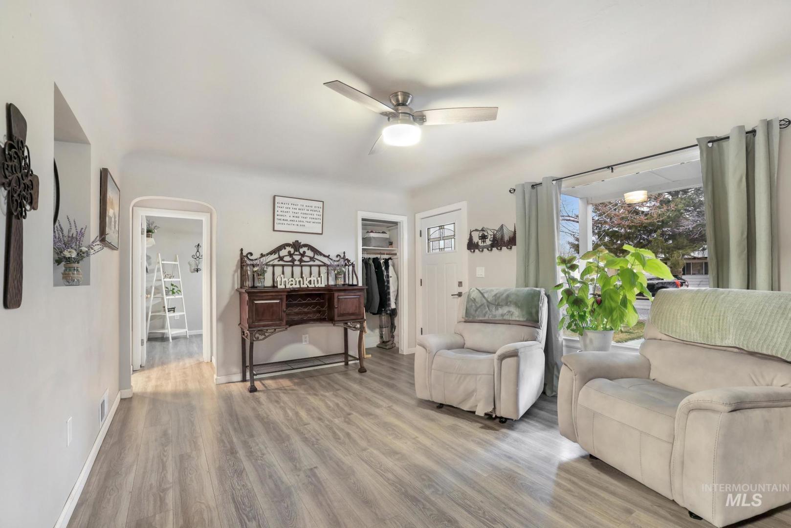 Come see this move-in-ready home in Gooding! This charming 3-bed, 1-bath property also includes a comfortable basement with an additional bedroom (no egress window) and a spacious 28×11 family room—perfect for movie nights or extra living space. The home was tastefully remodeled in 2021, featuring new appliances, LVP flooring, and a new roof. Excellent insulation keeps utility costs impressively low. Outside, you’ll find a 2-car carport, a shop area, and RV parking behind the home. The covered back patio is ideal for grilling or hosting friends, and the alley access makes bringing in your RV or other toys simple and convenient. No flood insurance required.