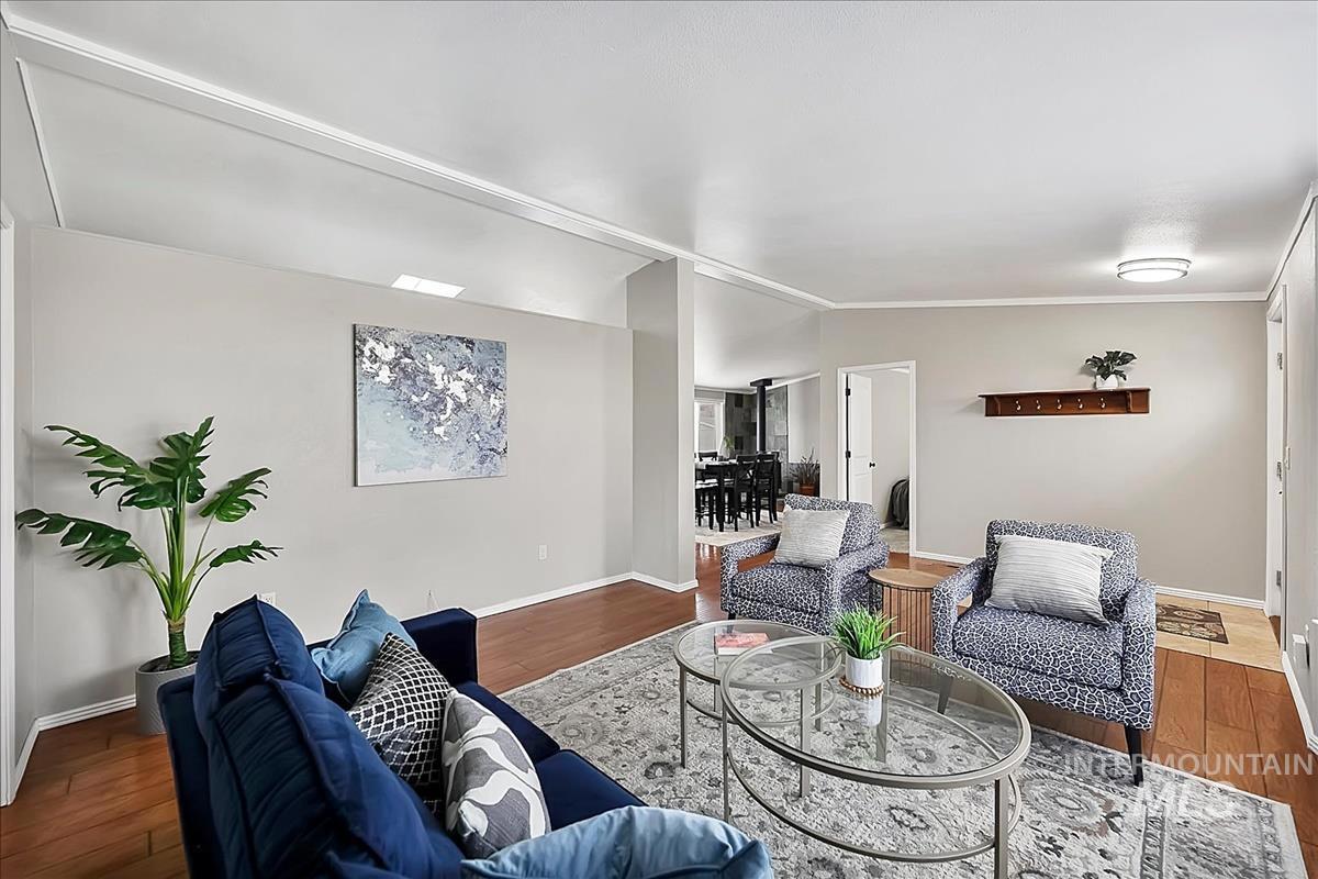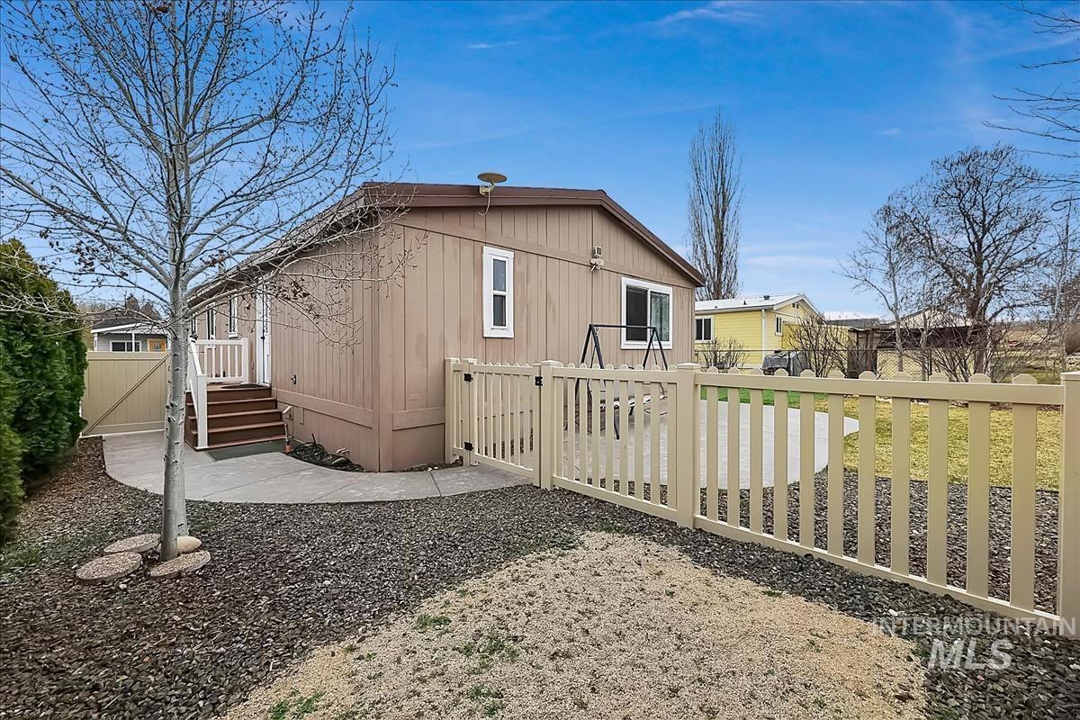 Spacious 4-bedroom, 2-bath manufactured home built in 1995 located in Blue Valley Lakeside Community in desirable SE Boise! This well-maintained home features an open-concept layout with vaulted ceilings and abundant natural light. The kitchen offers plenty of storage and counter space, perfect for everyday living and entertaining. The split-bedroom design provides privacy, with a generously sized primary suite featuring beautiful sunset views, an attached full bath with walk-in shower, and convenient access to the laundry room. On the opposite end of the home, you’ll find three additional bedrooms, each with a walk-in closet for great storage and one bedroom with access to the east-facing deck, perfect for enjoying the summer mornings. Updates include a heat pump (2020), hot water heater (2021), and a durable metal roof for long-term peace of mind. Outside, enjoy a private backyard with a stamped concrete patio, mature landscaping, garden area, and expansive views across open public land. Two long driveways provide ample parking, all in a convenient location near Micron and easy I-84 access. BTVAI. Welcome Home!