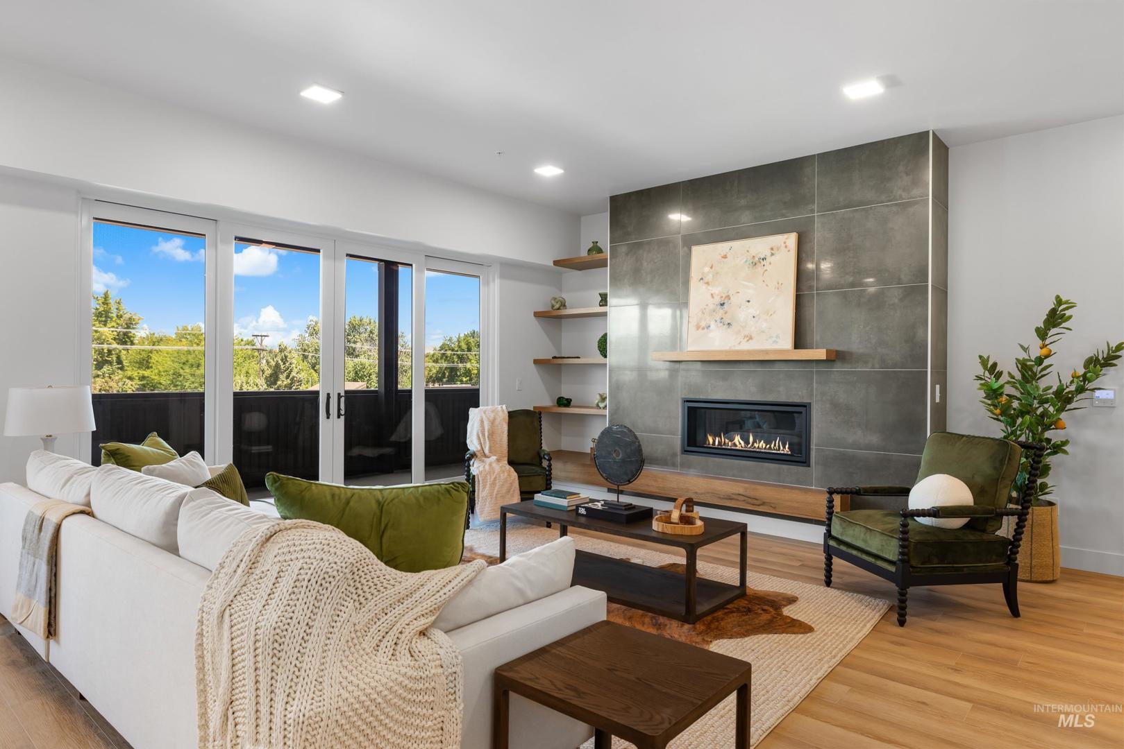 The Crest Penthouse stands as the pinnacle of The Hemingway’s limited collection, an architecturally elevated residence shaped for those who live without compromise. One of only 16 homes, representing a rare opportunity to live above it all, surrounded by light & artfully crafted interiors. Morning light filters through expansive north-facing glass casting a soft glow across rich walnut cabinetry & a sculptural charcoal stone fireplace wall. Throughout, ten-foot ceilings frame mountain views that shift with seasons with peaks catching morning sun, golden ridgelines at sunset. The kitchen is a culinary retreat, centered around an oversized island & fitted with Wolf & Sub-Zero® appliances. A residence where time is reclaimed & just steps from Eagle’s tree-lined downtown, where cafés, shopping & dining extend the experience beyond your front door. Secure access & protected parking at downtown Eagle`s premier new residential address. Exclusive developer financing opportunity: 2.99% fixed rate, 10% down, 30 years.