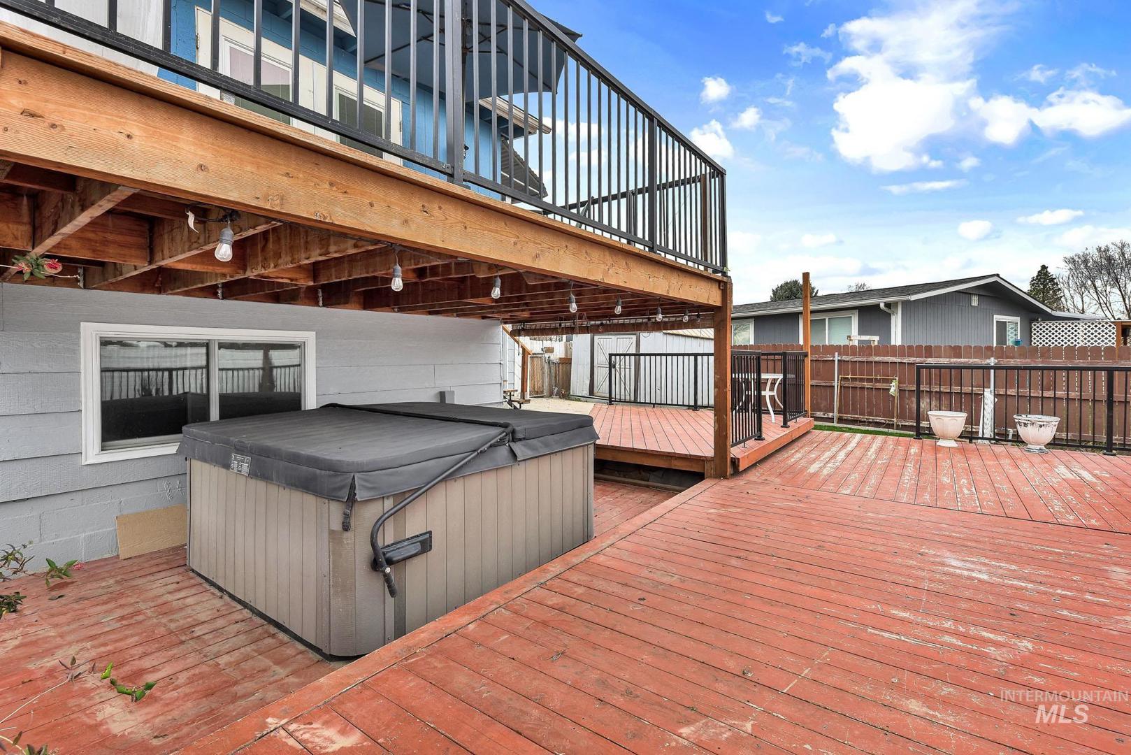 Well maintained split entry home situated on a desirable corner lot in Nampa with no HOA. This property offers a functional layout with comfortable living spaces and plenty of natural light throughout. The kitchen and main living areas provide a welcoming environment for everyday living and entertaining, featuring an induction stove with air fryer oven. All appliances have been updated within the last three years for modern efficiency and style. A new water heater installed in 2025 and new roof in 2021 adds additional peace of mind. Step outside to enjoy the expansive backyard deck and upper deck patio overlooking a spacious, fully fenced yard with a dedicated garden area. The hot tub, installed in 2022, creates the perfect setting for relaxing or hosting gatherings. Recent upgrades include new Renewal by Andersen windows in 2024 with a lifetime warranty and a smart garage door opener for added convenience and energy efficiency. Conveniently located near parks, schools, shopping, and dining with easy access to daily amenities.